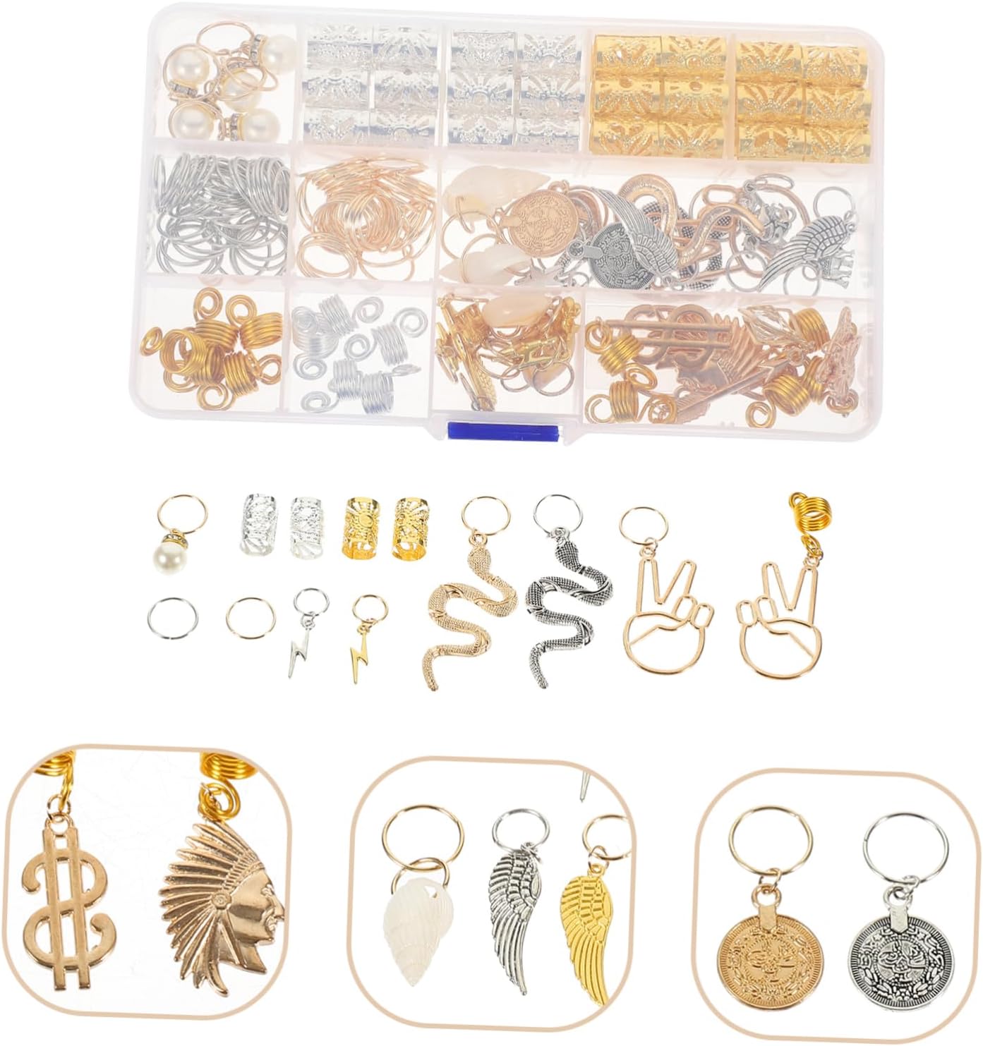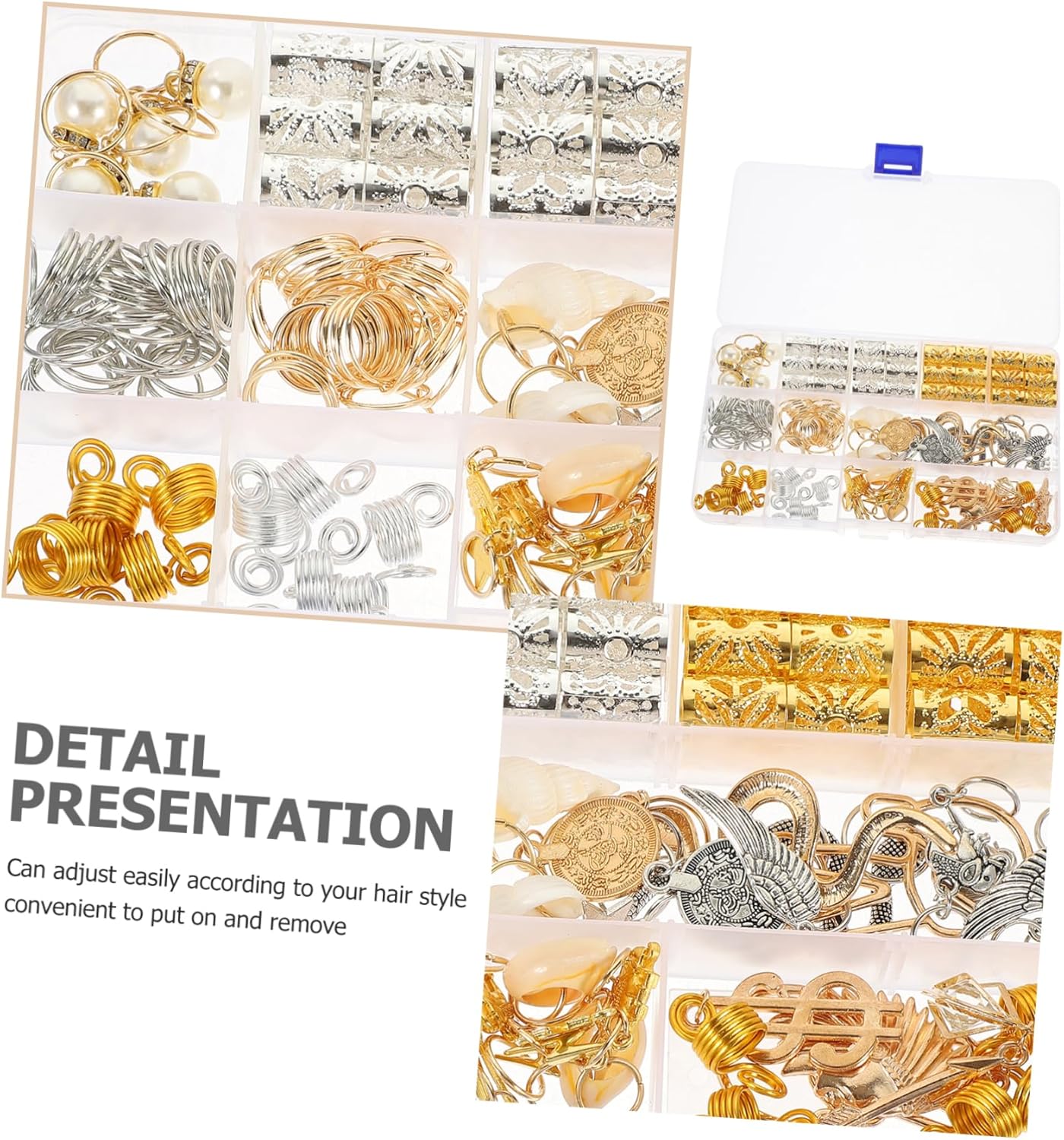 Polsini per capelli: i nostri anelli a treccia sono flessibili e regolabili senza danneggiare i capelli. Ti offrono un'esperienza diversa da indossare. Accessori intrecciati Accessori intrecciati per capelli: non solo abbellisce i tuoi capelli, ma crea anche un temperamento elegante e affascinante, Accessori per capelli Gioielli intrecciati per capelli: questi accessori intrecciati per capelli sono disponibili in diversi stili e dimensioni, che possono soddisfare le diverse esigenze fai-da-te e gioielli intrecciati Anello per capelli intrecciato: adatto per matrimoni, concerti, feste, spettacoli teatrali, ecc., ottimo anche per la maggior parte delle ragazze e donne, Perline treccia con ciondolo capelli intrecciati: e durevole, facile da adattare alla tua acconciatura, comodo da attaccare e rimuovere, capelli accessori per trecce
