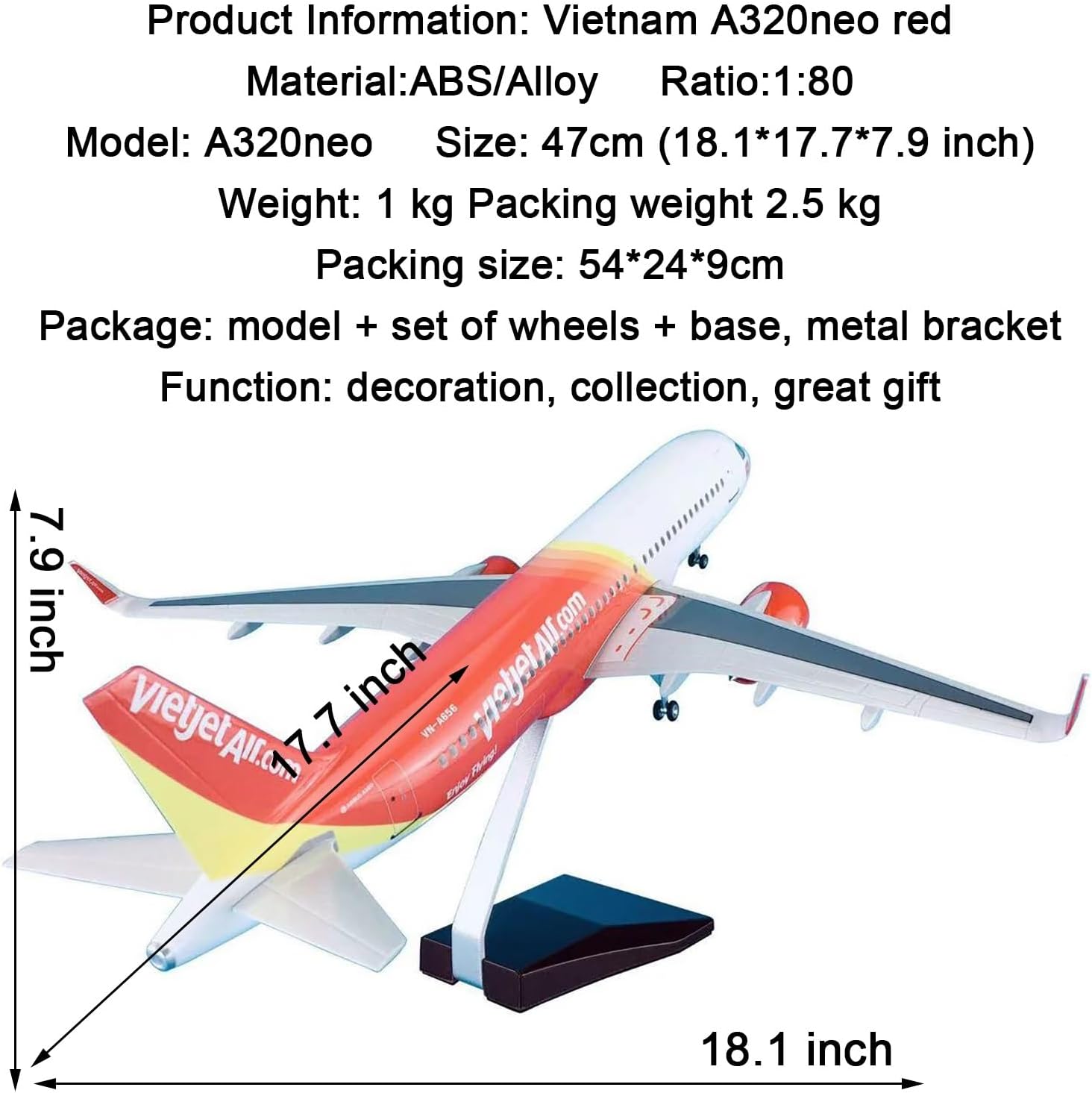 Modellino di aereo: modello in scala 18,1 in scala 1:80, modello di aereo Vietnam A320 con ruote, modello di aereo, 18,1 x 17,7 x 7,9 pollici. Materiale lega di resina ABS Oggetti da collezione pressofusi: meticolosa attenzione ai dettagli dalla piastra del motore alla vernice, utilizzando resina di alta qualità, base solida e staffe metalliche. I modelli sono fedeli alla scala, i modelli sono realizzati in materiale di resina pesante e di alta qualità dall'aspetto sorprendente, i modelli hanno una fusoliera solida Facile assemblaggio: il semplice modello con design a scatto può essere facilmente installato in soli tre passaggi, il design a scatto consente di assemblare facilmente i nostri modelli, Meno tempo for assemblarli e più tempo for metterli in mostra, I modelli sono dotati di un espositore, Modelli sono ottimi come souvenir o regali for una persona speciale Dimensioni in scala realistiche: vernice di prima classe accurata for lo stampo, raffinata secondo dettagli rigorosi alla proporzione originale, utilizzando la tecnologia di modellazione 3D prefabbricata in un unico pezzo, processo di corrispondenza dei colori di placcatura anodica, dettagli visibili Regalo da collezione: il modello di aereo simulato è dotato di staffa a piedistallo, che può essere visualizzata in qualsiasi momento. È un'eccellente collezione for veri appassionati di modellini di aerei, un'eccellente decorazione for la casa, l'ufficio e il bancone e un eccellente regalo di compleanno di Natale for gli amici