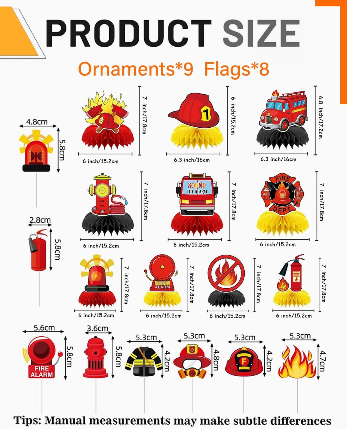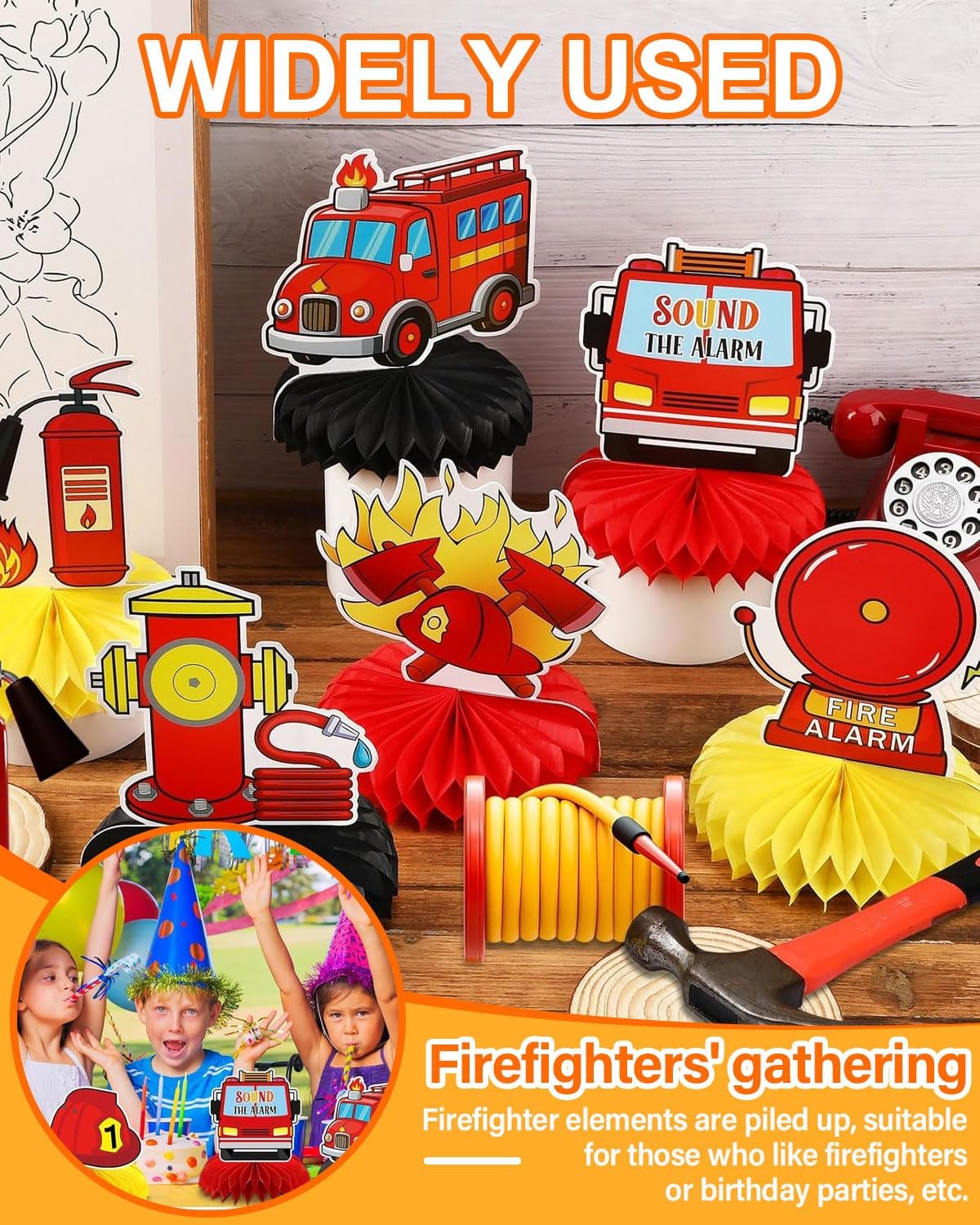 Prezzo: decorazioni da tavolo a nido d'ape da 18 pezzi con vari motivi dei vigili del fuoco. Contenuto della confezione: la decorazione da tavola è realizzata in cartoncino, che garantisce durata, leggerezza e resistenza allo sbiadimento. 18 pezzi: queste decorazioni da tavola presentano vari motivi a tema pompiere, come autopompe, estintori e caschi da pompiere, che le rendono distintive e accattivanti. Facile da montare: si assembla in pochi secondi; basta fissare il nido d'ape al cartoncino. Descrizione: Le nostre decorazioni da tavola sono perfette per feste di compleanno per bambini, feste in giardino, feste a tema e decorazioni quotidiane, conferendo al vostro evento un tocco cinematografico.