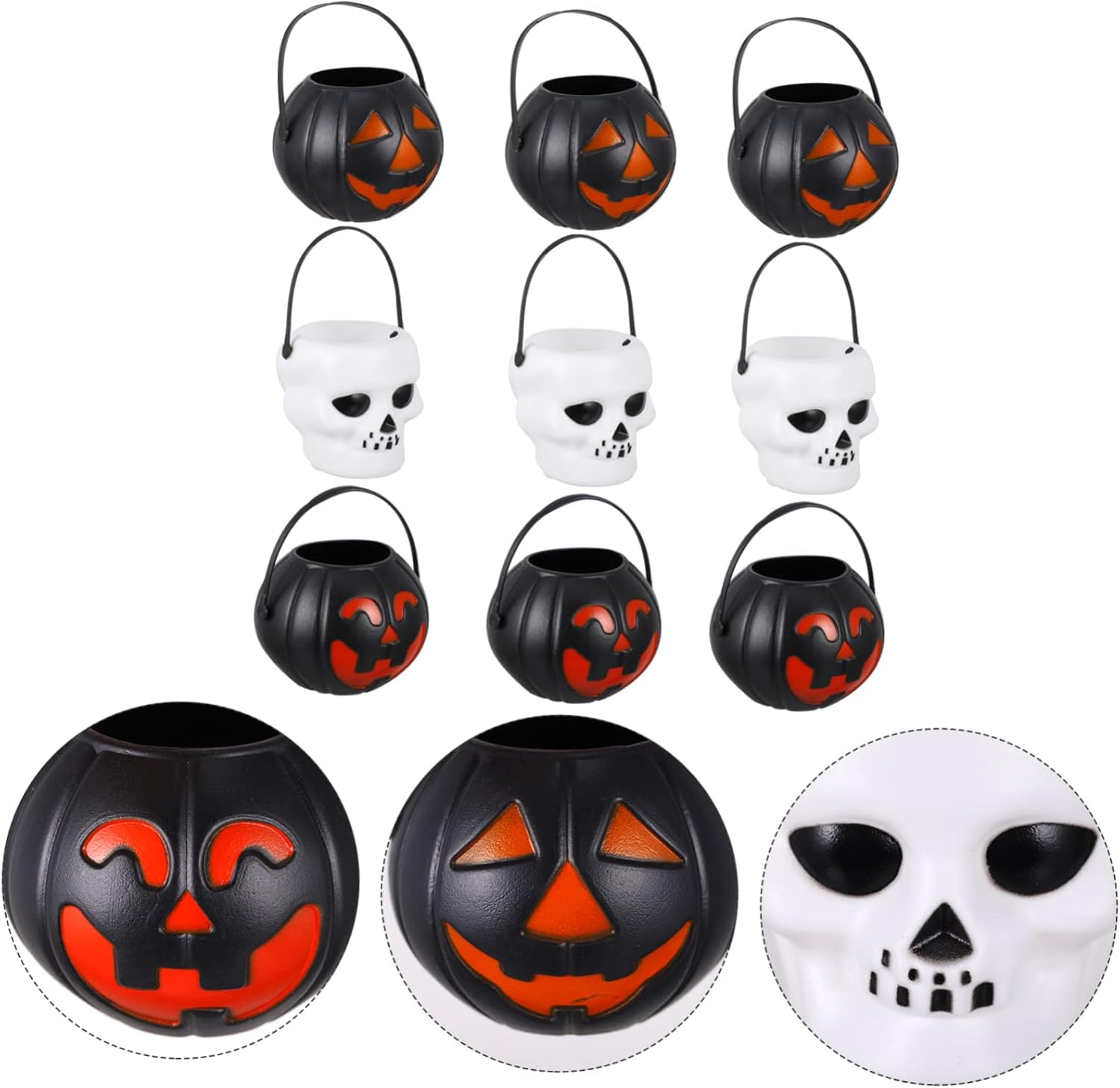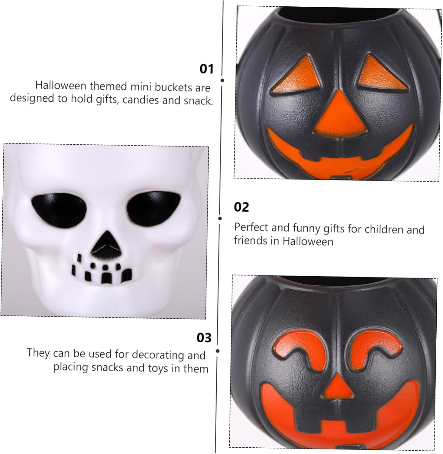 Oggetti di scena per decorazioni di Halloween - possono essere usati per decorare e posizionare snack e giocattoli, come piccoli contenitori di caramelle per bambini, contenitori di caramelle in miniatura Mini secchielli portatili di Halloween - e divertenti per bambini e amici ad Halloween, saranno piacevoli per questo, piccoli secchielli di caramelle di Halloween Piccoli contenitori di caramelle di Halloween - fantastici mini secchielli decorativi per caramelle per le feste di Halloween o semplicemente per l'uso quotidiano, mini secchielli di Halloween Piccoli secchielli di zucca - invita i tuoi amici a fare dolcetto o scherzetto e distribuire i nostri mini secchielli di zucca, secchielli di caramelle in miniatura Mini secchielli portatili - mini secchielli a tema Halloween sono progettati per conservare caramelle e snack e può essere utilizzato anche come decorazione di Halloween e mini scatole per dolci.
