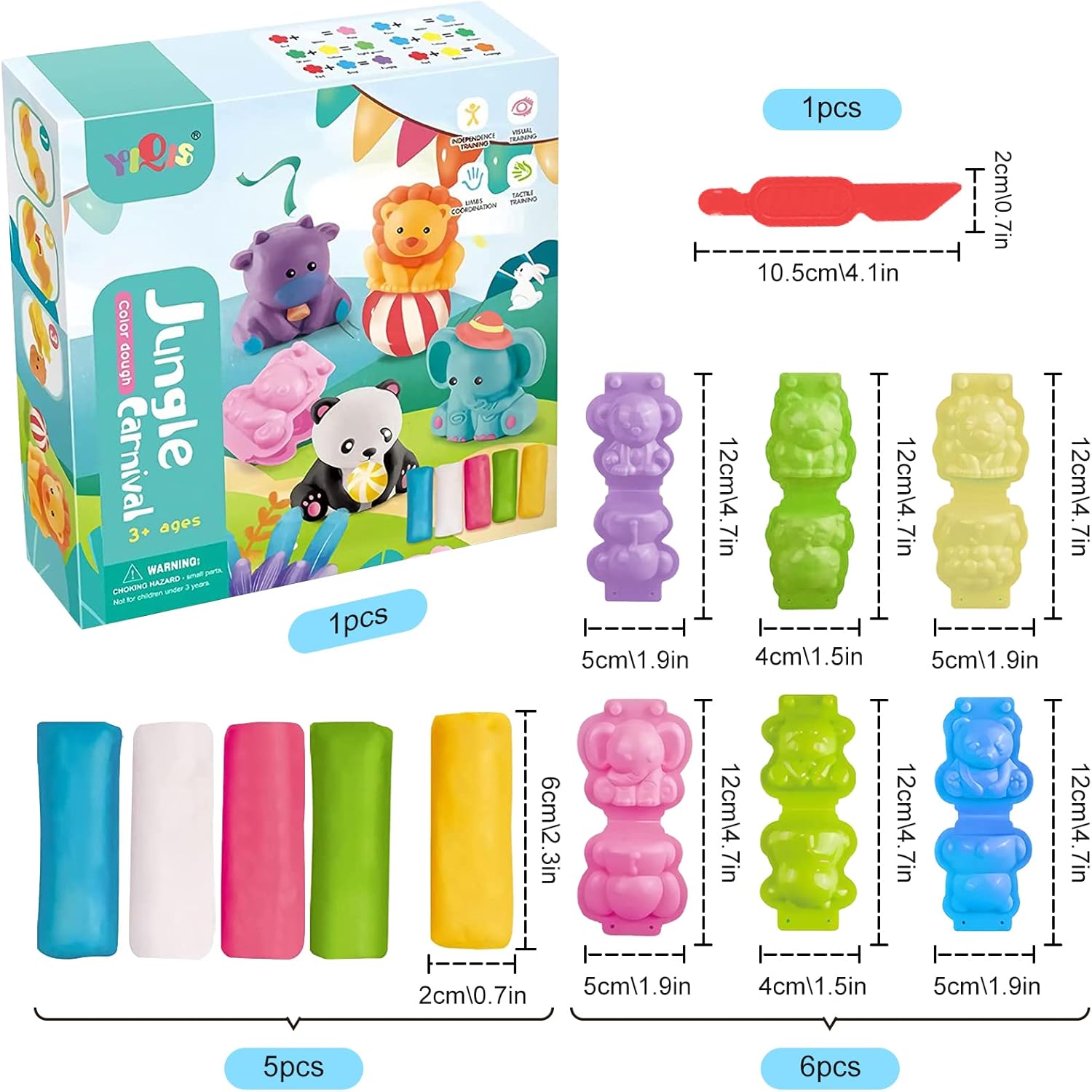 ARGILLA MAGICA ULTRA LEGGERA: questo kit per impastare asciuga all'aria viene fornito con 5 argilla da modellare, 6 stampi e 1 strumento per impastare che aiuta a modellare e decorare. 【Materiali di alta qualità】: gli accessori per l'impasto di argilla sono realizzati in plastica ABS di qualità, leggera e resistente, con bordi lisci e senza sbavature e riutilizzabili. I nostri giocattoli modellati in argilla sono facili da maneggiare e facili da pulire. Permettono ai bambini di imparare ed esplorare in modo divertente mentre sviluppano le loro abilità pratiche e la coordinazione occhio-mano. 【Design adatto ai bambini】: il codificatore di forme e il coltello di plastica sono progettati in modo che i mignoli possano facilmente tirare, spingere, ruotare e spingere per modellare il dinosauro e gli animali. Il prodotto non ha spigoli o angoli taglienti ed è molto adatto ai bambini. 【Set di modelli di animali】: set di animali in argilla leggera (scimmie, leoni, panda, elefanti, mucche, tigri). Giocattolo educativo creativo, lascia che i bambini imparino e scoprano in modo divertente. Conosci i diversi tipi di dinosauri e animali. Regalo ideale: l'argilla da modellare è un giocattolo popolare per i bambini di tutte le età e un regalo ideale per i bambini nel giorno del compleanno o della festa dei bambini. I genitori potranno divertirsi con i propri figli guidandoli attraverso i diversi strumenti.