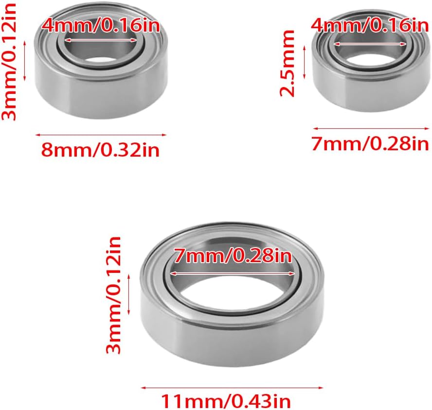 Compatibile con Wltoys l'auto RC 1/14 144001, ma si adatta anche ad altre auto RC. La confezione include 6 cuscinetti a sfera 4x7x2,5 mm, 6 cuscinetti a sfera 4x8x3 mm, 6 cuscinetti a sfera 7x11x3 mm. Realizzati con materiali di prima qualità, questi cuscinetti a sfere sono progettati per resistere a un uso intensivo, garantendo un'affidabilità duratura e un attrito ridotto. Grazie a un semplice processo di installazione, questo set di cuscinetti ti consente di potenziare rapidamente la tua auto RC e di godere di una maneggevolezza migliorata e di una ridotta usura delle parti mobili. Nota : Per ottenere prestazioni migliori e una lunga durata, aggiungere olio lubrificante prima dell'uso.