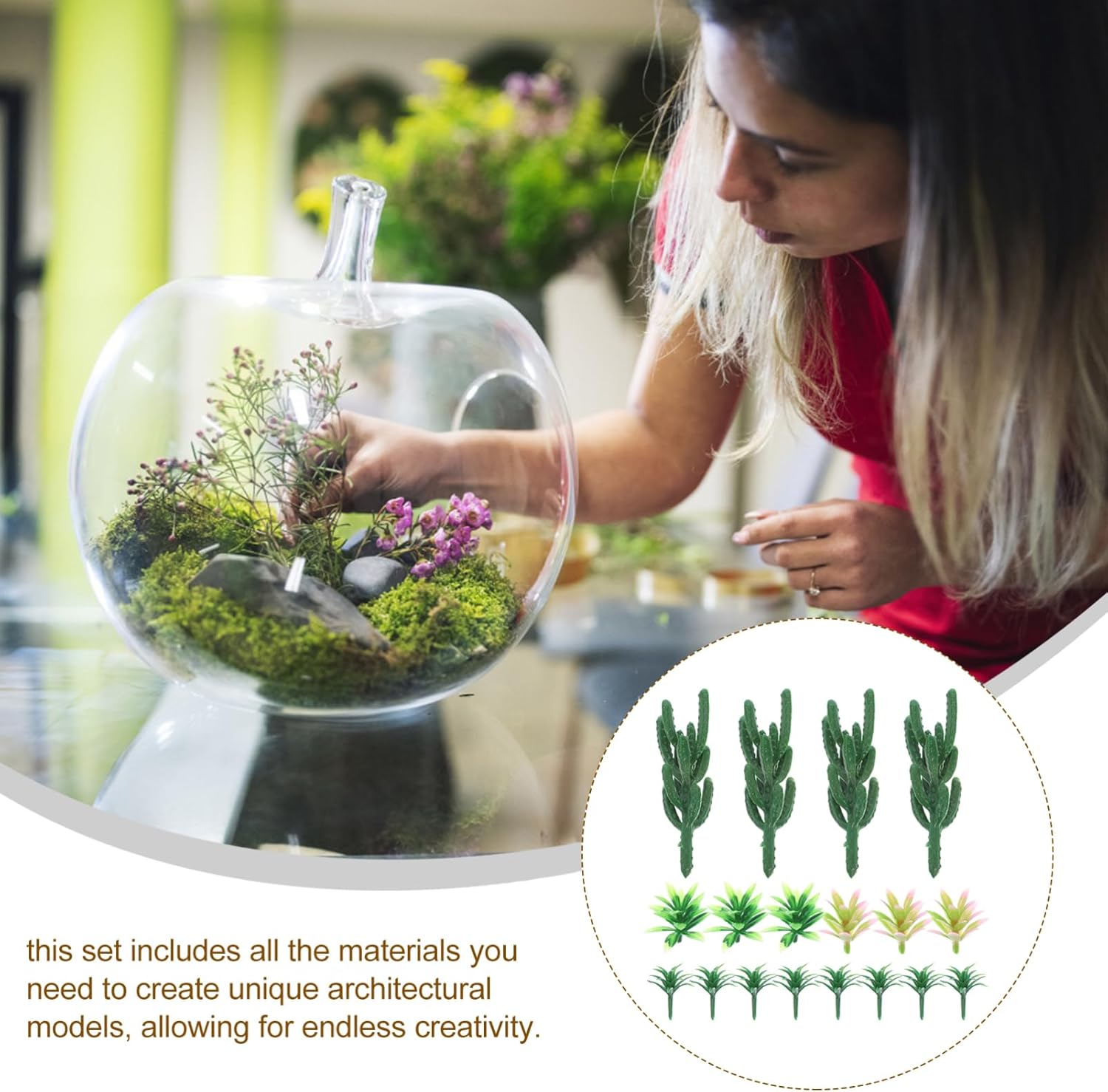 Alberi di cactus in miniatura: questi piccoli alberi di cactus sono adatti per aggiungere un tocco di realismo ai tuoi paesaggi e diorami in miniatura, figurine da giardino in miniatura, alberi giocattolo per progetti Alberi in miniatura realistici: questi alberi di cactus in miniatura sono progettati per replicare l'aspetto degli alberi veri, aggiungendo autenticità ai tuoi progetti di micro paesaggi, modello di simulazione di foglie fai da te, forniture per diorami forestali Artigianato: ogni albero modello è realizzato meticolosamente per garantire un alto livello di dettaglio e realismo, dando vita alle tue scene in miniatura, mini piante in vaso, mini accessori per casa delle bambole Alberi di cactus in miniatura: adatti per creare paesaggi in miniatura dettagliati e realistici, questi piccoli alberi di cactus aggiungono un tocco di realismo a qualsiasi diorama o scena modello, mini fiori artificiali di case delle bambole, miniature di case delle bambole Diversi stili di alberi: con diversi modelli di alberi inclusi, puoi mescolare e abbinare per creare una varietà di scene uniche e interessanti, piante in miniatura per case delle bambole, accessori da giardino in miniatura