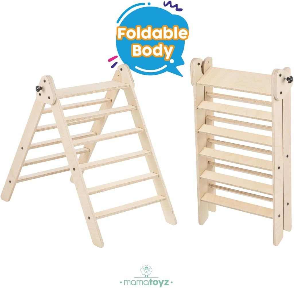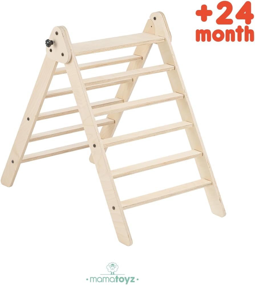È realizzato il legno multistrato di betulla naturale senza spigoli vivi che si adatta perfettamente ad ogni ambiente domestico Include un triangolo di Pikler pieghevole e una tavola da arrampicata e scivolo Il triangolo dispone di 11 pioli su cui potersi arrampicare, rafforzando l'equilibrio e la coordinazione Promuove le capacità psicomotorie in un contesto di gioco autonomo Sia il triangolo che la tavola Slide & Climb possono essere utilizzati singolarmente o in combinazione con l'arco Mamatoyz , creando un vero e proprio percorso avventura per un divertimento senza fine