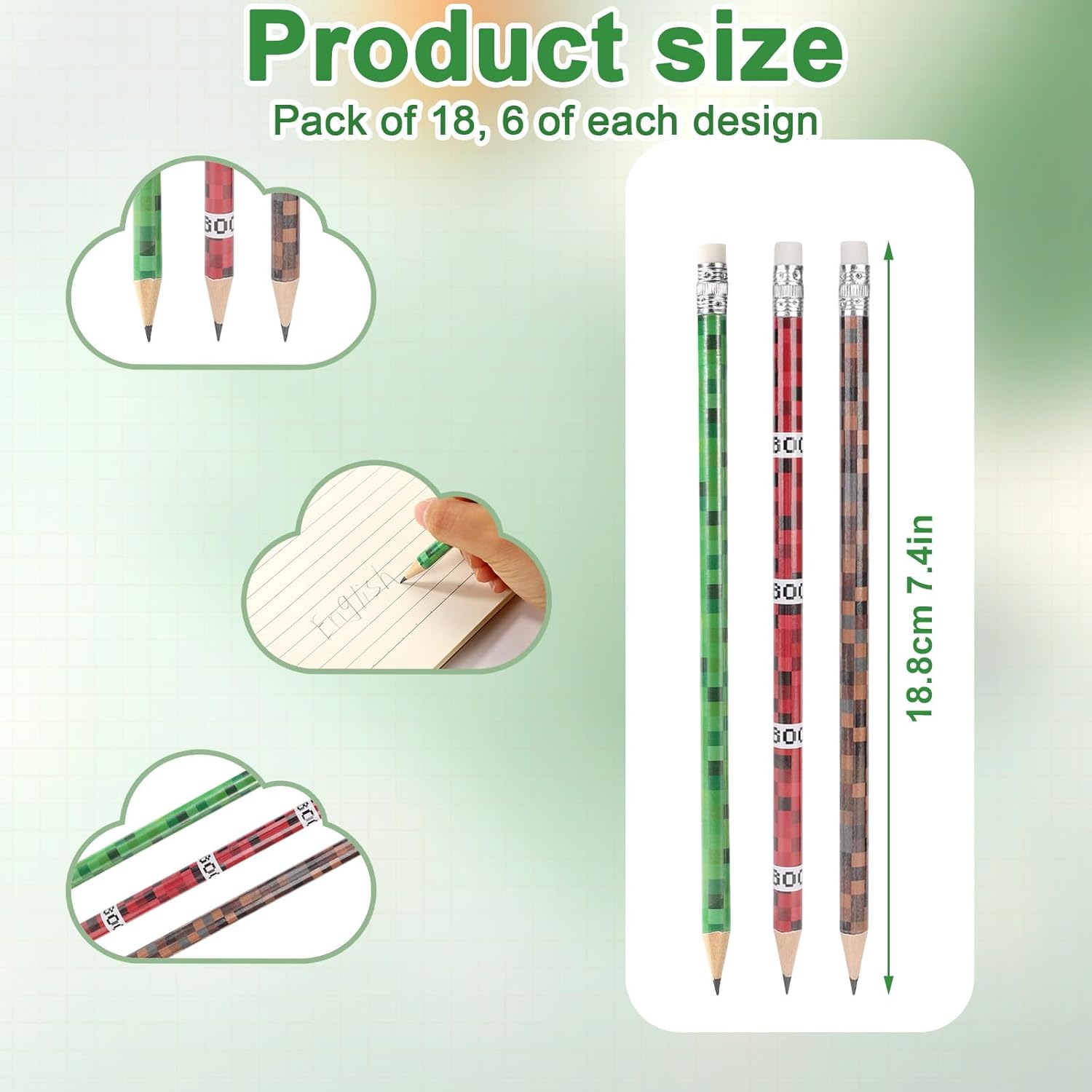 Contenuto del prodotto: riceverai 18 matite in legno a tema pixel, 6 ciascuno di verde, marrone e rosso, che sono sufficienti per soddisfare varie esigenze, che si tratti di una scrittura quotidiana, attività di gruppo, preparazione delle parti o distribuzione della classe. Materiale di qualità: realizzati in legno di qualità e grafite, queste matite di pixel non sono facili da rompere con un uso regolare. Il nucleo di grafite garantisce una scrittura liscia e coerente, mentre la canna di legno è facile da affinare con affiliati standard. La gomma annessa consente anche di cancellare la cancellazione rapida e pulita senza lasciare smudge disordinati. Dimensioni adeguate: ogni matita pixel misura circa 18,8 cm. La sua lunghezza ben proporzionata e uno spessore della canna forniscono una presa confortevole, riducendo l'affaticamento delle mani durante le lunghe sessioni di scrittura o disegno. Si adatta anche alla maggior parte dei casi di matita standard, rendendo comodo lo stoccaggio e il trasporto. Design del tema pixel: adottando uno stile vibrante di pixel, queste matite presentano un aspetto vivace e giocoso che cattura il fascino degli elementi in stile pixel. La stampa chiara e vivida del tema pixel non si sbiadisce facilmente con l'uso, portando gioia a ogni compito di scrittura o creativo. Ampia applicazione: queste matite a tema pixel sono adatte a materiali di consumo in classe, imbarcazioni di borse di compleanno e premi scolastici per studenti eccezionali. Per coloro che amano le provviste per ufficio o scuola, possono anche realizzare grandi bomboniere a tema pixel o articoli di cancelleria di tutti i giorni.