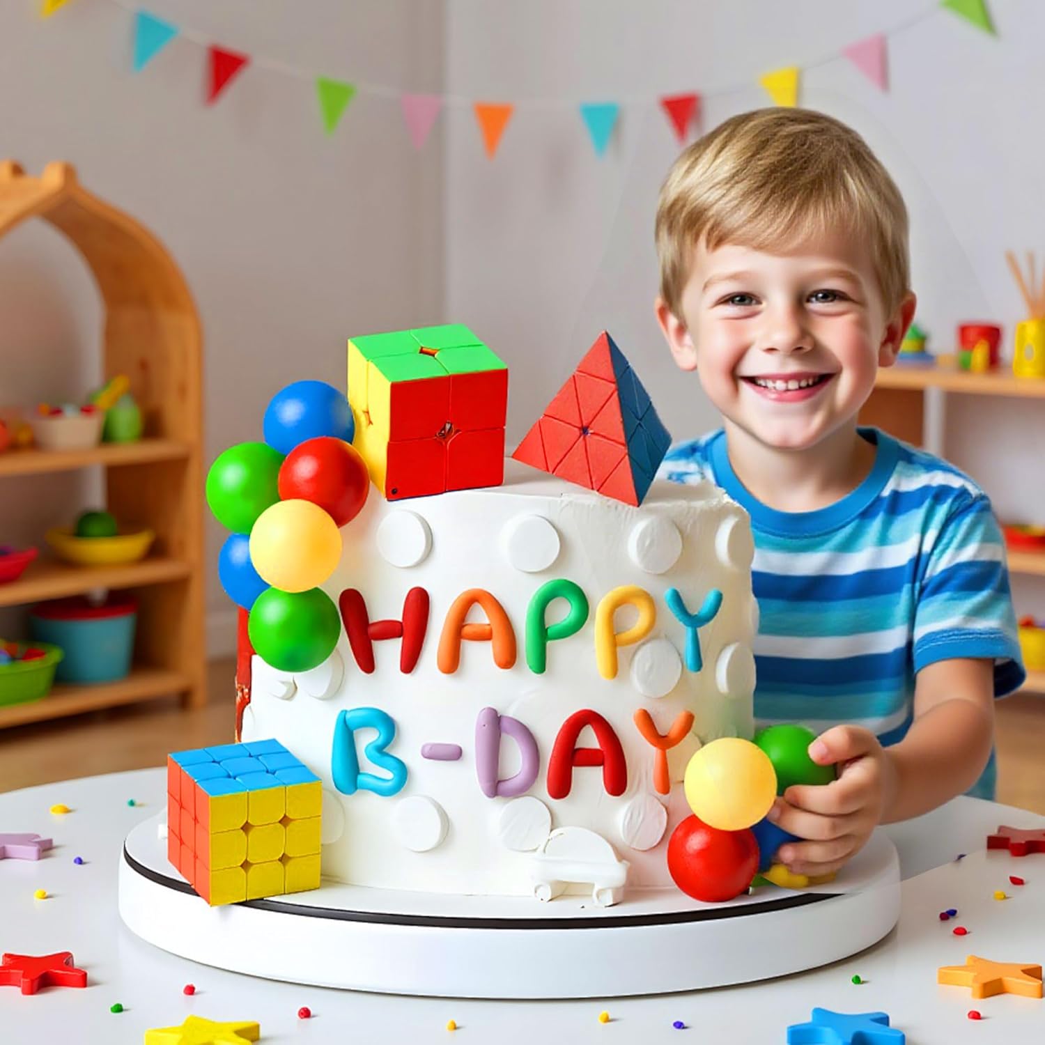 Approfitta dei nostri accessori per feste Building Block La nostra decorazione per torta Cubo magico renderà la tua festa più interessante ed entusiasmerà la tua famiglia e gli ospiti Riceverai: 1 topper per torta piramidale Magic Cube, 2 cubi, 1 decorazione per torta con la scritta "HAPPY B-DAY", 5 palline blu, 5 palline rosse, 5 palline verdi e 5 palline gialle Le colorate decorazioni per torta mini cubo creeranno un'atmosfera festosa e colorata Organizza una festa di mattoncini con i tuoi amici! Le nostre forniture per feste Building Block impressioneranno i tuoi ospiti