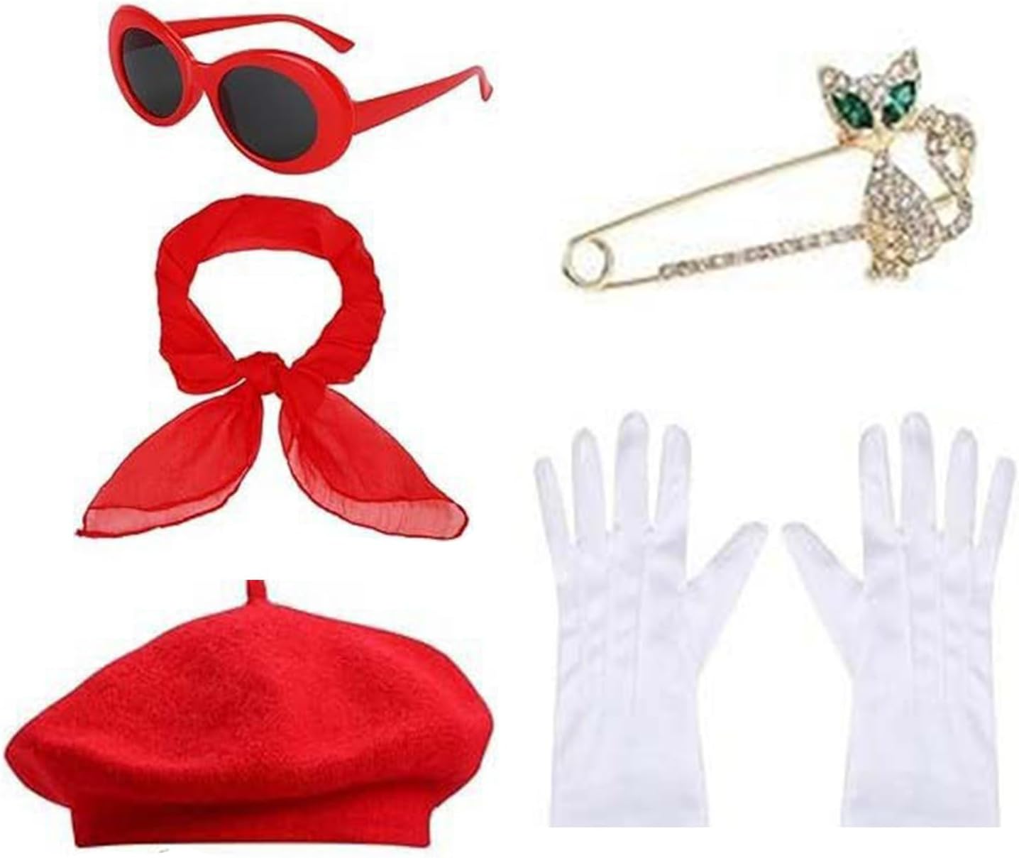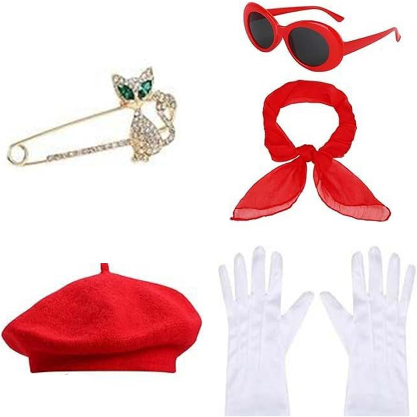 1980 Francese Donne Berretti Cappello Accessori Costume Sciarpa Guanti Spille Occhiali Ovali Per Festa a Tema Francese