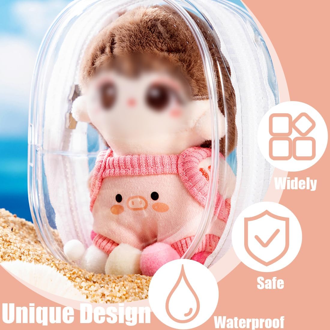 Design: questa custodia antipolvere può essere appesa a un portachiavi o decorata sulla borsa, aggiungendo facilmente personalità. Design chiaro e visibile: realizzato in resistente PVC trasparente, il fondo piatto garantisce la sicurezza delle bambole, mentre i pompon colorati e le decorazioni personalizzate soddisfano al meglio le esigenze degli appassionati del fai da te. I morbidi pompon e i colori vivaci creano un aspetto giocoso e vivace. Materiale: realizzato in PVC di alta qualità, resistente e leggero. Funzione: proteggi la tua 1abubu e le altre bambole dallo sporco quando esci. Sicuro e pratico: la cerniera liscia protegge la tua bambola 1abubu da sporco e urti. Oltre alle bambole, c'è spazio anche per chiavette USB, braccialetti o campioni di cosmetici.