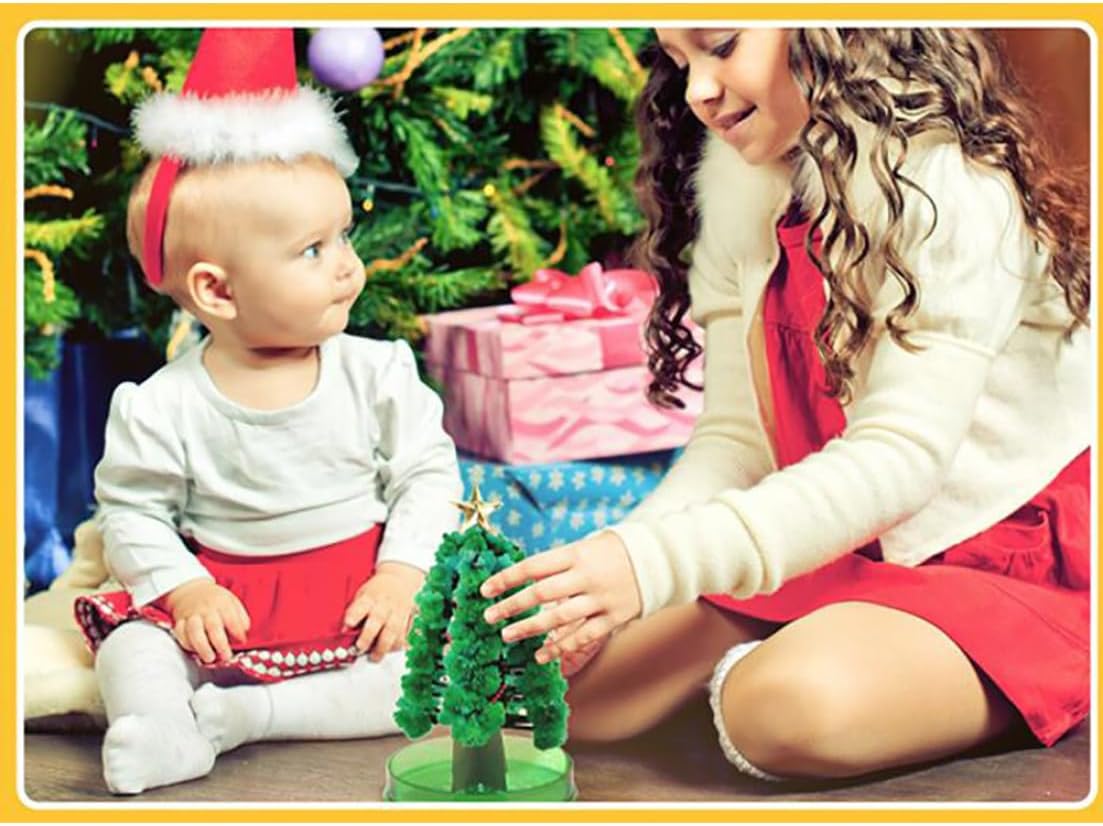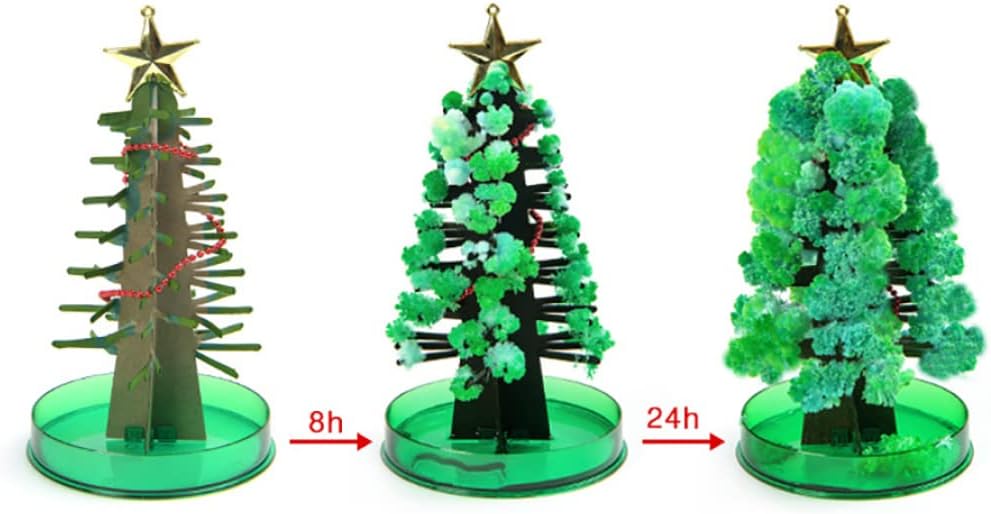 Brillanti decorazioni per le vacanze perfette per le vacanze per la casa o l'ufficio..Ideale per i tuoi bambini a Natale Pacchetto di valori: il pacchetto include un albero, uno stand con serbatoio d'acqua e un pacchetto di acqua magica. Si prega di notare che: quando inizia a crescere e dopo essere cresciuto, non toccarlo, non spostarlo. Consigliato per i bambini di età pari o superiore a 5 anni. Come utilizzare il supporto dell'albero con l'acqua magica inclusa nel branco e guardarla crescere in sole 24 ore.