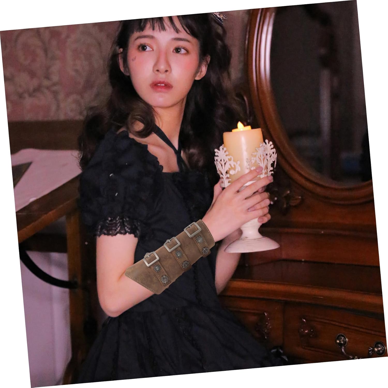 Descrizione Questo è un braccialetto in stile medievale in pelle artificiale. Realizzato in materiale di pelle artificiale di qualità, resistente. Comodo da indossare. Il design alla moda ti rende più attraente, affascinante e alla moda. Ti porta una nuova sensazione e un buon umore. Caratteristiche - : Marrone -Materiale: pelle artificiale, filo di cera -Dimensioni: 21,00X19,00X1,00 cm/8,25X7,47X0,39 pollici - Ottimo accessorio da indossare ogni o utilizzato nei costumi cosplay delle feste del festival. - Ottimo da indossare ogni , giochi di ruolo, cosplay, Halloween, costumi, oggetti di scena teatrali e rievocazioni storiche. - Forte e durevole, buon effetto protettivo. Completamente indossabile e realizzato in modo confortevole. - Fornisce ciò di cui hai bisogno per completare quel look perfetto per il tuo costume di Halloween, abbigliamento quotidiano e altro ancora. - Le armature adatte al tuo costume punk, abbigliamento sportivo e moda maschile, abbigliamento gotico.