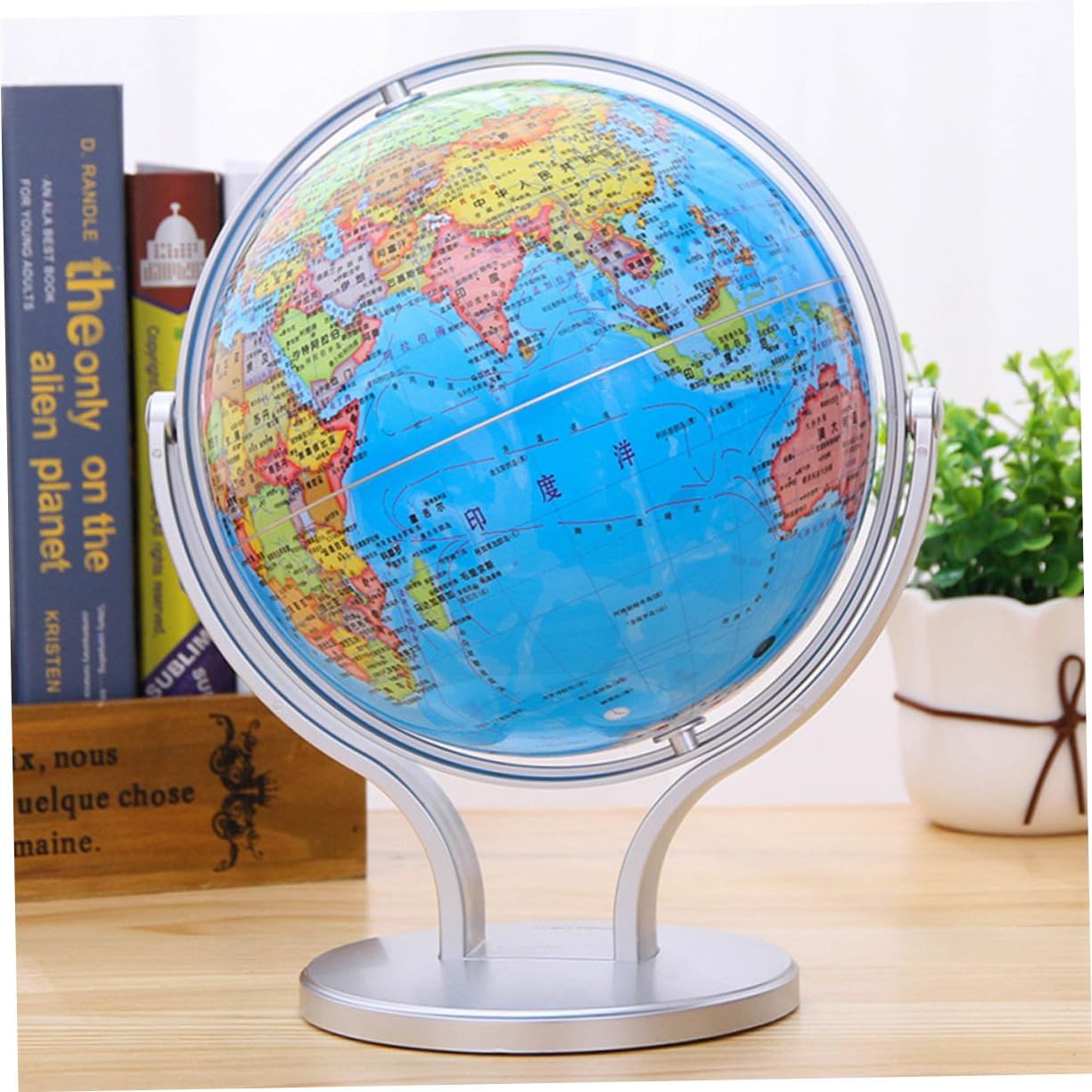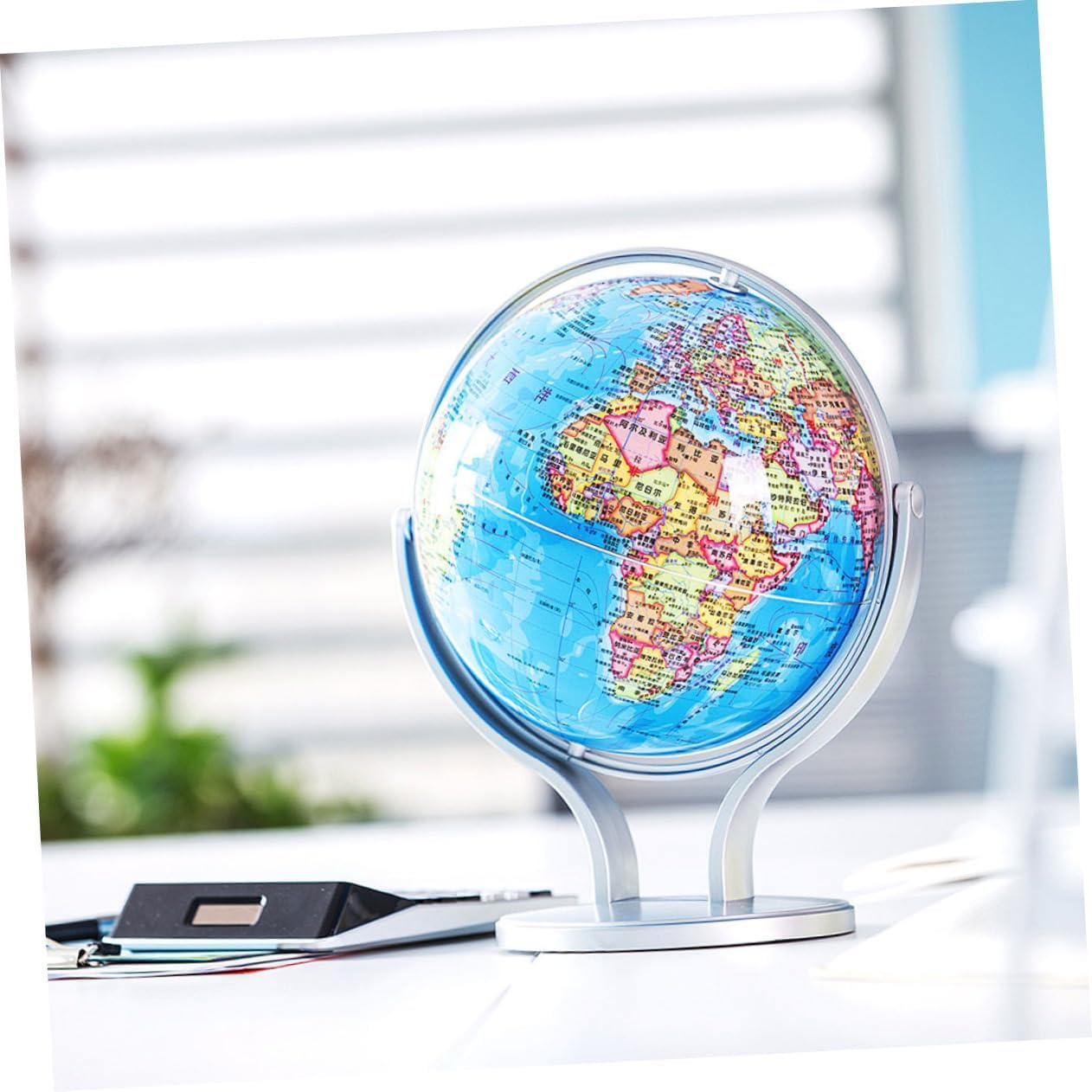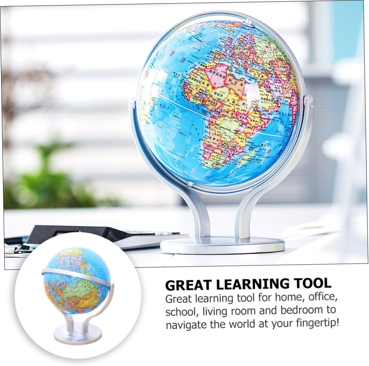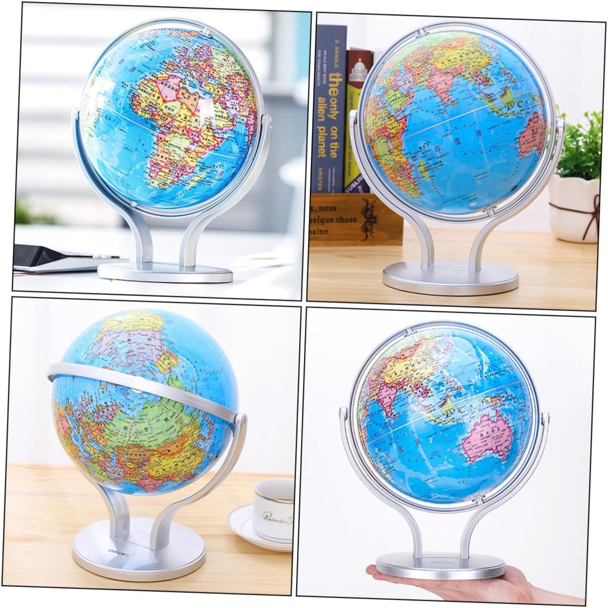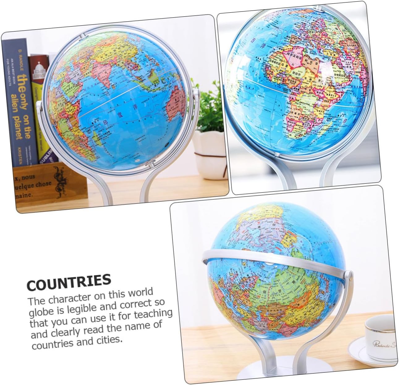 Mappamondo con supporto: il bellissimo e colorato mappamondo è una meravigliosa aggiunta all'arredamento della tua casa, della tua classe e della tua sala giochi, mappamondo didattico per Globo didattico: design con rotazione di 720 gradi, insegna ai il nostro mondo in modo divertente, facile e divertente, globo terrestre per Globo terrestre educativo: aiuta i tuoi a comprendere le idee del mondo, dei continenti, dei paesi e delle città con un globo interattivo, un globo terrestre da tavolo Globi geografici con supporto: i caratteri su questo globo terrestre sono leggibili e corretti, così puoi usarlo per l'insegnamento e leggere chiaramente il nome di paesi e città, globo da tavolo Globo per - montato su una base piena e finitura argentata, questo è un globo, globi geografici da tavolo