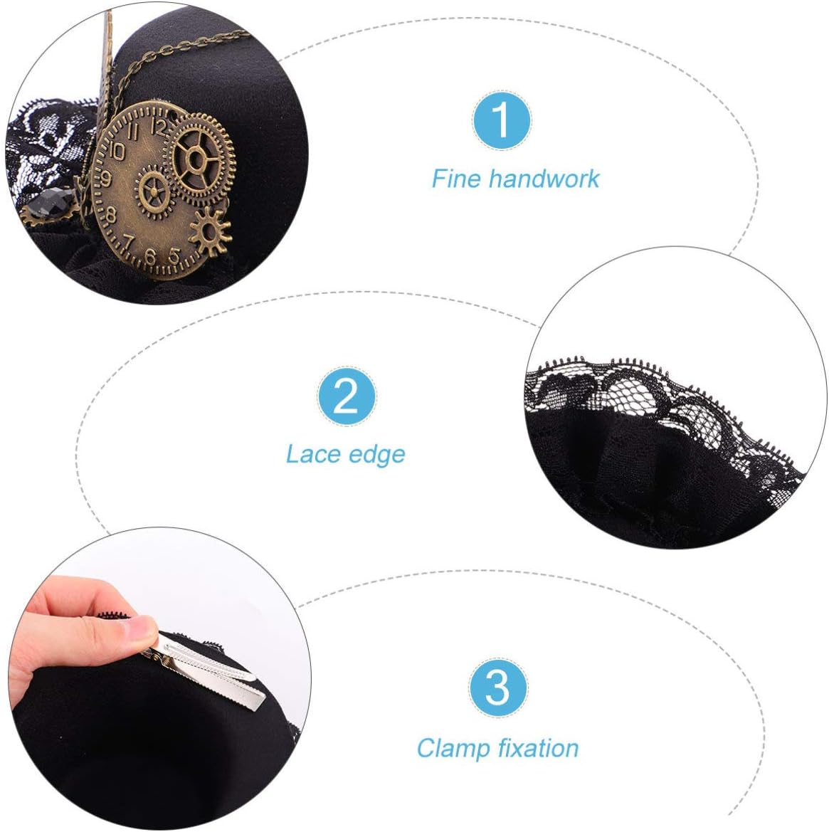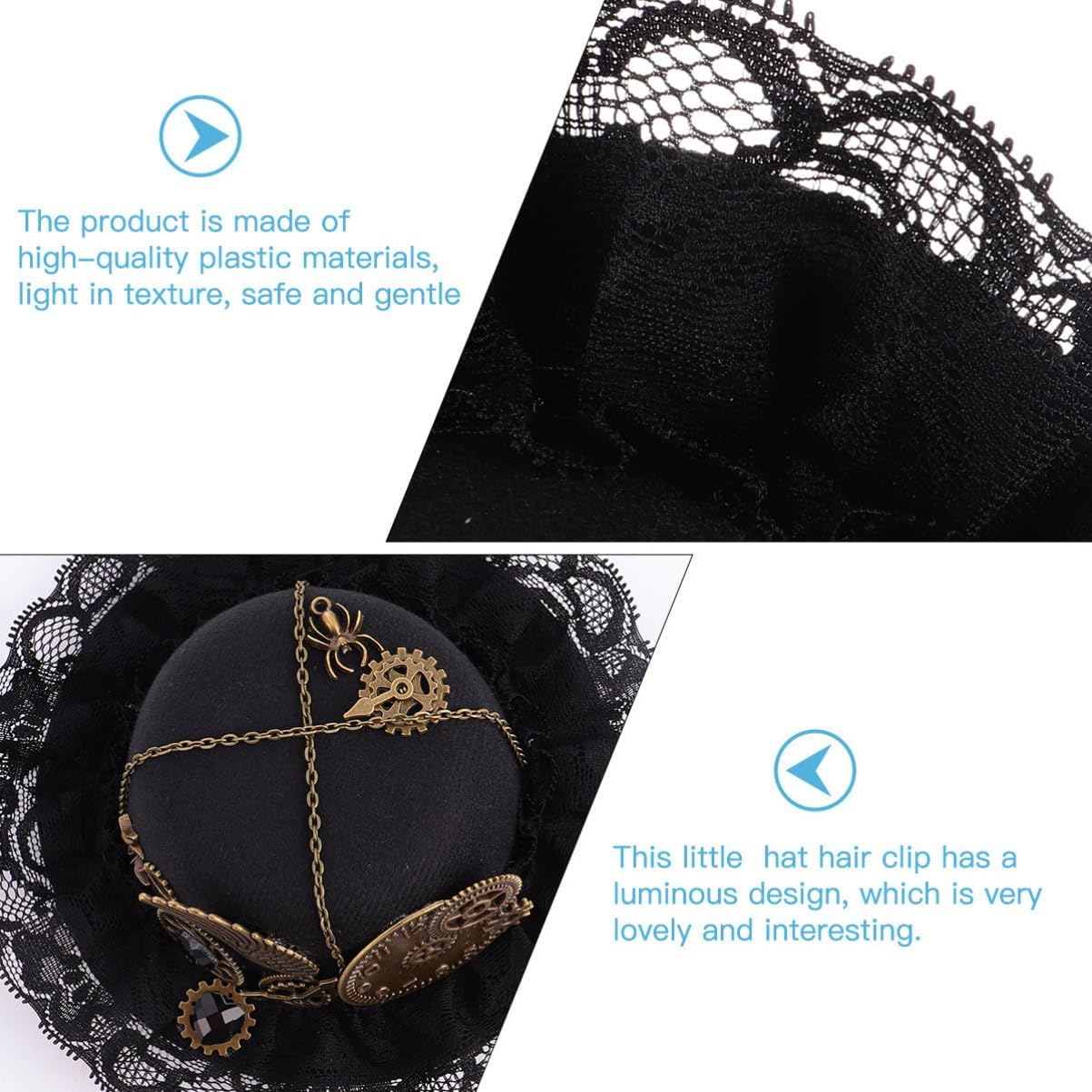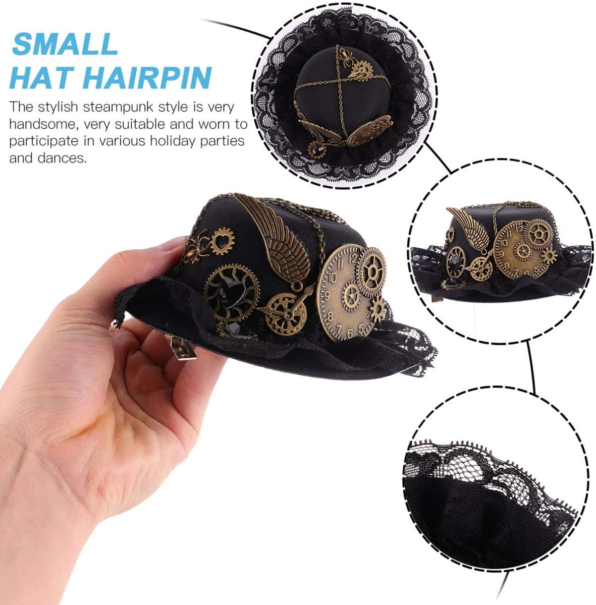 Cappello steampunk: il design elegante e bello del piccolo cappello rende gli accessori per adatti non solo per le feste ma anche per l'abbigliamento quotidiano, fermagli per neri. Fermagli per da donna: questo prodotto è ben fatto e di qualità, ed è molto adatto come piccolo fermaglio per cappello a cilindro. Forcina per accessori per spettacoli: pratica, questa molletta per non è adatta solo per varie feste, ma è anche adatta per feste da ballo e abbigliamento quotidiano, piccoli cappelli da tè molto pratici. Cappello piccolo: questo fermaglio per ha un design luminoso, che è molto bello e interessante, oggetti di scena per forcine. Fermaglio per da donna: il cappello e la forcina in stile steampunk, eleganti e belli, sono molto buoni con tutti i tipi di da festa squisiti, bordi di finti.