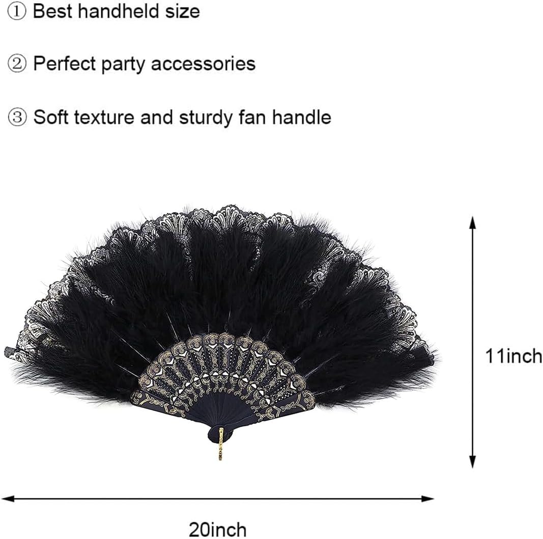 1. Costruzione solida: Realizzato con morbide e spesse piume di tacchino naturali, piastre in plastica incise e anelli metallici a forma di U per una costruzione resistente. 2. Dimensioni pratiche: Misura 11 pollici di lunghezza e 20 pollici di larghezza, facile da aprire e chiudere per un utilizzo senza sforzo. 3. Versatilit ed eleganza: Si abbina perfettamente a qualsiasi costume o accessorio alla moda, ideale per feste a tema di Halloween, balli di promozione, spettacoli vari o qualsiasi altra occasione speciale. 4. Sicuro da utilizzare: Le nostre piume vengono accuratamente selezionate e sterilizzate con calore e luce UV.Piuma da un lato e pizzo dall'altro. 5. Facile da mantenere: Le piume potrebbero perdere leggermente e sbiadire all'uso iniziale. Basta scuotere l'originale ventaglio di piume e pulirlo con un tovagliolo di carta asciutto per risolvere il problema.