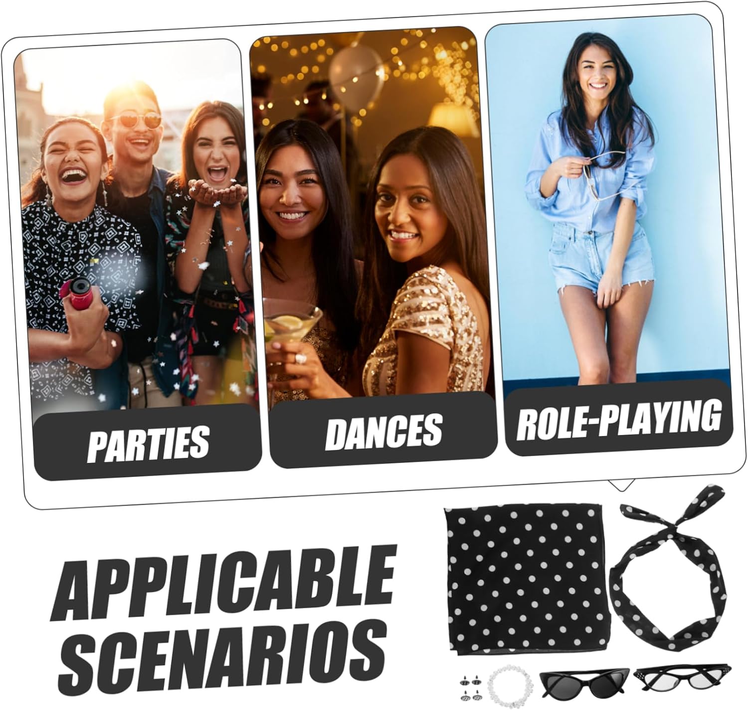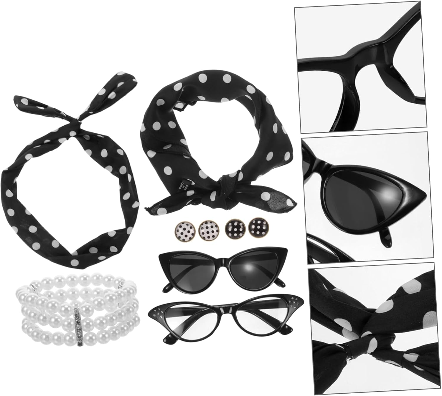 il pacchetto include 1 braccialetto 1 fascia per 1 sciarpa 2 occhiali 2 paia di orecchini caratteristiche -dimensioni:75,00x5,50x0,20 cm/29,48x2,16x0,08 pollici costume da donna anni '50 - :come mostrato oggetti di scena cosplay per donne -dimensioni: 46,00x46,00x0,20 cm/18,08x18,08x0,08 pollici oggetti di scena cosplay per donne -materiale: poliestere, oggetti di scena in plastica anni '50 per donne -versatile e può essere utilizzato per una varietà di occasioni , rendendoli un must per qualsiasi occhiali da sole cosplay della collezione di costumi. -leggero e comodo da indossare, divertente e creativo, unico e per feste cosplay Oggetti di scena cosplay anni '50 per donne. Il set cosplay può creare momenti speciali e indimenticabili per te e i tuoi amici oggetti di scena per feste cosplay. -se stai cercando di aggiungere un po' di divertimento a una festa o vuoi travestirti per un evento cosplay, questi sono gli accessori cosplay. L'oggetto cosplay degli anni '50 e può essere utilizzato come decorazione, facendoti risaltare in un set di costumi cosplay dalla . descrizione della merce oggetti di scena cosplay è comodo e, con una varietà di stili tra cui scegliere per soddisfare le diverse esigenze. Accessori per costumi cosplay per aggiungere un tocco di divertimento a qualsiasi evento, questo set di fasce per feste anni '50 è un accessorio indispensabile per chi ama l'atmosfera retrò. Oggetti di scena cosplay per donne, questo set di oggetti di scena a tema anni '50 è un classico oggetto di scena cosplay adatto a feste, balli e occasioni di giochi di ruolo