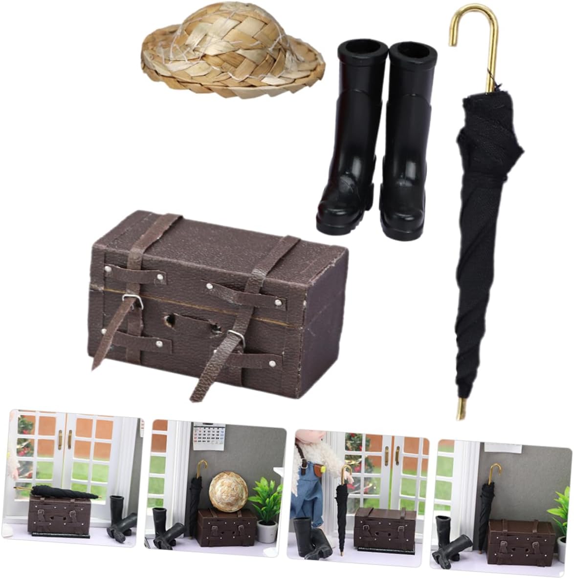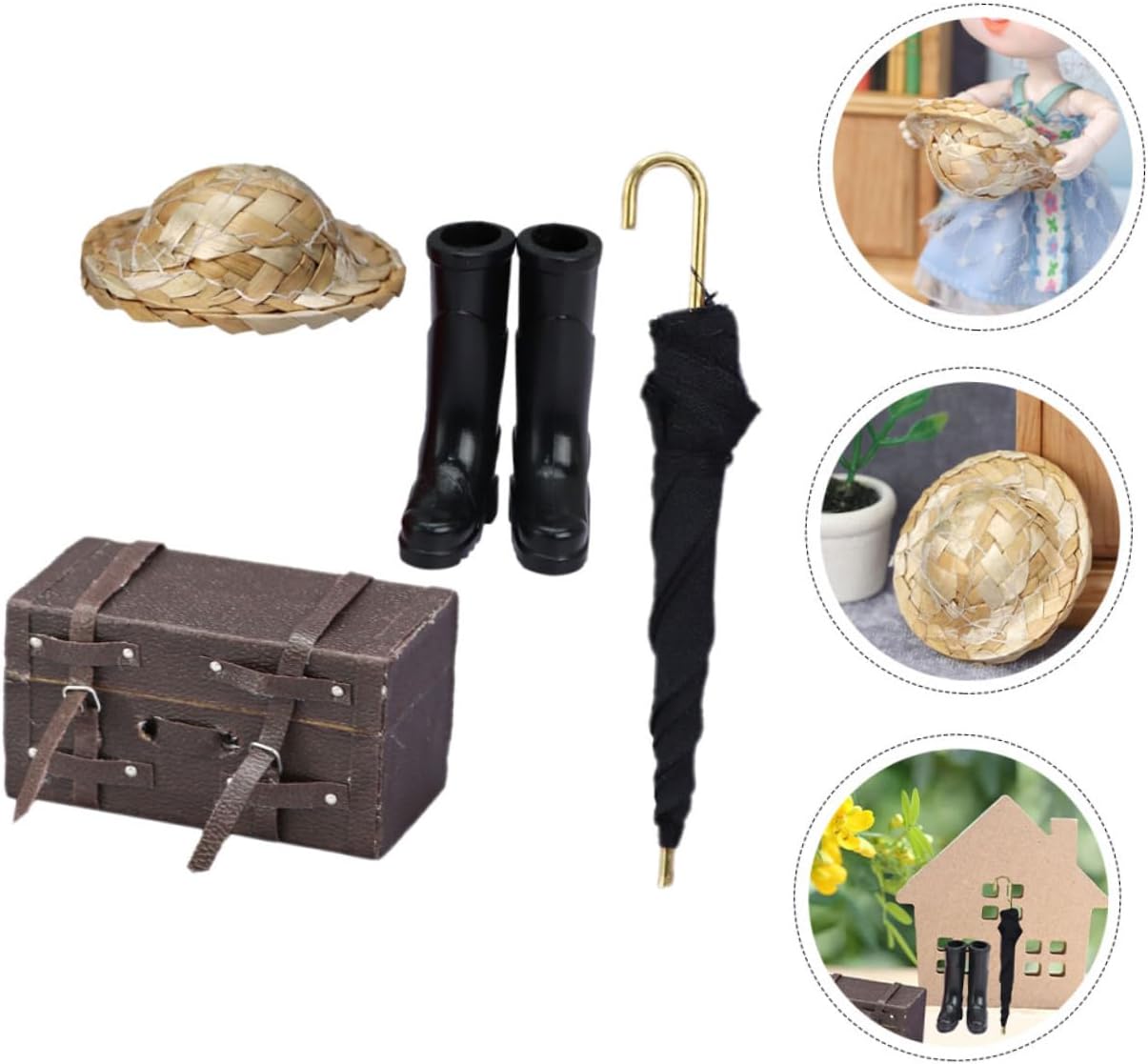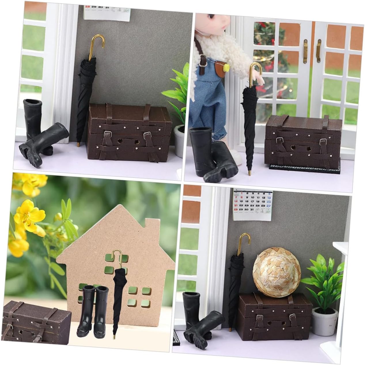 Mobili in miniatura: in miniatura di casa delle bambole. può essere utilizzato come custodia da viaggio o decorazione, pratico e versatile, statuetta in miniatura Accessorio da viaggio per la casa delle bambole: questi ornamenti non sono solo delicati e lisci, ma hanno anche un forte effetto decorativo, decorazioni per stivali da pioggia Ombrello in miniatura: accessorio decorativo per la casa in miniatura per giocare, adatto alla maggior degli stili di casa delle bambole, di ombrello in miniatura Valigia da casa delle bambole: ornamenti eccezionali caratterizzati da una lavorazione raffinata con dettagli incredibili che possono essere visti ovunque, valigia da casa delle bambole Mini valigia per casa delle bambole: adatta per mini case, una decorazione per la tua mini case, creando scene di vita colorate, di stivali da pioggia