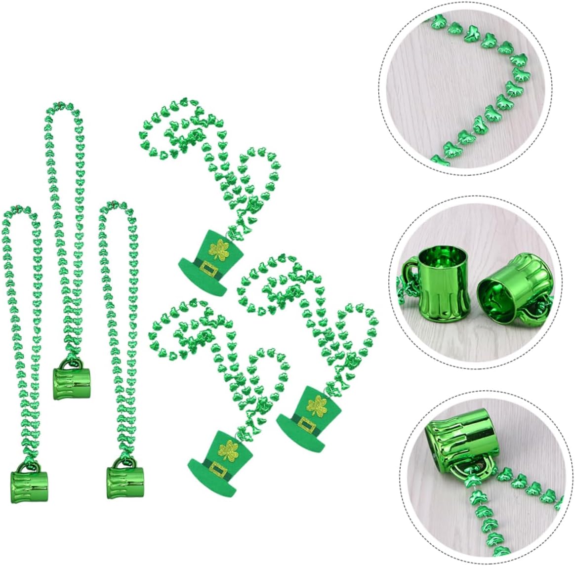 dei pacchetti 1 x set di 6 collane di perline per il di San Patrizio Caratteristiche -Materiale: tessuti non tessuti, plastica, gioielli per la festa di San Patrizio. - Collana con ciondolo di perline adatta per il di San Patrizio, feste o altre occasioni speciali. - Adatto per l'uso in sfilate, concerti, ristoranti e bar e altro ancora. Decorazioni per il di San Patrizio - Questo set di collane di perline di San Patrizio farà sentire a tutti i partecipanti alla festa i portafortuna! Collana da donna per il di San Patrizio - Le collane di San Patrizio sono realizzate con materiali sicuri, comodi e leggeri. collana di perle per donna - La collana di perline è in linea con lo stile delle feste e aggiunge un'atmosfera divertente alla collana di perline per il di San Patrizio. Informazioni sulla merce Decorazioni per il di San Patrizio Un meraviglioso per te. Collana con ciondolo di perline Ottimi oggetti di scena per le foto per la festa. Collana per il di San Patrizio Collana di perline a tema di San Patrizio per le donne. Collane per il di San Patrizio Collana perfetta per le donne per San Patrizio in materiale di prima qualità, sono comode da indossare, non graffiano la pelle e sono super comode in linea con la struttura umana