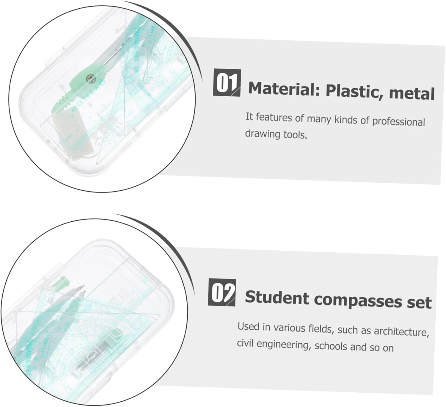 Kit da disegno per bussola matematica: buona produzione di materiali plastici e metallici, apparentemente semplice, ma ovunque è delicata. Righello scolastico: funzionerà come lavoro scolastico sull'architettura, sulla misurazione del punteggio, sul design artistico o sul modello di disegno. Kit righelli per compassi: funzionerà come lavoro per l'architettura, la misurazione del punteggio, il design artistico o il modello di disegno. Strumenti di disegno circolare multifunzionali: con diversi strumenti di disegno, che possono soddisfare le diverse esigenze di utilizzo, affidabili e utili. Righello matematico: è un valido aiuto per artisti, ingegneri, designer, architetti, studenti e altri.
