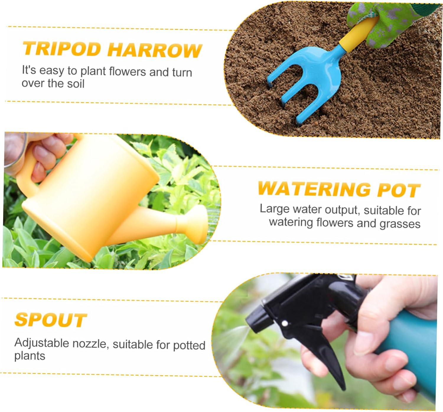 Giocattoli con attrezzi da giardino: questi interessanti attrezzi da spiaggia o da giardinaggio aiuteranno il tuo bambino a trascorrere un'infanzia più felice, giocattolo da gioco per bambini in giardino Giocattoli per piantare per bambini: il set include un bollitore per l'irrigazione, una pala a punta, un rastrello, una pala larga e una borsa per il trasporto, kid shovel Strumento da giardinaggio: portatile e leggero, può essere utilizzato a lungo, molto robusto e giocattolo da piantagione. Set da gioco con attrezzi da giardinaggio: i bordi arrotondati e la superficie liscia lo rendono sicuro da usare per i bambini, set da gioco per il giardinaggio per bambini Giocattoli da giardinaggio per bambini: sono realizzati in robusto acciaio inossidabile e materiale plastico per l'uso, giocattolo per attrezzi da giardino e pala per bambini
