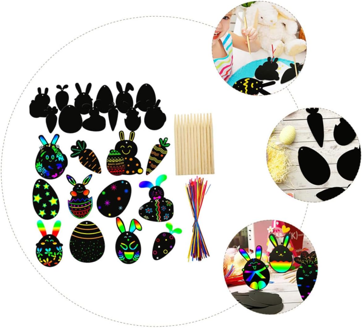 Carta da grattare di pasqua: basta usare degli stilo di legno per raschiare la superficie nera opaca della carta e rivelare il castello, forniture per feste di pasqua Giocattoli per : è un giocattolo divertente e innovativo per i , ed è anche un ottimo modo per allenare le capacità manuali e lo sviluppo dell'intelligenza dei , carta da grattare fai da te Carta da grattare: realizzata con materiale di qualità, questa carta da grattare è sicura e pratica da usare, adatta ai e delicata sulla pelle, articolo per feste Forniture pasquali: possono anche organizzare piccole competizioni creative con i loro amici, in cui possono divertirsi senza limiti, di carta da grattare per Carta da grattare per feste: che ne garantiscono la durata e la praticità, kit di carta da grattare