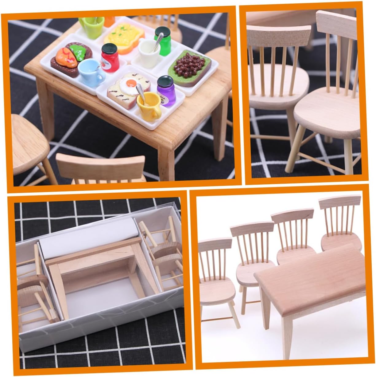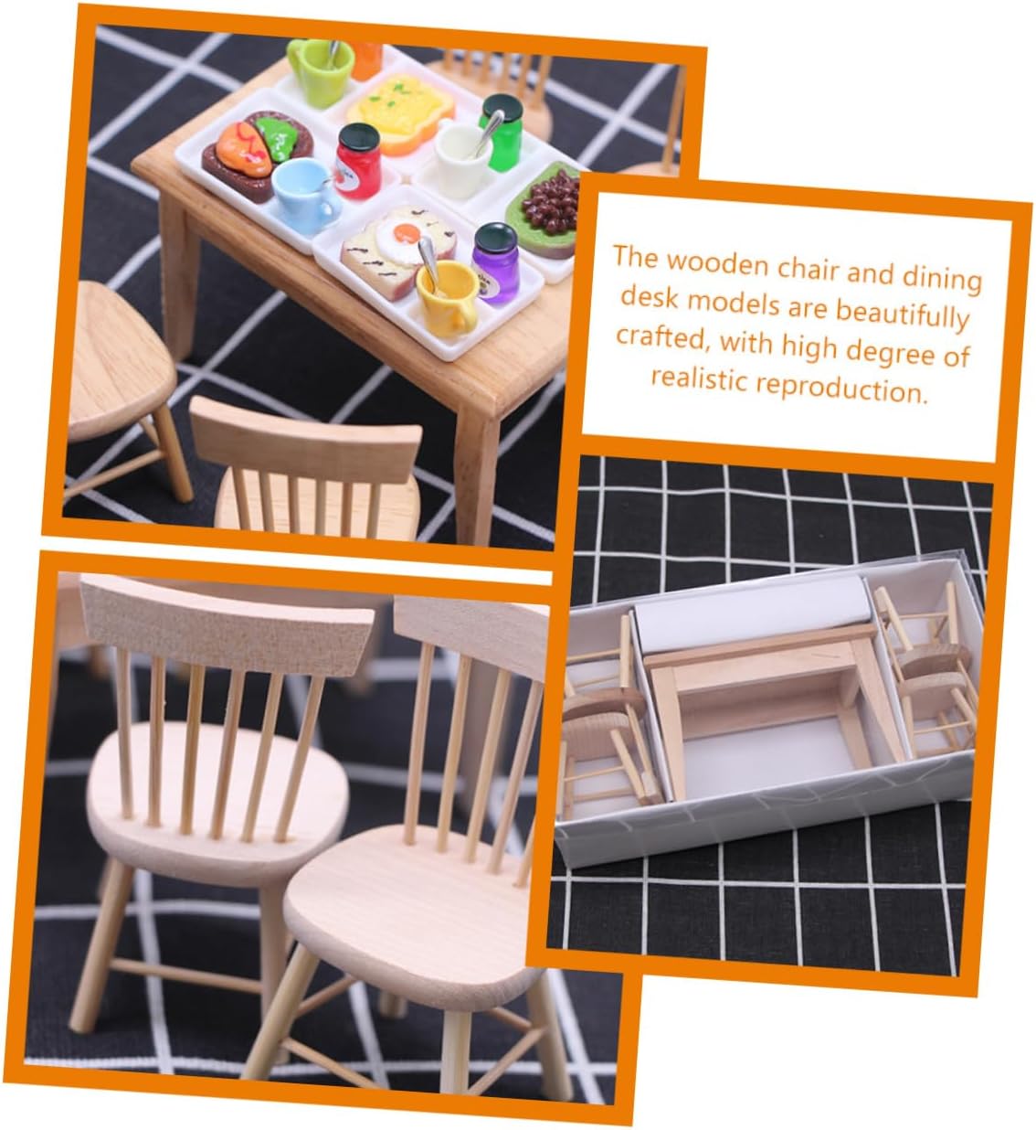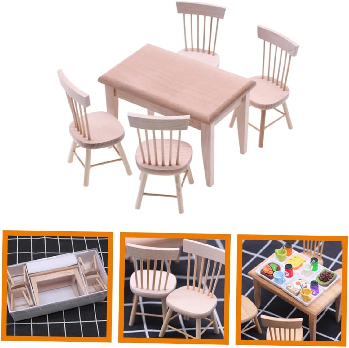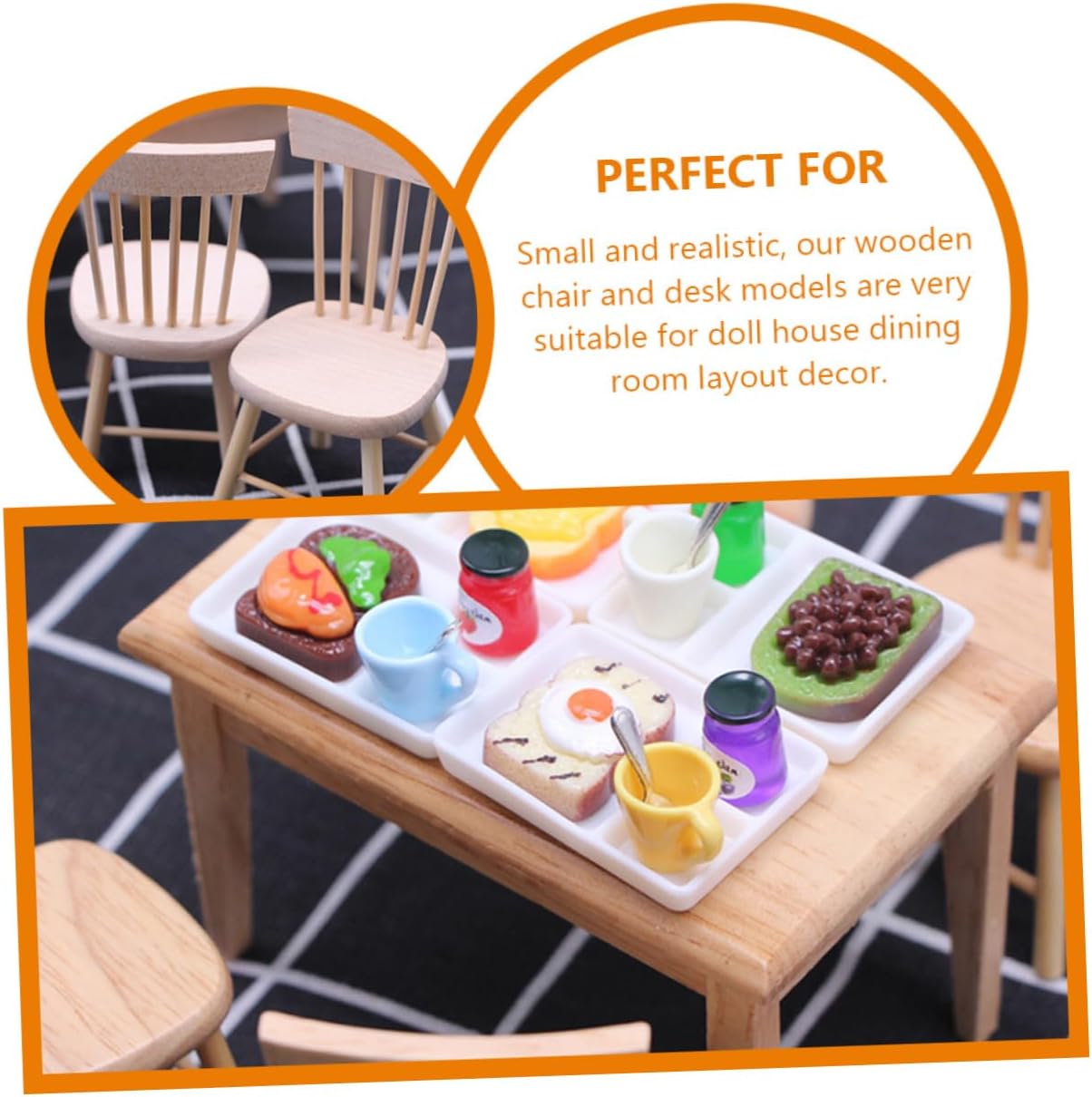 Mini: e robuste per un uso duraturo, queste mini-scrivania e mini-sedia in legno hanno una pregevole fattura che garantisce praticità e durata, mobili in miniatura per casa delle bambole Giocattoli da scrivania: i modelli di sedia in legno e scrivania da pranzo sono splendidamente realizzati, con un alto grado di riproduzione realistica, mobili per bambole Accessori per mini bambole: questi mobili in miniatura per scrivania e sedia non solo faranno divertire i bambini, ma coltiveranno anche l'immaginazione e la creatività dei bambini, l'arredamento del tavolo Modello di scena in miniatura: con colori chic e un aspetto realistico, questi modelli di sedia e scrivania in miniatura sono belli e adorabili, casa delle bambole in miniatura Sedia in miniatura per bambini: può essere utilizzata come supporto per layout, supporto fotografico, mini accessorio per la decorazione della casa, ornamento per il desktop