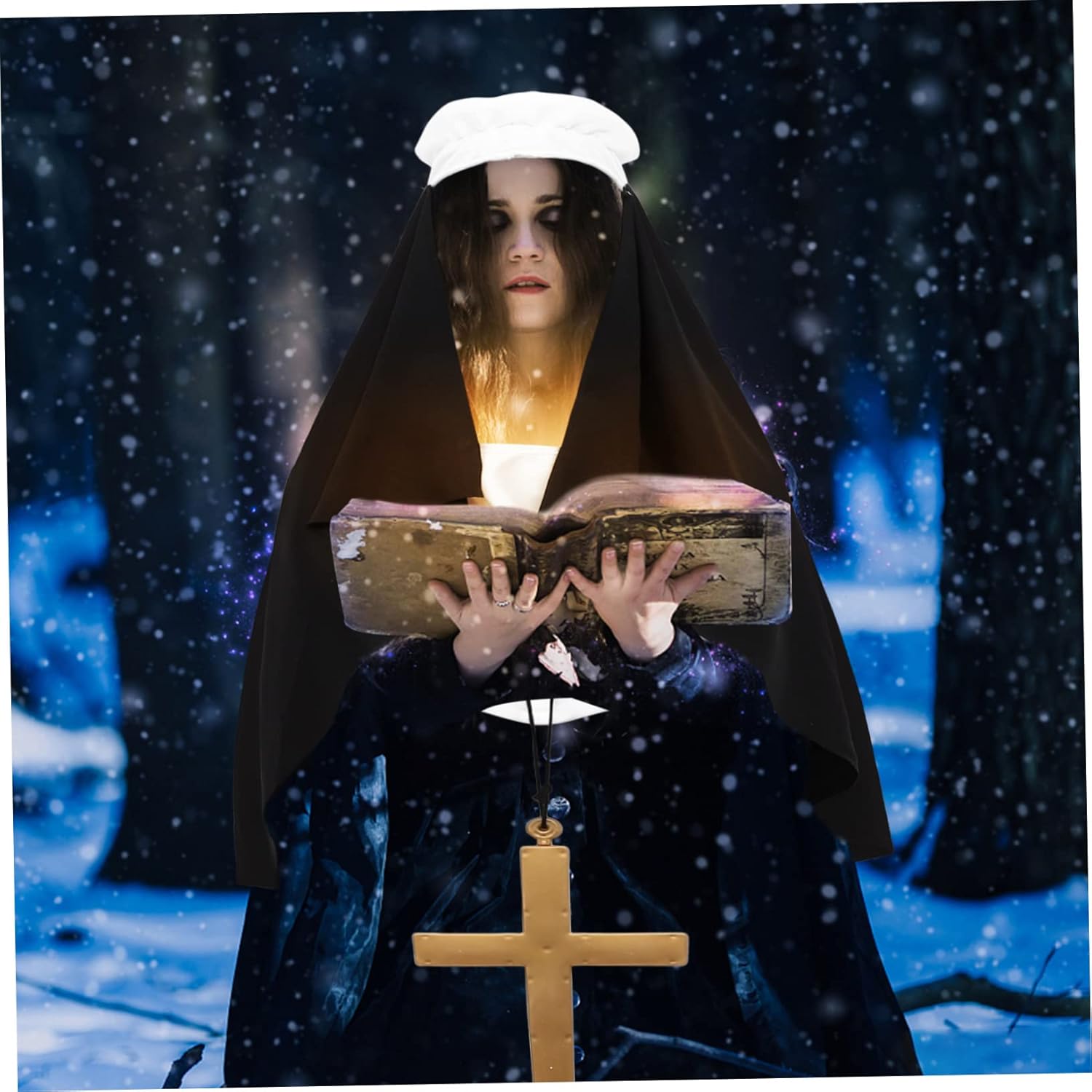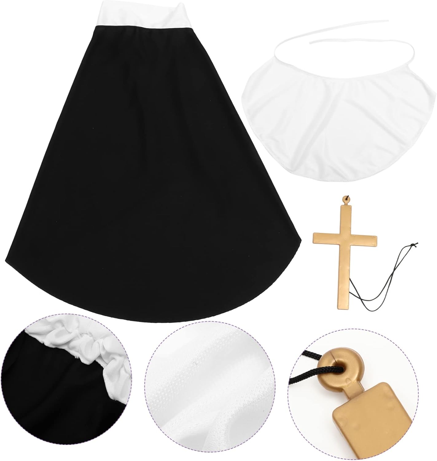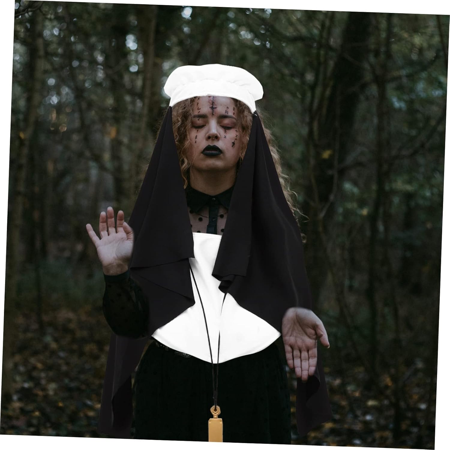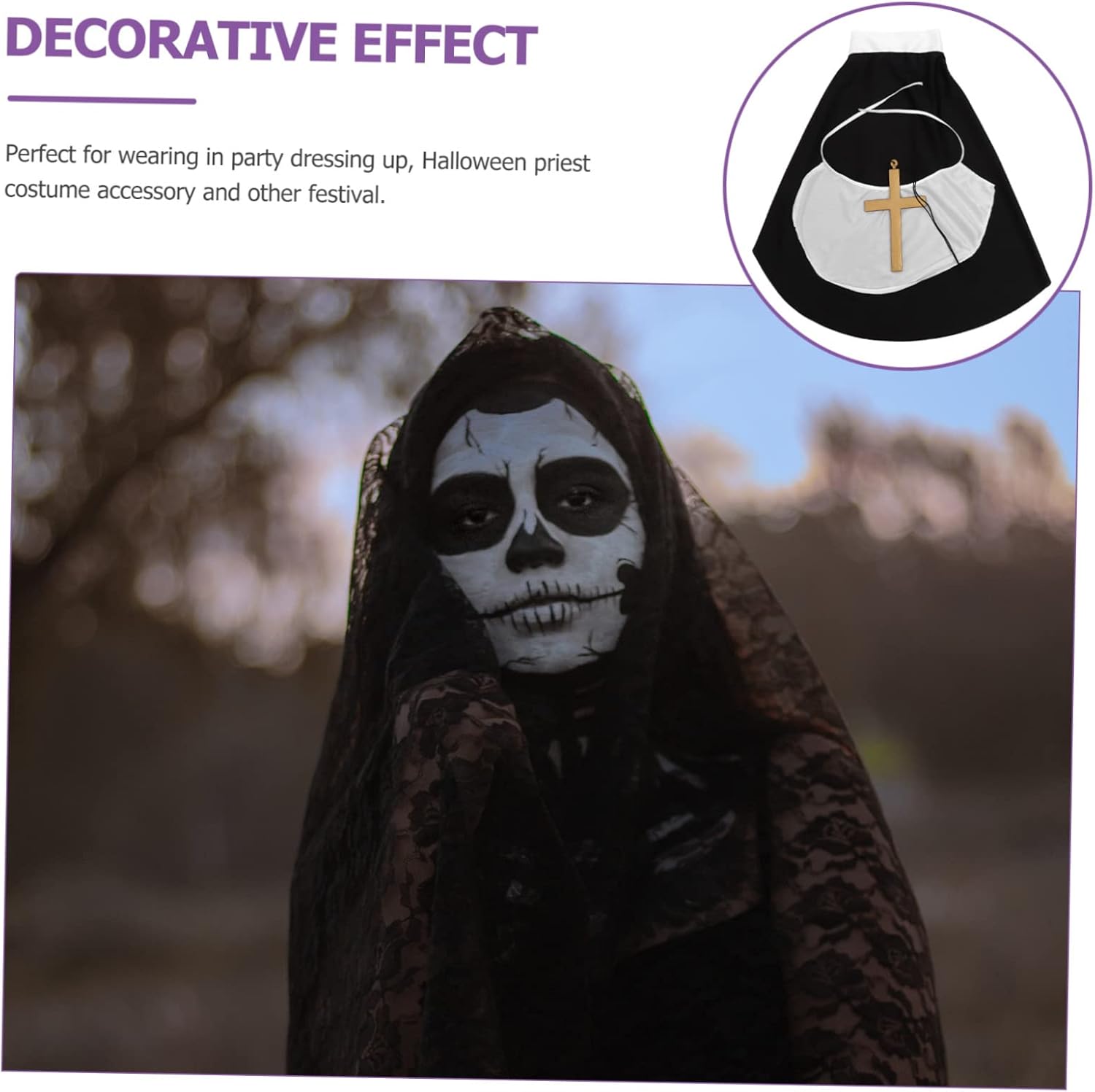 Accessorio per costume da suora: il kit di accessori per costumi è la decorazione per halloween, che può aumentare l'atmosfera festosa, l'abito da prete Uomini in costume da prete: da indossare durante le feste, accessori per costumi da prete di halloween e altri festival, oggetti di scena per cosplay da prete Ciondolo croce suora: eccellente sfondo fotografico o supporto fotografico per scattare foto e per sé con la famiglia e gli amici, sciarpa da uomo Oggetti di scena per cosplay di suore: questo kit di oggetti di scena per costumi da prete creerà un'atmosfera divertente e misteriosa per la tua festa, costume con fascino a croce Accessori di halloween: con un design unico e misterioso, può farti sembrare diverso alla festa, costume da prete per accessori da uomo