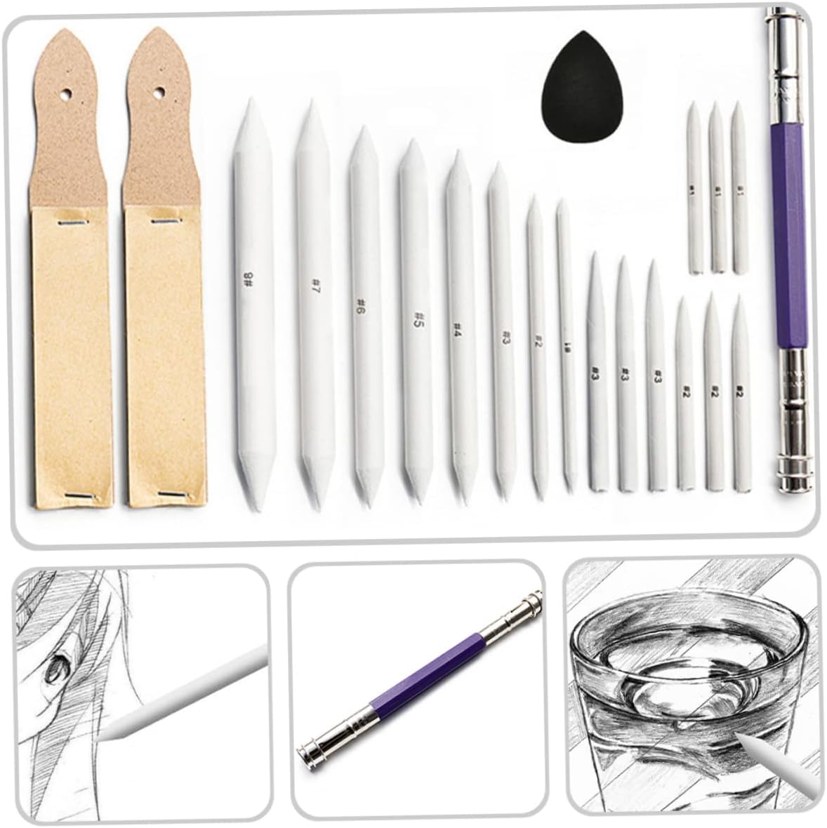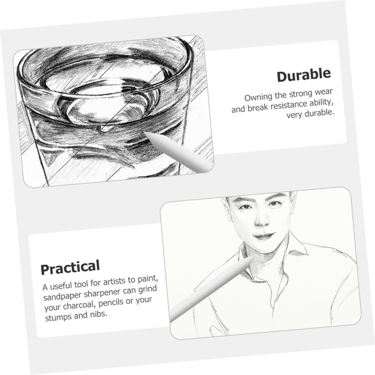 Strumento di disegno artistico: dotato di capacità di resistenza alla rottura, molto durevole, è piccolo e delicato, non occupa spazio, facile da trasportare, strumento di correzione degli schizzi Strumento per schizzi: uno strumento utile per gli artisti che vogliono dipingere, il temperino per carta vetrata può smerigliare il carboncino, le matite o i monconi e i pennini, cancellare le sbavature degli schizzi e strofinare Tergicristallo di ricambio: questo pratico sfumino può essere regalato agli amici a cui piace disegnare, album da disegno su carta per acquerelli Cancella schizzi: realizzato in materiale sicuro e di qualità, leggero e durevole, strumento per cancellare le sbavature Forniture per il disegno dell'artista: uno strumento efficiente e pratico che può aiutarti a migliorare le tue capacità di disegno e ad aumentare la tua creatività artistica, cancellino per schizzi per uso quotidiano