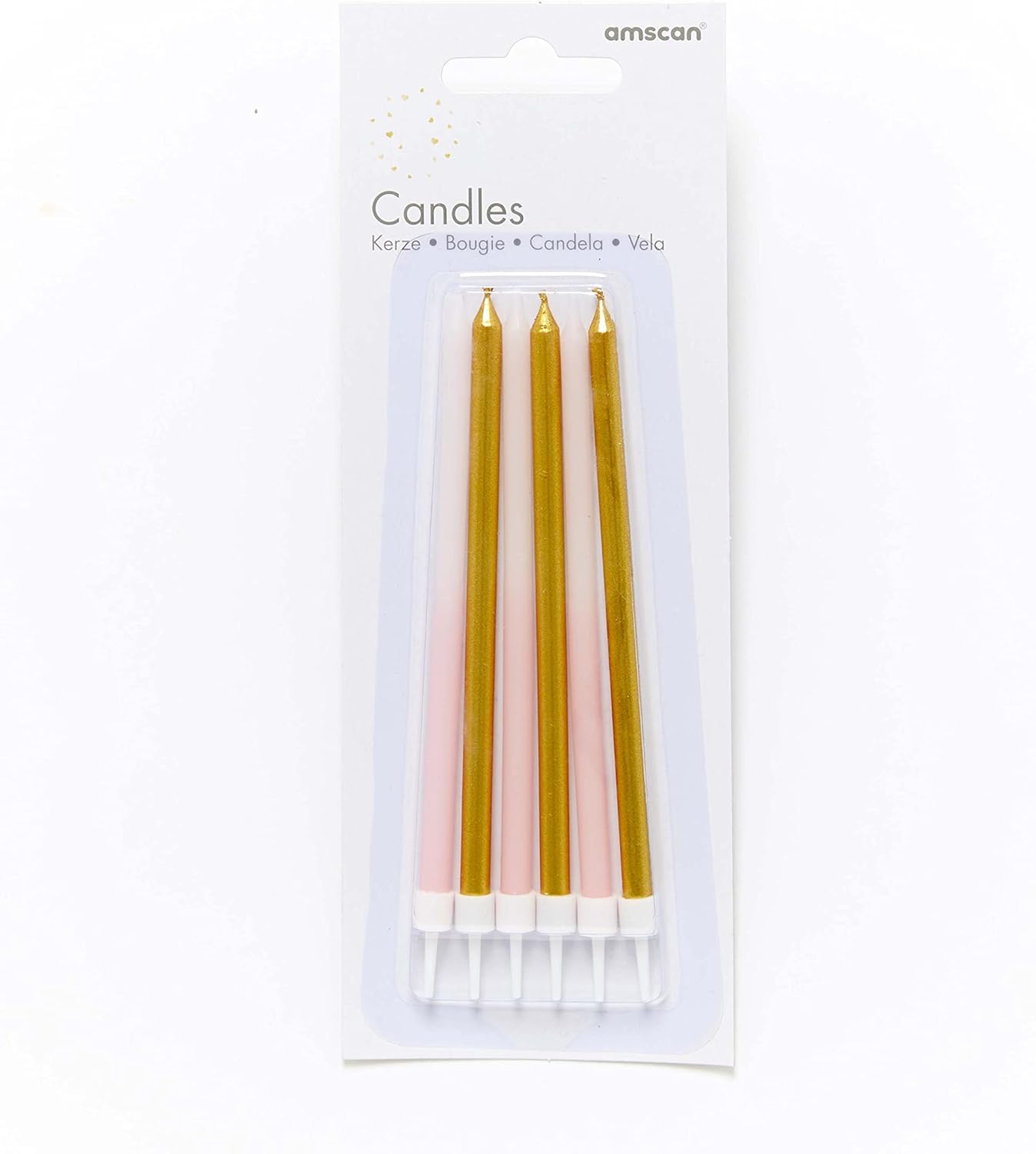 Candele alte rosa e oro Misura: 10 cm Confezione da 6 Dona un tocco finale alla torta