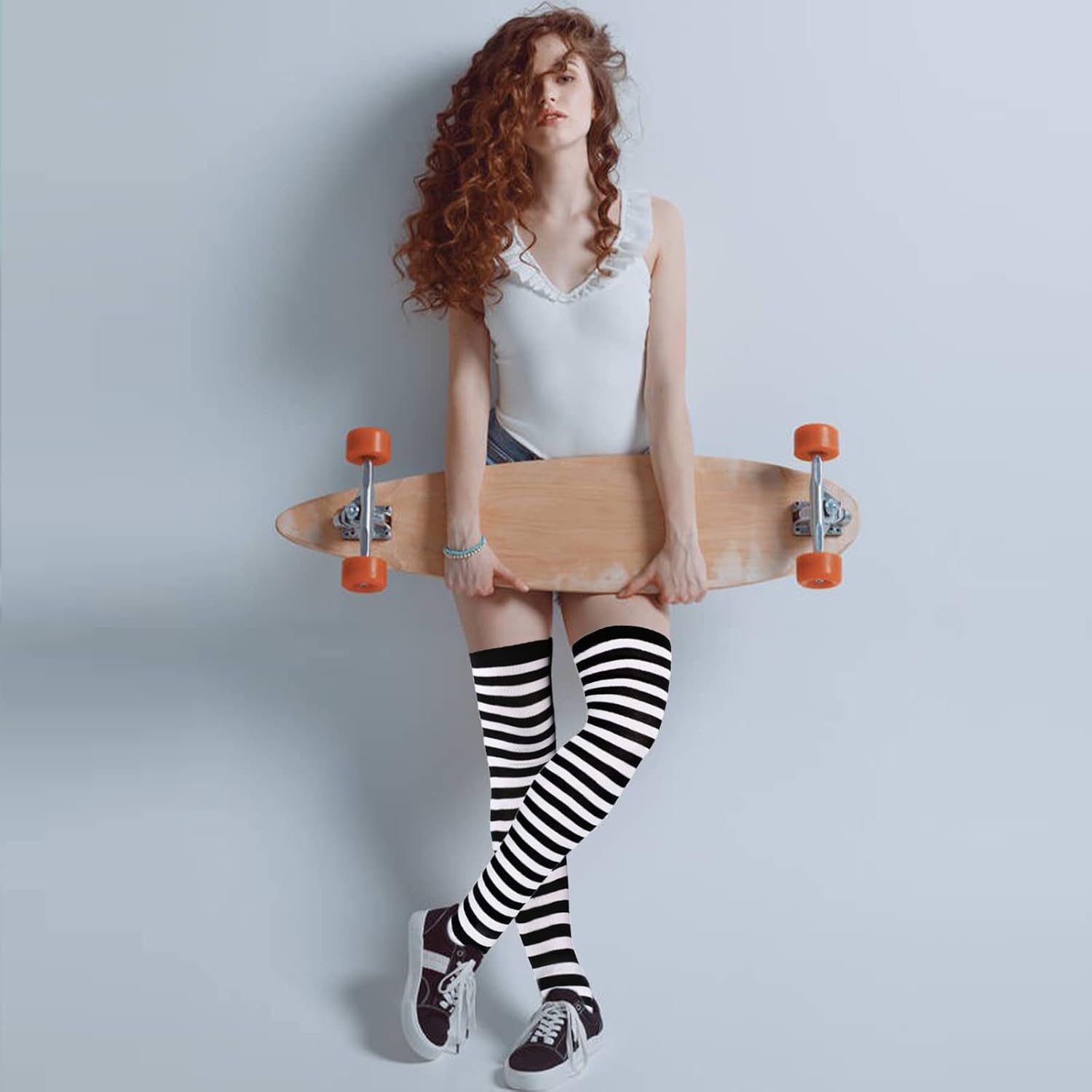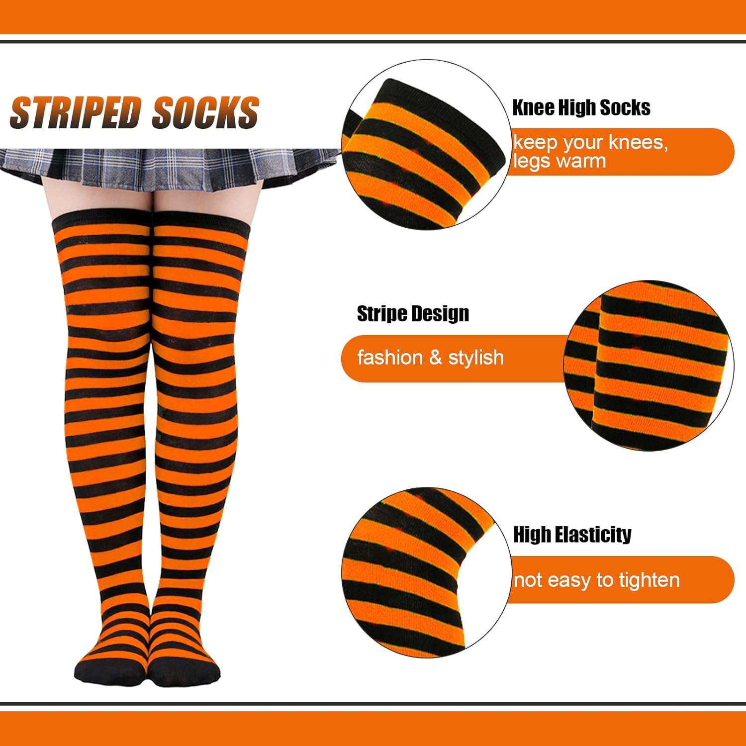 Had some issues with keeping the socks up where I wanted them. But pairing these with garter straps adds to the look, so that wasn't a big issue. The material is nice, soft, and stretchy. The fabric is on the thin side, but it does add to warmth, so keep that in mind. Good pick for fall/early winter wear. Fit what I was looking for.