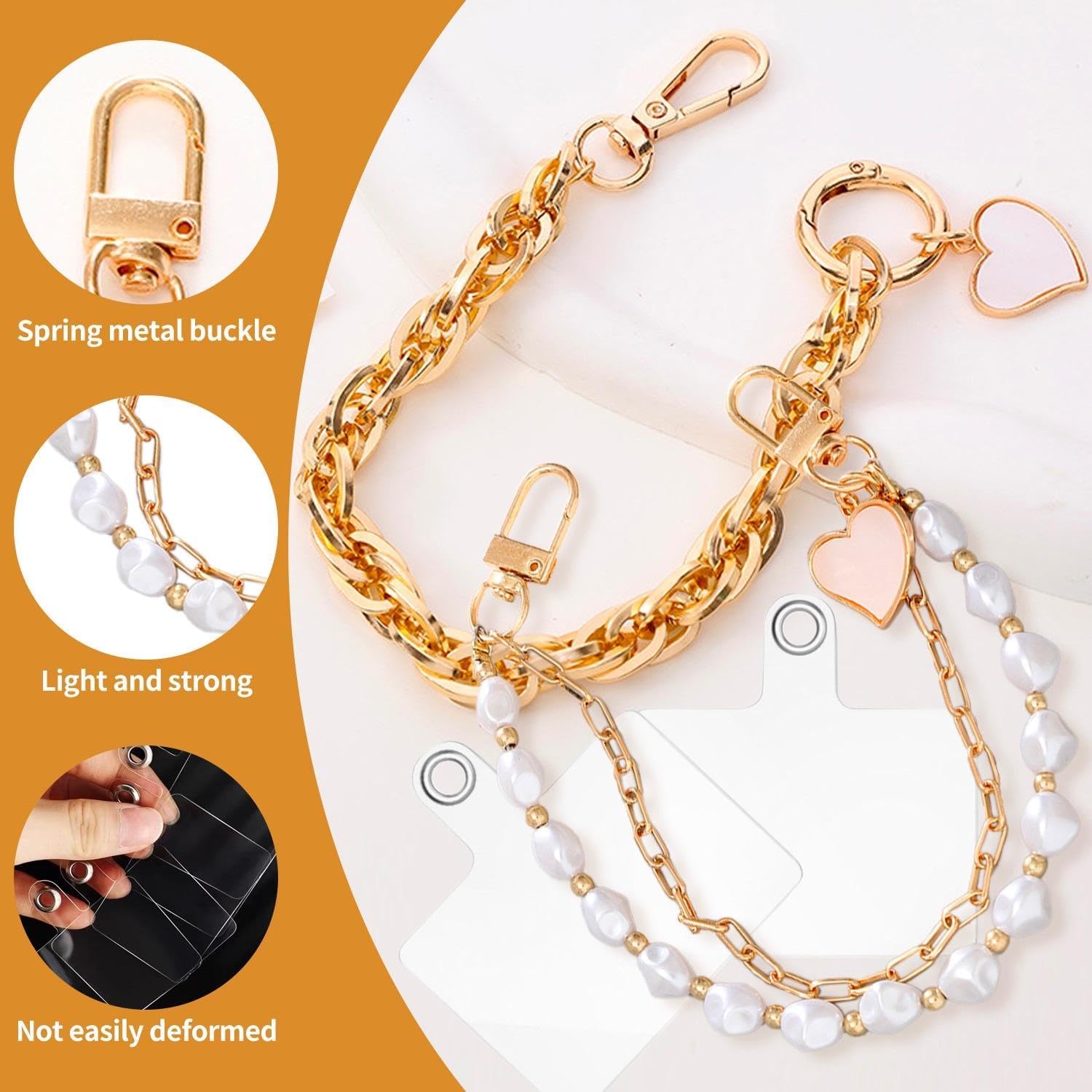 【Contenuto Del Prodotto】Riceverai 2 Adorabili Catenelle Per Appendere Telefoni Cellulari E 4 Pezzi Di Sigilli Per Telefoni Cellulari. La Lunghezza Della Catena Da Mano È Di 30 Cm E Il Colore È Oro; La Lunghezza Della Collana Di Perle È Di 26 Cm E Il Colore È Come Mostrato Nell'Immagine; La Dimensione Della Guarnizione Per Cellulare È 5, 4 X 4 Cm E Il Colore È Trasparente, Adatto Per Proteggere E Decorare I Cellulari. 【Materiale Del Prodotto】 La Catena Manuale Di Questo Prodotto È Realizzata In Metallo E Plastica Per Garantirne La Durata E L'Uso A Lungo Termine. Il Sigillo Del Telefono Cellulare È Realizzato In Materiale Pvc, Ha Una Buona Trasparenza Ed Effetto Protettivo Ed È Adatto Per L'Uso Su Vari Telefoni Cellulari. 【Design Unico】 Questo Prodotto Ha Un Design Unico, Tra Cui Un Design A Forma Di Cuore E Una Collana Di Perle, Che Aggiunge Un Senso Di Dolcezza E Moda. La Combinazione Di Catena In Metallo Dorato E Catena Di Perle Di Plastica Lo Rende Più Bello E Adatto Alle Donne. 【Ampia Applicazione】 Questo Prodotto Non Può Essere Utilizzato Solo Come Catena Per Appendere Il Cellulare, Ma Può Anche Essere Utilizzato Per Decorare Chiavi, Borse E Altri Accessori. I Sigilli Trasparenti Per Cellulare Possono Proteggere Il Tuo Cellulare Da Graffi E Sporco E Prolungarne La Durata. Facile Da Usare: Queste Catene E Distanziatori Per Cellulare Sono Facili Da Usare E Possono Essere Facilmente Installati E Rimossi. Basta Appendere La Catenella Al Cellulare O Ad Altri Oggetti E Potrà Essere Trasportata E Utilizzata In Qualsiasi Momento. La Guarnizione Del Cellulare Può Anche Essere Facilmente Fissata Sul Retro Del Cellulare E Non Cade Facilmente Dopo L'Uso.