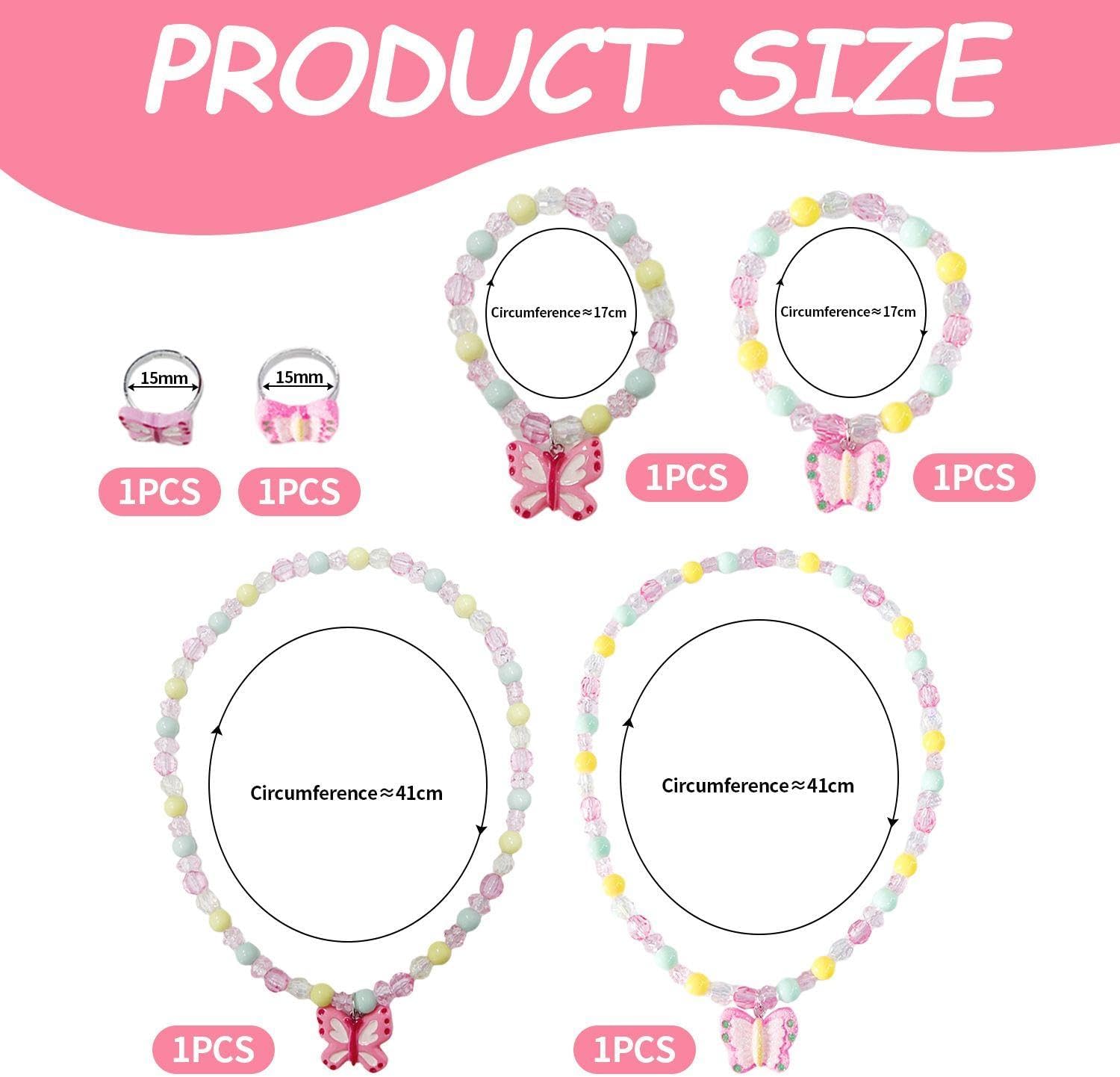 Contenuto Del Prodotto: Riceverai 2 Collane Di Perline A Farfalla, 2 Braccialetti Con Perline A Farfalla E 2 Anelli A Farfalla. La Circonferenza Della Collana È Di 41 Cm, La Circonferenza Del Braccialetto È Di 17 Cm, Il Diametro Dell'Anello È Di 1, 5 Cm E I Colori Sono Multicolori, Adatti Per Abbinare Graziosi Gioielli Per Bambini. 【Materiale Del Prodotto】 Questo Set Di Gioielli È Realizzato In Resina, Plastica E Metallo. È Durevole, Sicuro E Adatto All'Uso Quotidiano Da Parte Dei Bambini. Il Materiale È Leggero E Confortevole, Non Provoca Allergie Ed È Molto Adatto Come Gioiello Per Bambini. 【Design Unico】 Questo Prodotto È Splendidamente Progettato Con Motivi Di Farfalle E Perle, Colori Intensi E Forma Carina. Collane, Bracciali E Anelli Sono Tutti Decorati Con Farfalle E Perle, Che Aggiungono Interesse E Bellezza E Li Rendono Perfetti Per Ogni Occasione. 【Ampia Applicazione】 Questo Set Di Accessori È Molto Adatto Come Decorazione Quotidiana Per I Bambini E Può Essere Utilizzato Anche Per Occasioni Speciali Come Feste, Banchetti Di Compleanno, Ecc. Non Solo Può Aggiungere Punti Salienti All'Outfit, Ma Anche Rafforzare La Consapevolezza Della Moda E La Fiducia In Se Stessi Dei Bambini. 【Regalo Perfetto】 Questo Set Di Gioielli Con Farfalla È Un Regalo Ideale Per Le Ragazze, Sia Come Regalo Di Compleanno, Sorpresa Per Le Vacanze O Ricompensa Quotidiana, Può Dare Ai Bambini Una Sensazione Felice E Speciale.
