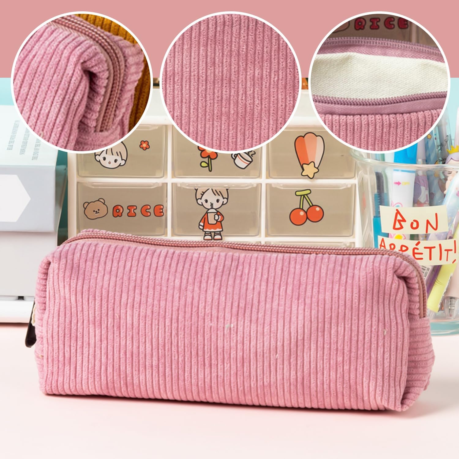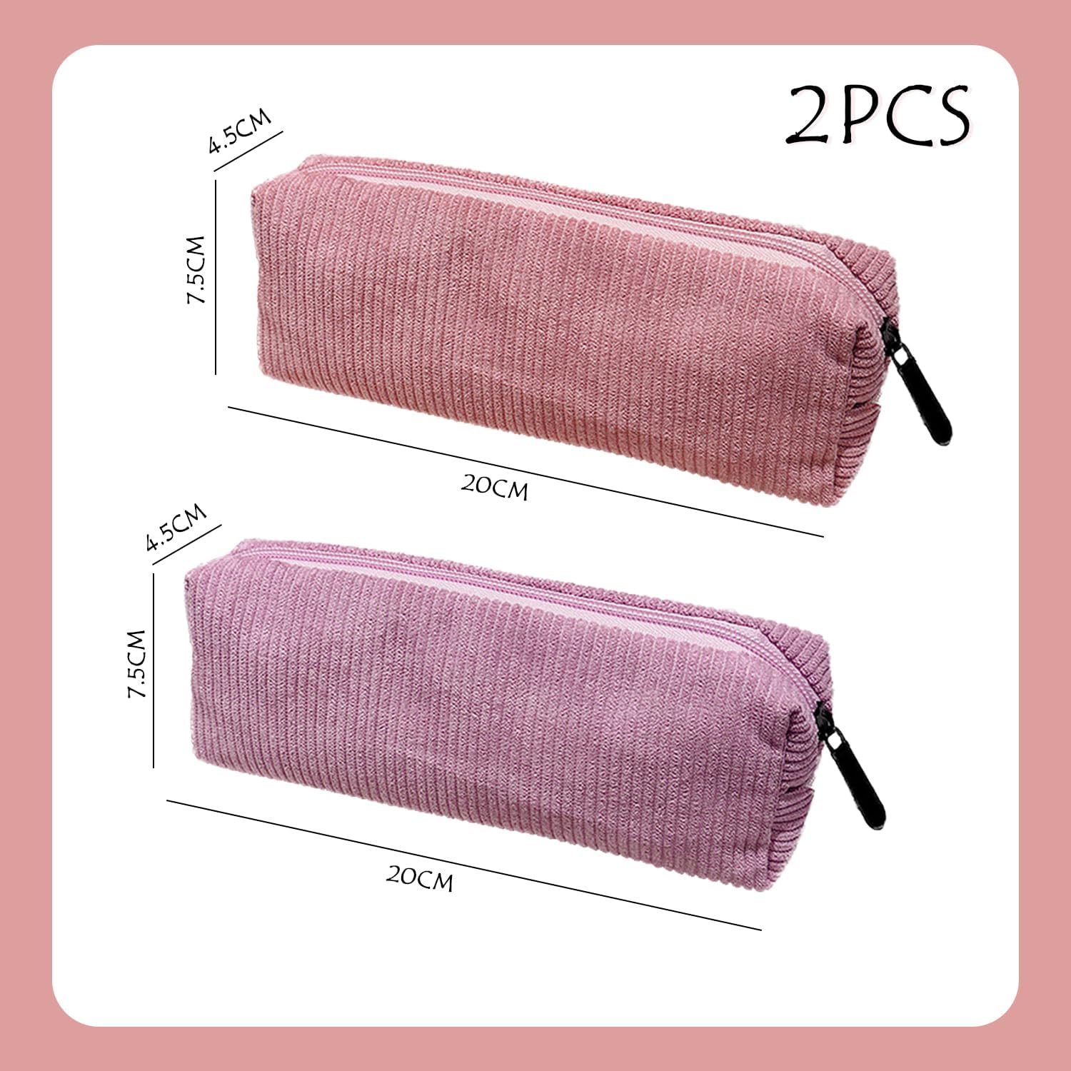 【Contenuto Del Prodotto】Riceverai 2 Astucci In Velluto A Coste. Le Dimensioni Di Ogni Astuccio Sono 20*4, 5*7, 5 Cm E I Colori Sono Polvere Di Pasta Di Fagioli E Rosa, Adatti Per Riporre La Cancelleria Degli Studenti. 【Materiale Del Prodotto】 Questo Prodotto È Realizzato In Materiale Di Velluto A Coste, Morbido E Resistente. Il Materiale In Velluto A Coste Non Solo È Comodo, Ma Ha Anche Una Buona Durata E Praticità, Rendendolo Adatto All'Uso Quotidiano. 【Design Semplice】 Questo Prodotto Ha Un Design Semplice E Alla Moda Con Un Aspetto Elee, In Grado Di Soddisfare Le Esigenze Quotidiane Di Conservazione Della Cancelleria. Il Design Semplice Lo Rende Facile Da Trasportare E Utilizzare, Rendendolo Ideale Per Studenti E Impiegati. 【Applicazione Multifunzionale】 Questo Prodotto Non Può Essere Utilizzato Solo Come Scatola Di Cancelleria, Ma Può Anche Essere Utilizzato Per Conservare Cosmetici, Accessori Per Telefoni Cellulari E Altri Piccoli Oggetti. Il Design Multifunzionale Lo Rende Adatto Ad Un'Ampia Gamma Di Applicazioni E Soddisfa Diverse Esigenze Di Stoccaggio. Facile Da Pulire: Il Materiale In Velluto A Coste Rende Questo Articolo Facile Da Pulire, Basta Semplicemente Pulirlo Dopo L'Uso. Mantieni L'Astuccio Pulito E Ordinato, Prolungandone La Durata.