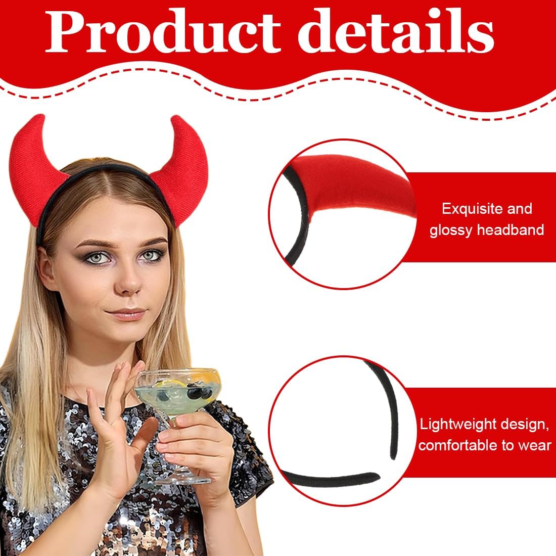 Accessorio diabolico: perfetto per carnevale, Halloween o feste a tema: queste corna da diavolo aggiungono un tocco unico al tuo costume e attirano l'attenzione Comodo cerchietto: include un cerchietto con un corno da diavolo rosso che rimane saldamente in posizione e offre una vestibilità comoda, ideale per ore di utilizzo senza sentire pressione Colori vivaci: il corno rosso brillante, lungo circa 6 cm, crea un look audace e malizioso, completando perfettamente il tuo costume da diavolo Adattabilità ottimale: grazie al suo design regolabile, la fascia si adatta a tutte le forme della testa e rimane saldamente in posizione - adatto sia per adulti che per bambini Uso versatile: ideale per carnevale, Halloween, spettacoli teatrali o altre occasioni - questa fascia in corno da diavolo è l'accessorio perfetto per molte idee di costumi