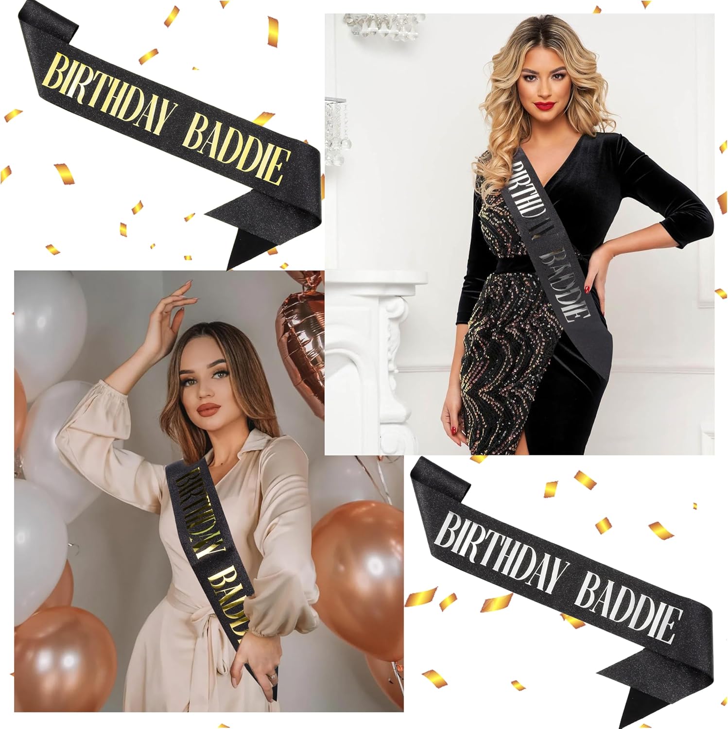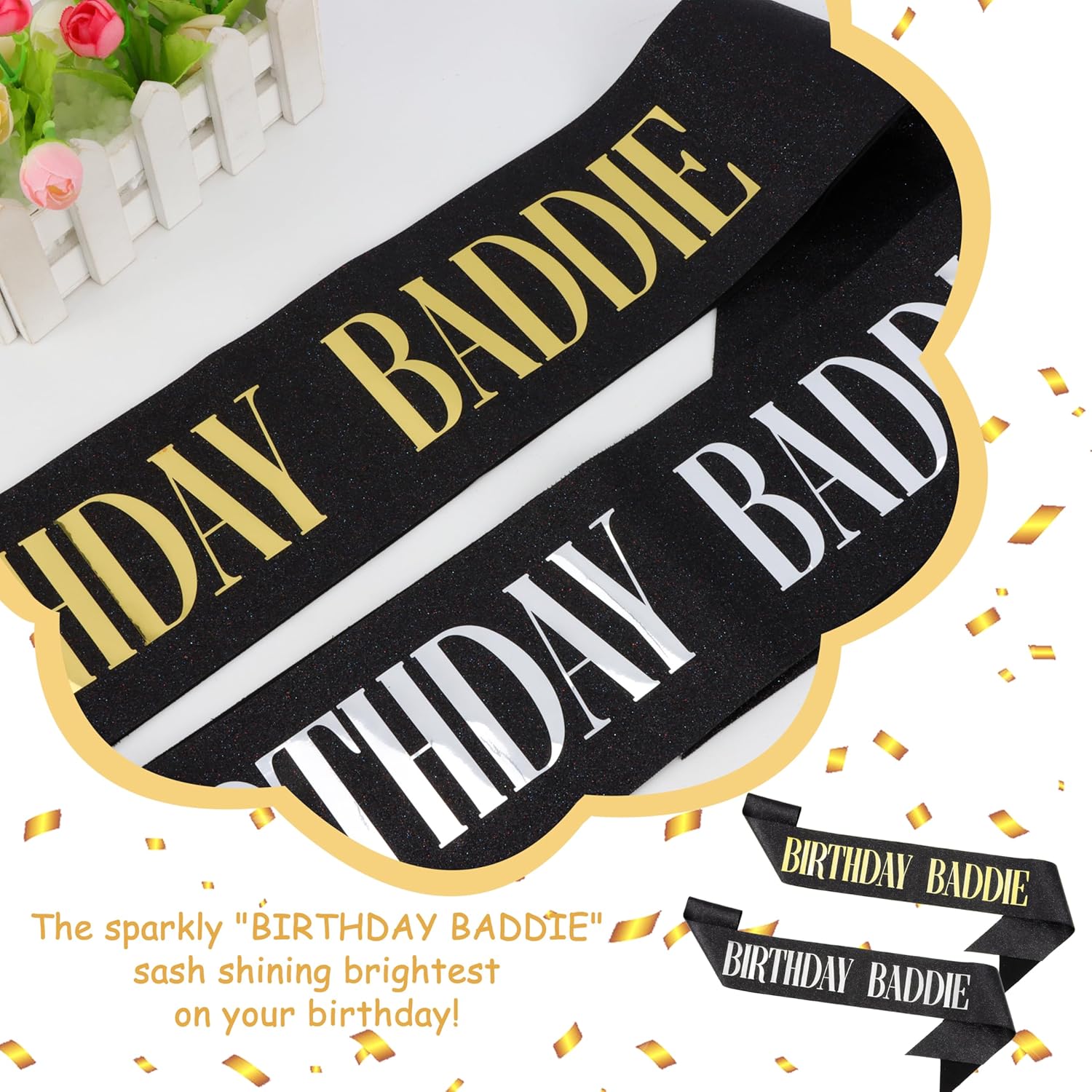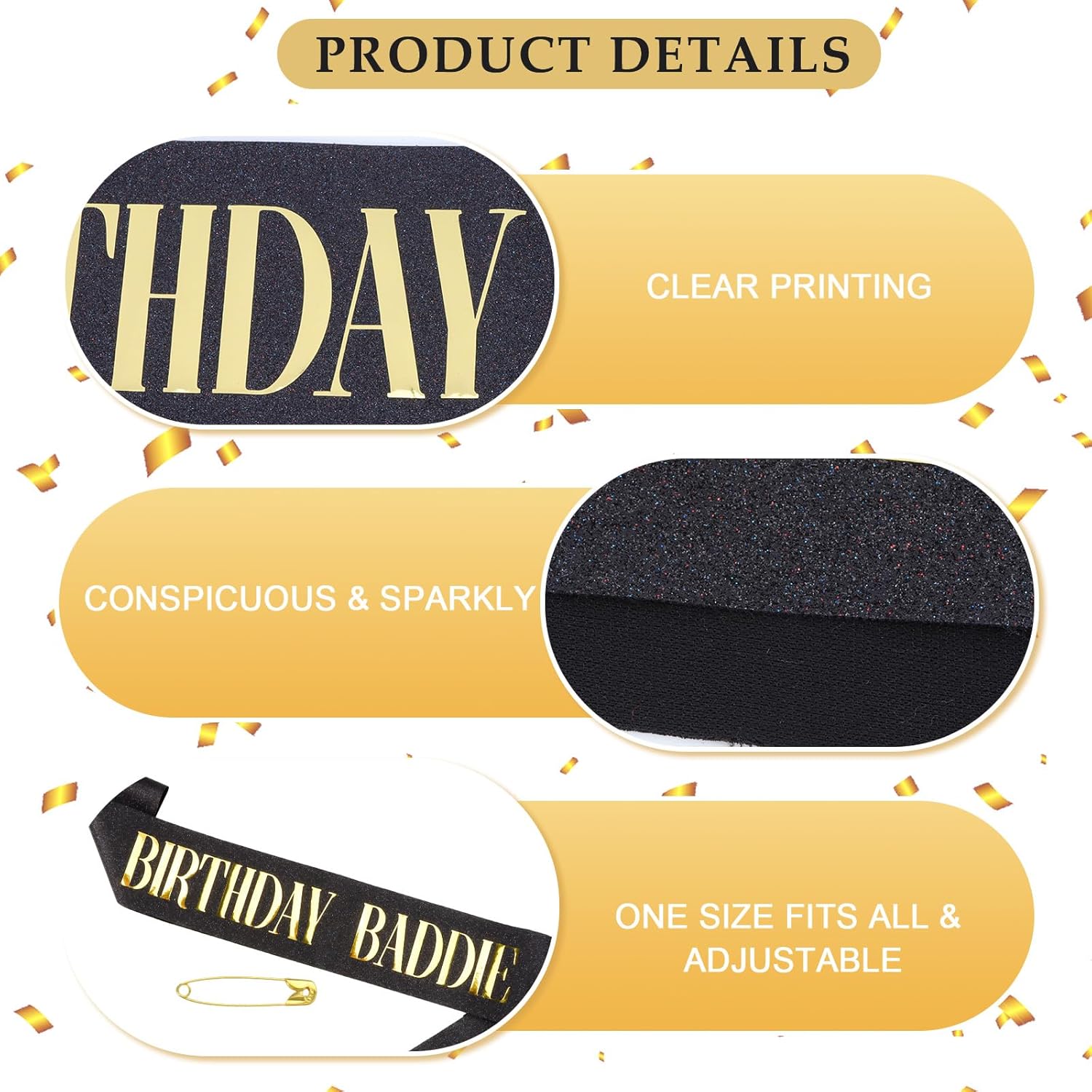 Colore classico: riceverai due fasce di compleanno, una con sfondo nero lamina d'oro e l'altra con una lamina d'argento su sfondo nero. Puoi condividere due fasce di compleanno con i tuoi amici, familiari e persone care a una festa di compleanno Materiale scalogno di alta classe: la fascia per compleanno è realizzata con cura in polvere di scalogno, che è fine e uniforme, saldamente attaccata e non cade facilmente. Sotto l'illuminazione della luce, brilla con una lucentezza affascinante, aggiungendo un'atmosfera lussuosa e alla moda alla fascia, migliorando anche la qualità del prodotto, rendendo la stella di compleanno unica e nobile Design divertente: il "compleanno baddie" sulla fascia di compleanno nera non solo mostra una personalità unica, ma aggiunge anche un'atmosfera gioiosa e rilassata alla festa di compleanno. Rompe la monotonia delle tradizionali decorazioni di compleanno ed esprime benedizioni alla stella del compleanno in modo divertente, rendendo tutti coloro che la vedono sorridere consapevolmente e rendendo l'atmosfera della festa più vivace Ampiamente applicabile: questa fascia di compleanno è lunga 160 cm e viene fornita con una spilla che può essere regolata liberamente in base alle esigenze personali. Questa fascia di compleanno per donne e uomini è semplice ed elegante, adatta sia per le donne per mostrare eleganza e giocosità, sia per gli uomini per mostrare individualità e moda, raggiungendo davvero la compatibilità di genere Focus sulla festa: questa fascia di buon compleanno funge da decorazione per una festa di compleanno, migliorando istantaneamente il senso della cerimonia della festa. Indossando questa tracolla, la stella del compleanno sembra avere un alone protagonista, evidenziando il significato speciale del loro compleanno. Non è solo una decorazione, ma anche un elemento indispensabile per le feste di compleanno, lasciando ricordi indimenticabili e belli per le stelle di compleanno