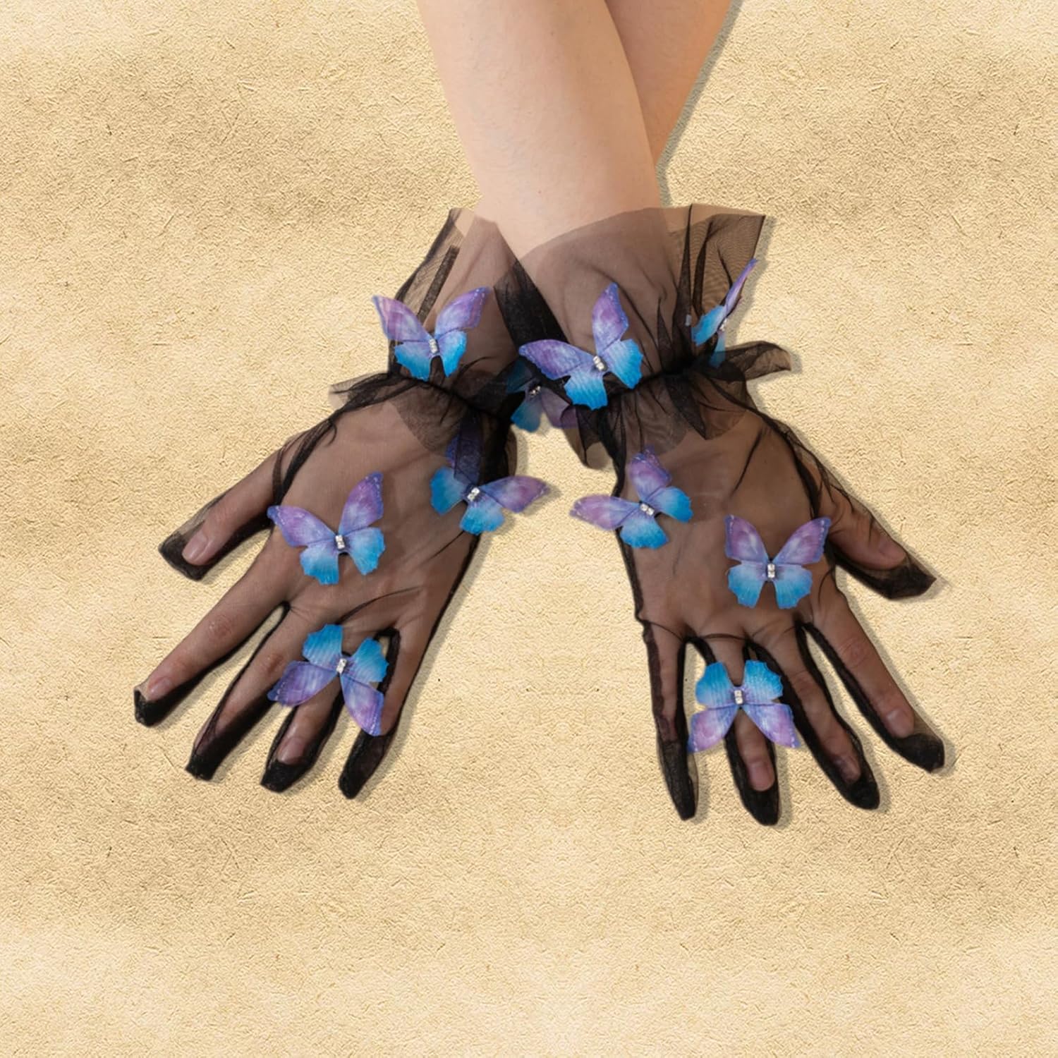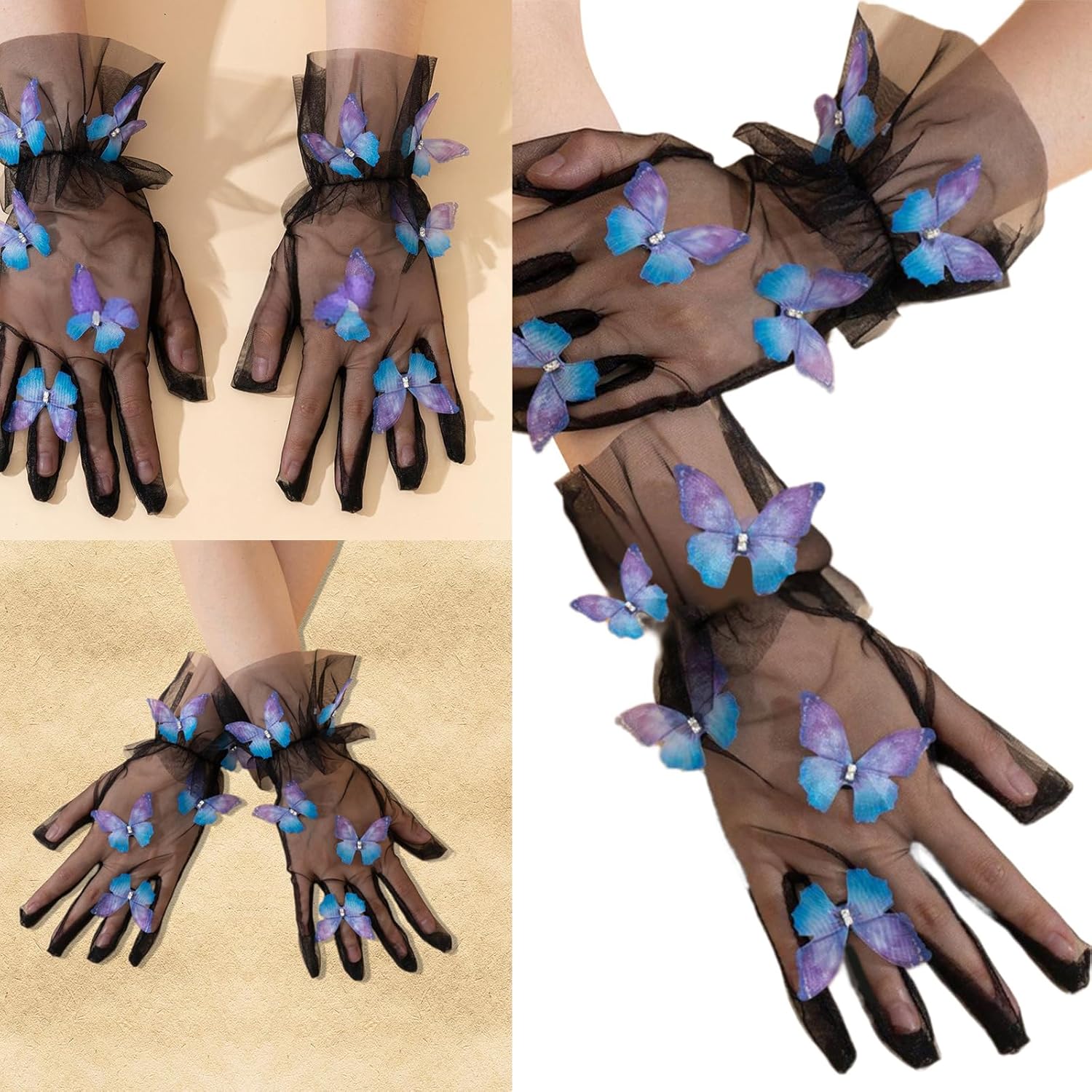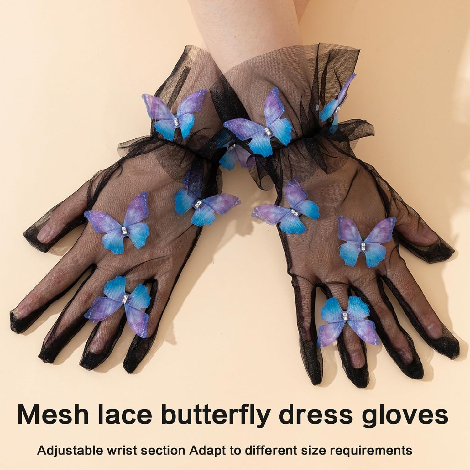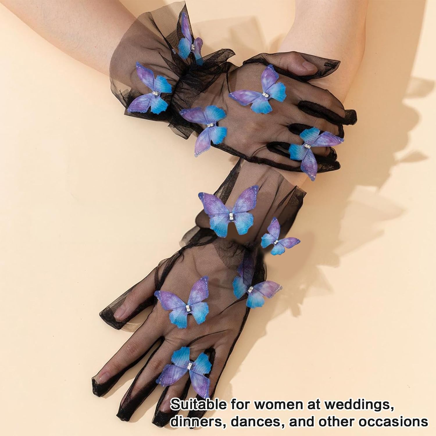 I guanti sono costituiti da un componente comodo e morbido, adatto a varie forma mano Meshi buona qualità Lacci e squisiti decorazioni a farfalla aggiungono eleganza e atmosfere romantiche Adatto per varie occasioni come matrimoni, cene, balli e feste, aggiungendo un punto culminante all'aspetto generale Adatto alle donne in matrimonio, cena e occasione danza, perseguendo elegance Sezione polso regolabile per soddisfare requisiti dimensioni