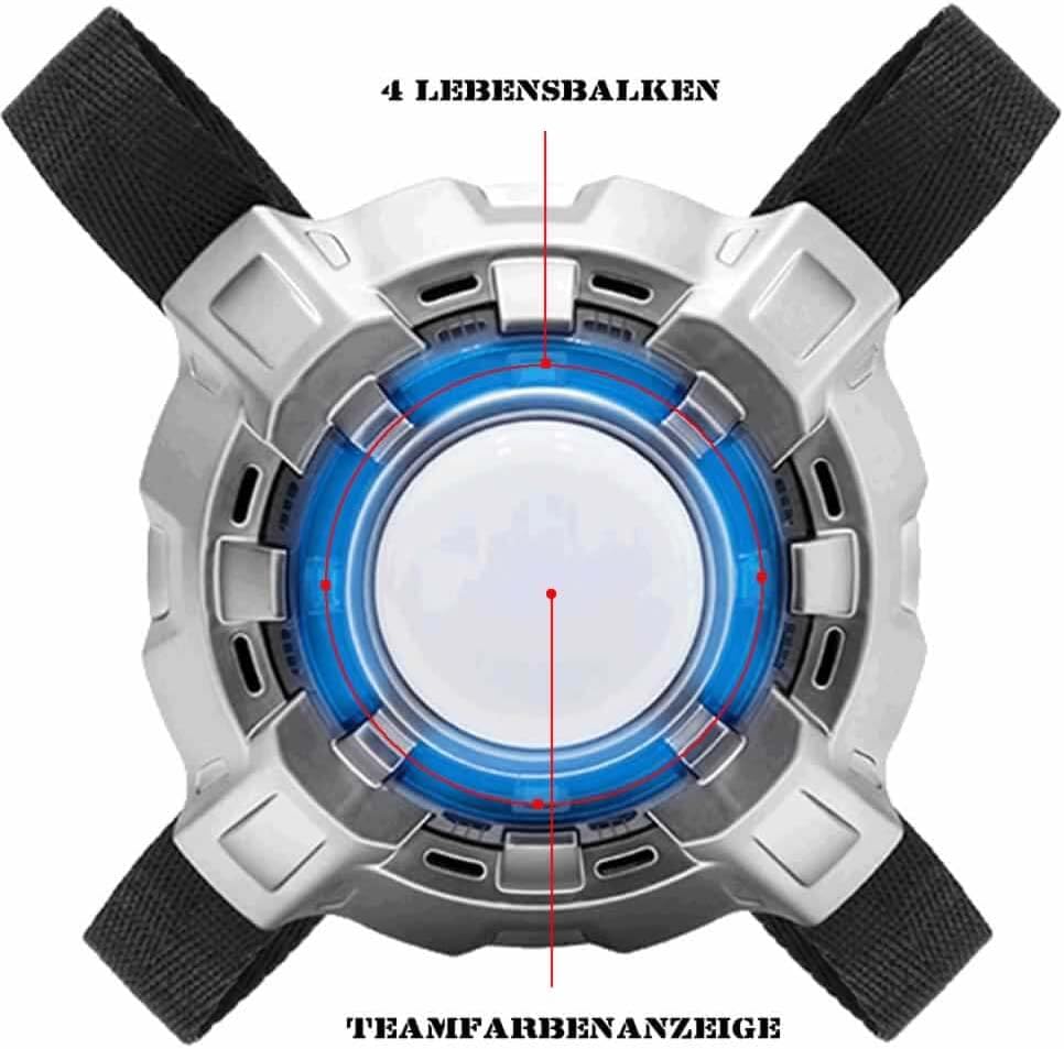 Gilet attivo da battaglia leggera: il giubbotto da battaglia leggera è un'aggiunta popolare al set di giochi laser Light Battle. Il giubbotto ha quattro barre, ciascuna barra rappresenta 3 vite. Quando il giubbotto viene colpito, la sua illuminazione lampeggerà per alcuni secondi e vibrerà per alcuni secondi. Quando tutte le vite del giubbotto saranno terminate, continuerà a lampeggiare per alcuni minuti. Cosa ottieni: 2 giubbotti attivi da battaglia leggera. Batterie e dimensioni: il gilet attivo da battaglia laser leggero funziona con 3 batterie alcaline AAA (non incluse). Il gilet ha dimensioni: 11x11x11x5 cm. Sicurezza e istruzioni - Le armi Light Battle Active Laser Tag soddisfano i requisiti delle direttive UE applicabili (marcatura CE). Light Battle Active utilizza la tecnologia a infrarossi innocua e invisibile, simile al telecomando della TV. Consegniamo i nostri prodotti con istruzioni in tedesco, inglese, francese e olandese. Garanzia: offriamo una garanzia di rimborso di 30 giorni alle persone che non utilizzano i nostri prodotti a fini commerciali.