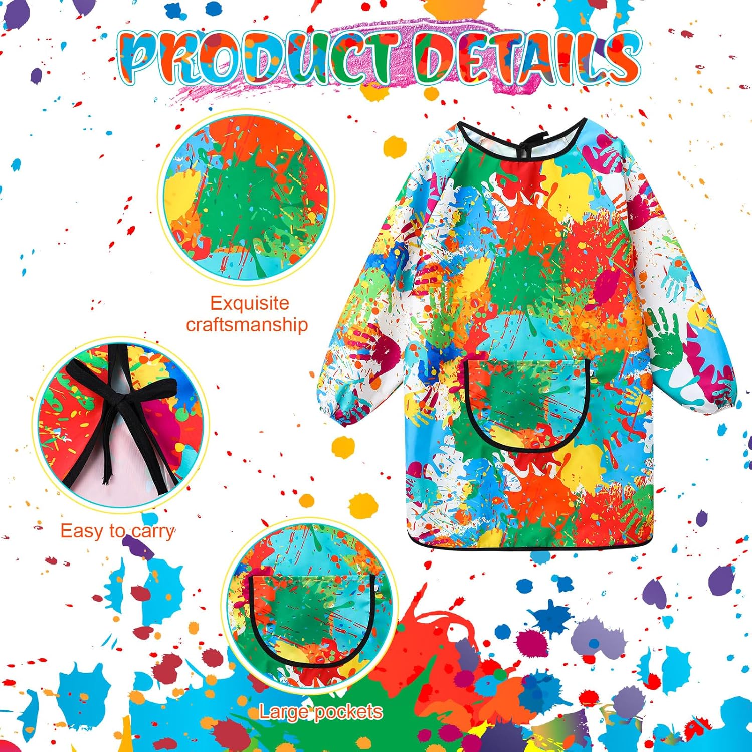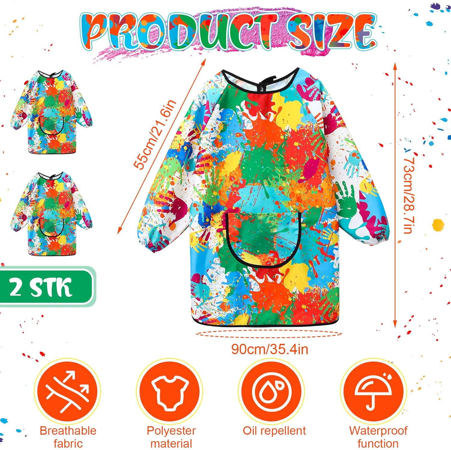 Caratteristiche: 1. I grembiuli per bambini sono privi di BPA, sicuri, atossici, durevoli e facili da pulire. 2. Uno stile di graffiti unico che simboleggia l'immaginazione senza limiti dei bambini. Indossa - il e il tuo bambino sarà unico. 3. Tessuto impermeabile che protegge efficacemente contro schizzi di grasso, sporco e vernice. 4. Adatto a vari scenari come cucina, pittura, pasticceria o feste. Specifiche del prodotto: Materiale: poliestere. Colore: Multicolore. Dimensioni: come mostrato nell'immagine. La confezione include: 2 x grembiule da pittura per bambini. Nota: 1. A causa della misurazione manuale, vi è una tolleranza nelle dimensioni del prodotto. 2. Il colore del prodotto può essere leggermente diverso dall'immagine a causa delle diverse impostazioni di luminosità e dello schermo.
