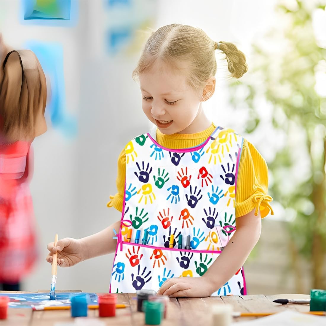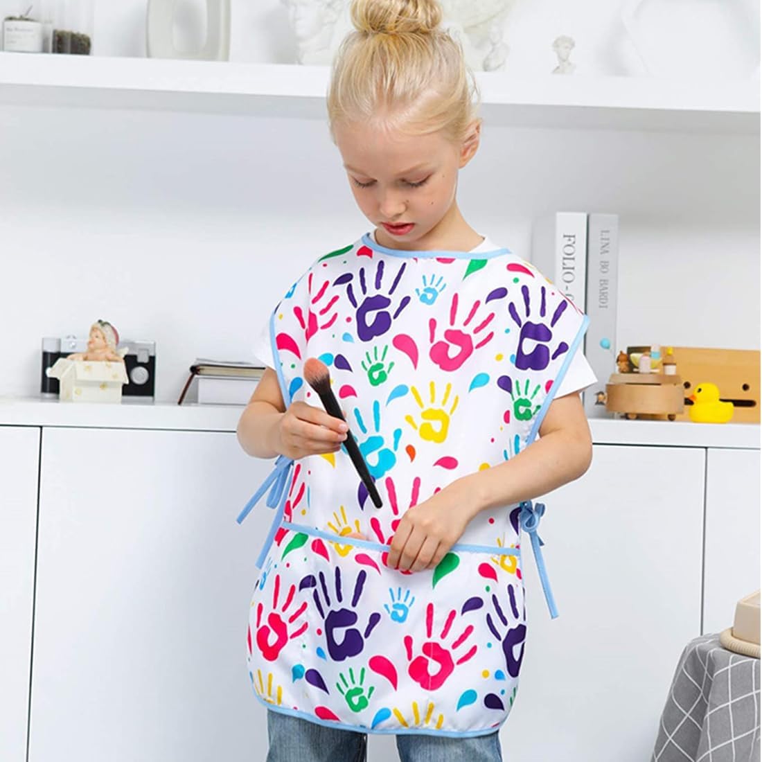 Design allegro in confezione doppia: Questo set include 2 grembiuli per bambini con un motivo colorato e colori brillanti, ideale per stimolare la creatività durante la pittura e i lavori manuali. Alta qualità e facile da pulire: Realizzati in poliestere resistente all'acqua liscio, questi grembiuli proteggono efficacemente i vestiti e sono comodi da indossare. Basta pulirli con acqua e sapone o lavarli in lavatrice. Protezione pratica con tasche: Ogni grembiule artistico per bambini offre una protezione ottimale contro macchie di colore e sporco. Tre ampie tasche frontali tengono a portata di mano colori, pennelli e altri strumenti per il fai-da-te. Vestibilità ottimale per bambini: Con dimensioni di circa 56 x 48 cm (22 x 19 pollici) e lacci laterali, questi grembiuli smanicati si adattano ai bambini dai 2 ai 7 anni, permettendo piena libertà di movimento. Set versatile da 2 pezzi: Riceverete due grembiuli, perfetti per fratelli, amici o per alternarli. Ideali non solo per la pittura, ma anche per attività manuali, avventure in cucina e giochi puliti sia dentro che fuori casa.
