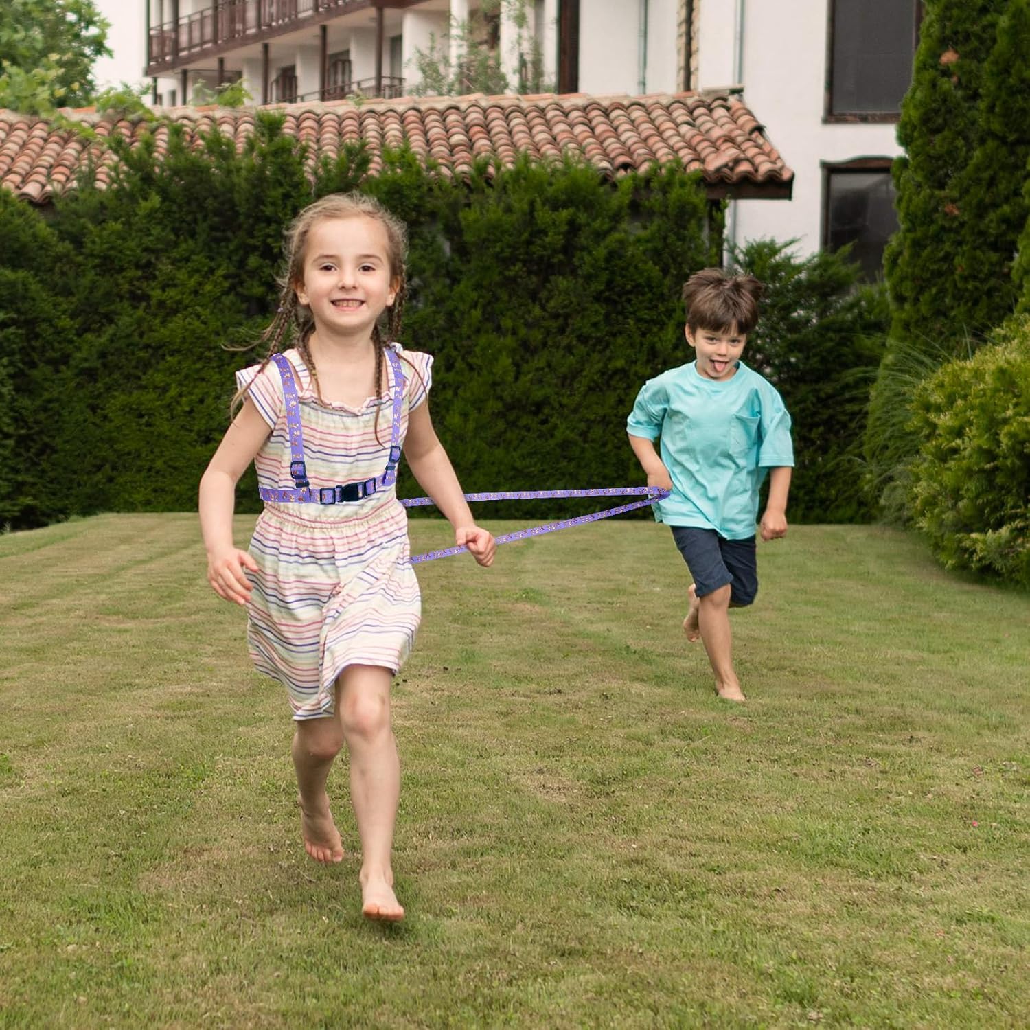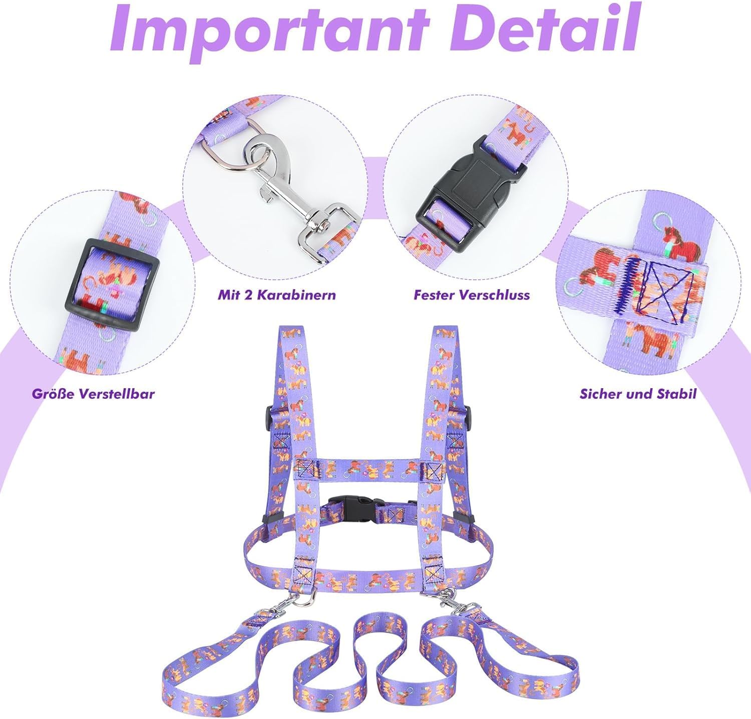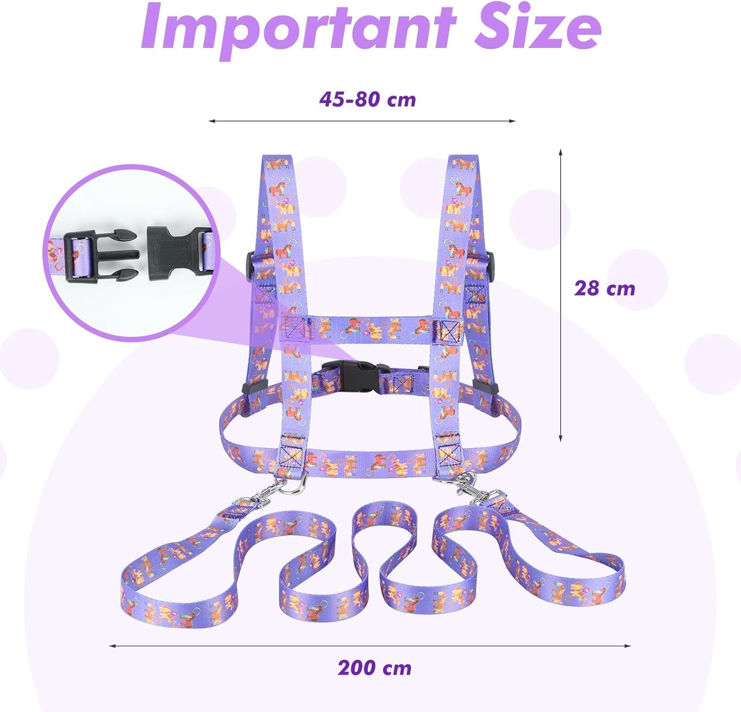 Materiale durevole: cinghie per bambini in poliestere, la superficie è liscia, non danneggia la pelle del bambino. Le cuciture sono molto ben lavorate, non si sfilacciano e quindi sono stabili. È possibile utilizzarlo per un lungo periodo di tempo. Dimensioni adatte: cavallo Longierleine lunghezza spalle 28 cm, circonferenza petto 45-80 cm, lunghezza cintura posteriore 2 m. Il guinzaglio è così lungo che i bambini hanno abbastanza spazio senza sbattersi l'uno sull'altro. Regolabile: il guinzaglio per il gioco per bambini è regolabile in circonferenza, si siede perfettamente sopra una maglietta, ma anche in inverno sopra una giacca invernale. I vostri bambini lo ameranno molto. Capacità di esercizio: allena la capacità sociale e la creatività dei bambini. Con i guinzagli per giocare per i bambini, i bambini possono giocare all'aria aperta, perfezionare le linee muscolari e renderli più in forma e più forti. Ampia gamma di applicazioni: i guinzagli per cavalli incoraggiano i bambini a giocare la muscolatura e la mobilità. Per cavalli, sci, giochi, giochi di ruolo, giochi di equitazione.