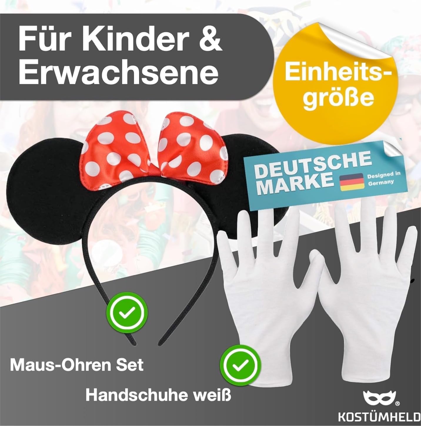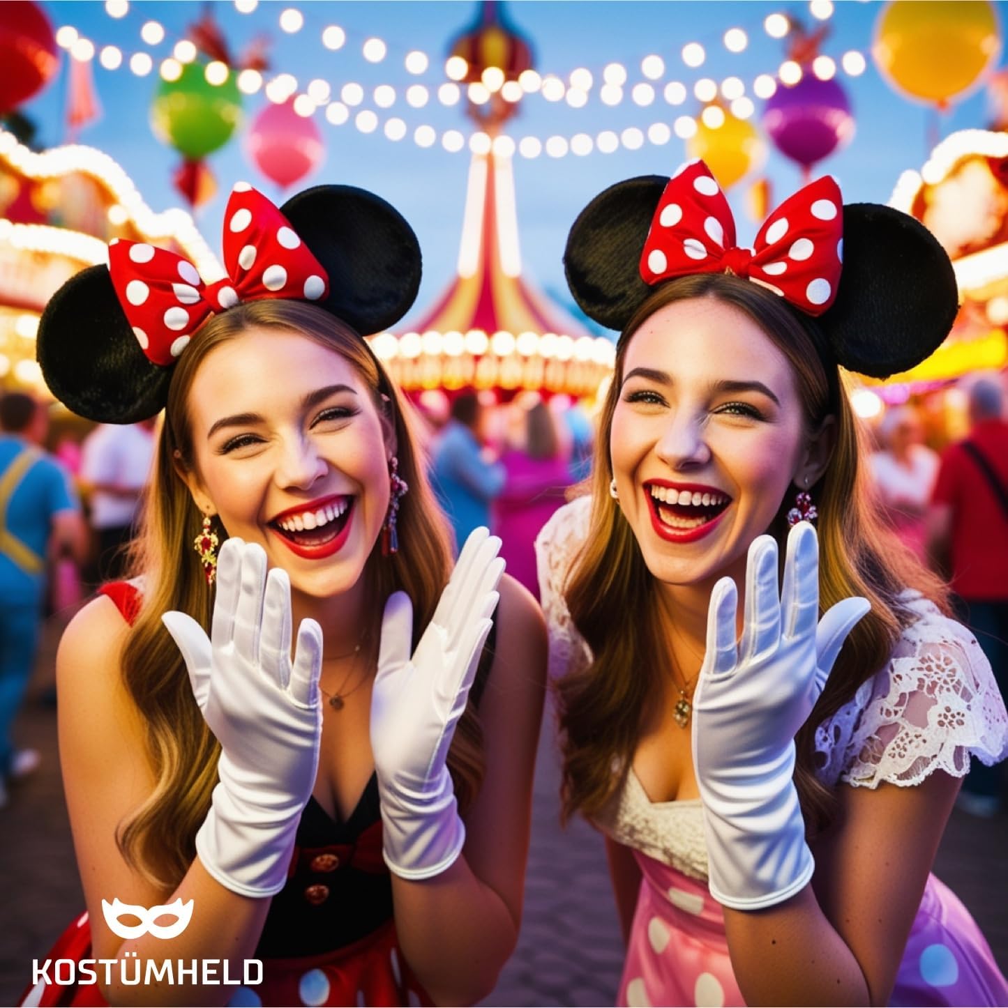 Set di accessori per costumi di alta qualità con guanti e fascia per la testa per adulti Un paio con guanti bianchi realizzati in morbido velluto - misto cotone Un cappello con le orecchie da topo con i classici puntini rossi e bianchi Possiamo consigliare l'abbinamento: tutù, gonna tutu, calzini al ginocchio per il costume perfetto Idea costume adatto per Topolino, Mary Poppons, Mini Mouse, Minnie Mouse, Topolino per Carnevale per donna