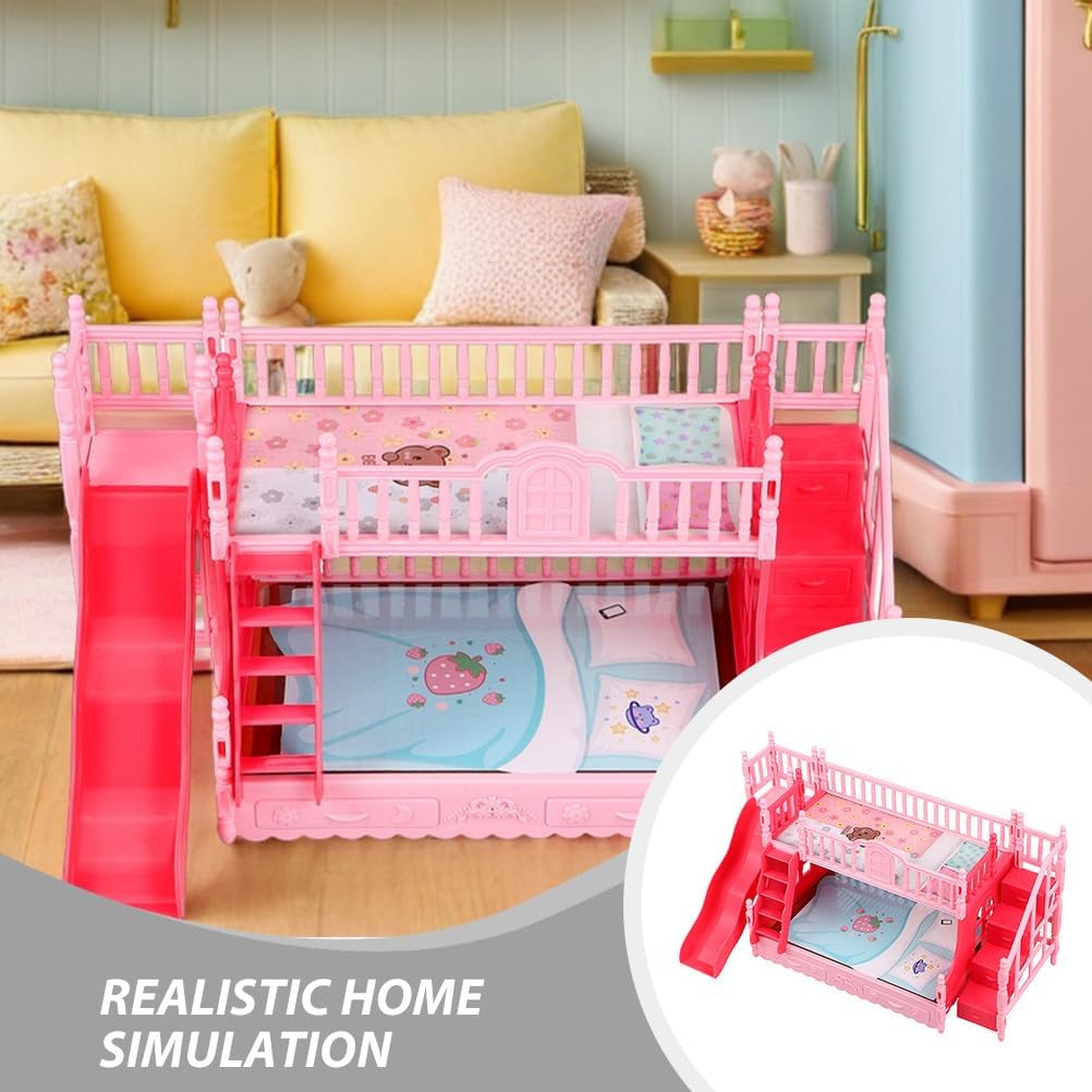 Migliora le abilità di vita: i letti a castello in miniatura della casa delle bambole consentono ai bambini di esercitarsi a organizzare e decorare, aiutandoli a sviluppare abilità di vita essenziali in modo divertente e coinvolgente Compatto e versatile: questo piccolo set di mobili è adatto a piccoli spazi, il che lo rende una scelta ideale per i mobili della camera da letto della casa delle bambole o come lettino per bambini indipendente Resistente e adatto ai bambini: realizzato con materiali sicuri e durevoli, questo letto in miniatura garantisce l'uso e allo stesso tempo è delicato sulle manine dei più piccoli durante il gioco Incoraggia il gioco fantasioso: il set di mobili da camera da letto in miniatura ispira i bambini a creare storie e scenari fantasiosi, arricchendo le loro esperienze di gioco di finzione con infinite possibilità Compatibile con i giocattoli più diffusi: questo letto a castello per casa delle bambole è progettato per adattarsi a bambole da 17 cm e altri accessori per case in miniatura, garantendo compatibilità con un'ampia di marche di bambole