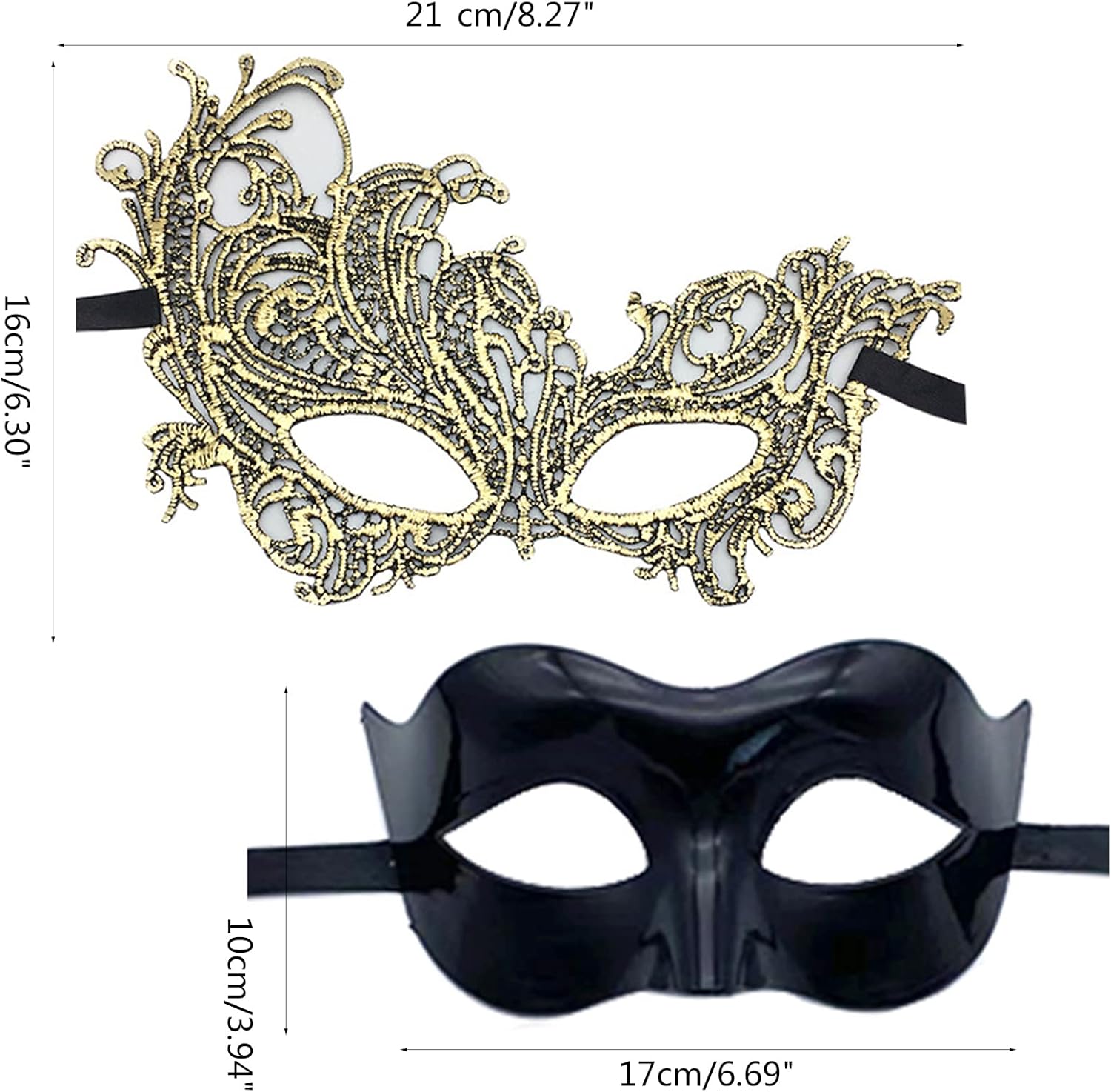 2 mascherine per Halloween, da donna, uomo, mezza faccia, sera, ballo, pizzo, per Mardi Gras