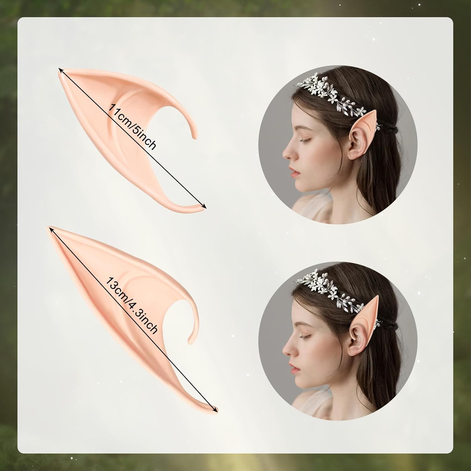 Elementi essenziali per la festa: indossa le nostre orecchie da elfo, sia che tu stia andando a una festa o esca a fare foto con gli amici, le più autentiche orecchie da elfo fatato, aumenta il tuo fascino e renditi più unico tra la folla! Set di orecchie da elfo: riceverai 2 paia di orecchie da fata di diverse lunghezze. Puoi vestirti da fata, elfo, fantasma, elfo, alieno, zombie, vampiro, mostro, demone e altro ancora. Sicuro e confortevole: le nostre orecchie elfo sono realizzate in lattice inodore e non tossico, resistente alle alte temperature, morbido e confortevole, può essere piegato e impastato, non si deformerà e può essere riutilizzato. Facile da usare: puoi appenderlo direttamente alle orecchie, facile da indossare e adatto alle orecchie della maggior parte delle persone. Se ti sembra un po' allentato, applica della colla o del nastro biadesivo alla base dell'orecchio per renderlo più forte. Applicazione: le nostre orecchie da elfo in lattice sono perfette per cosplay, Halloween, Natale, carnevale, feste in maschera e feste in maschera.