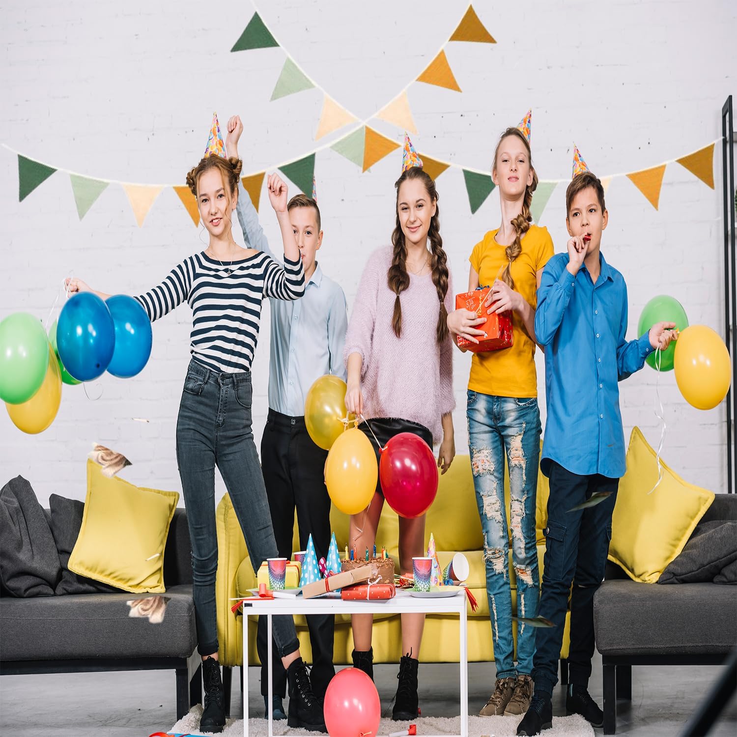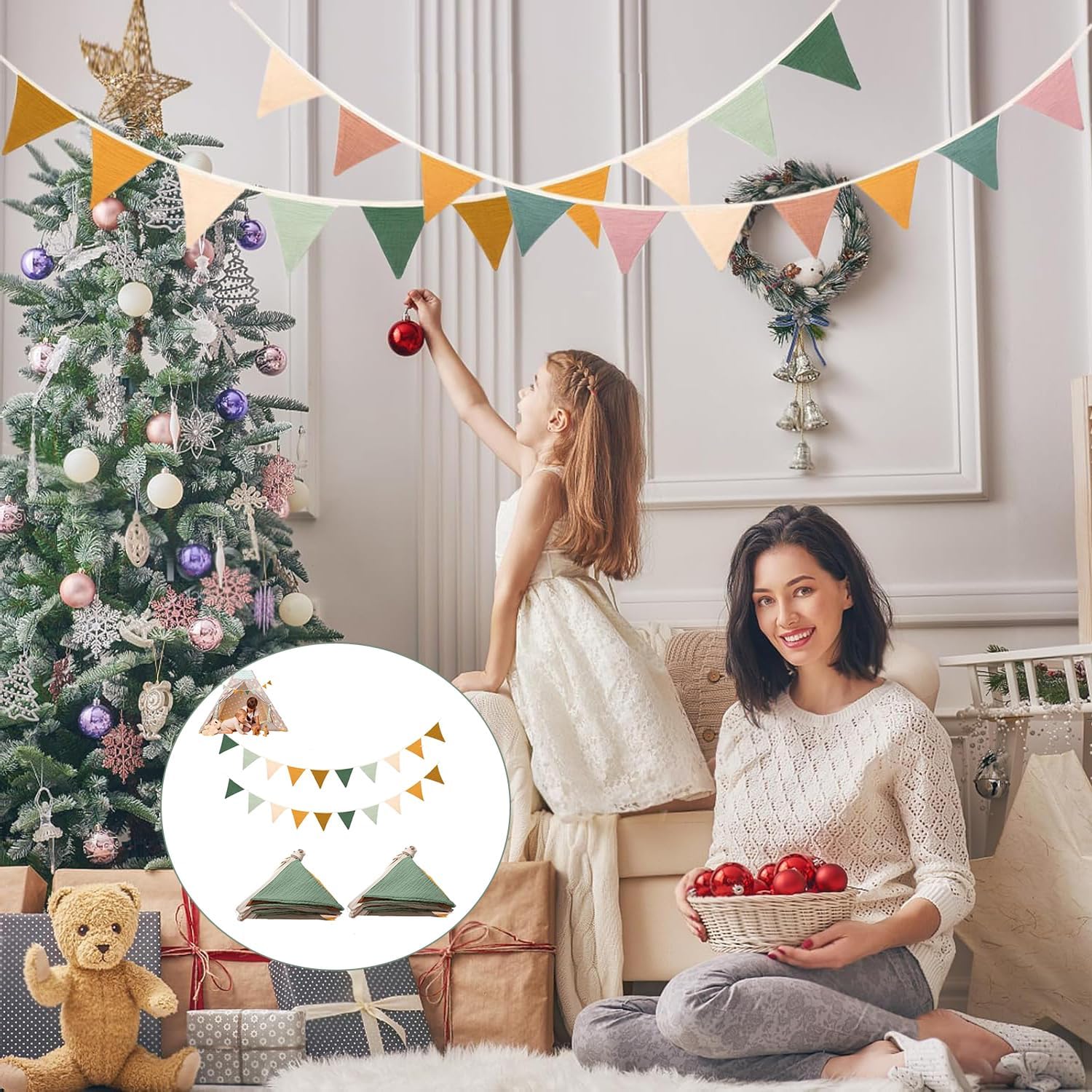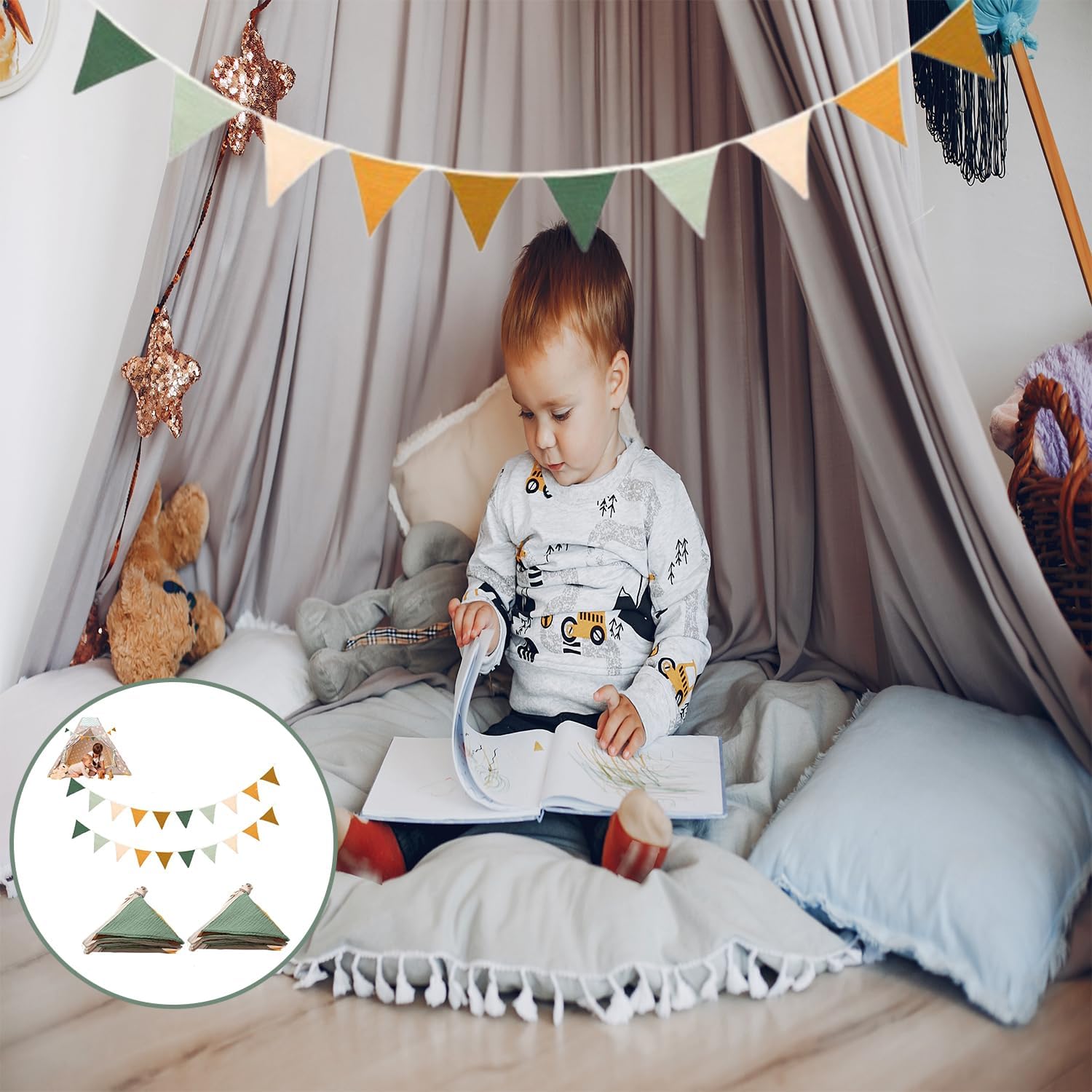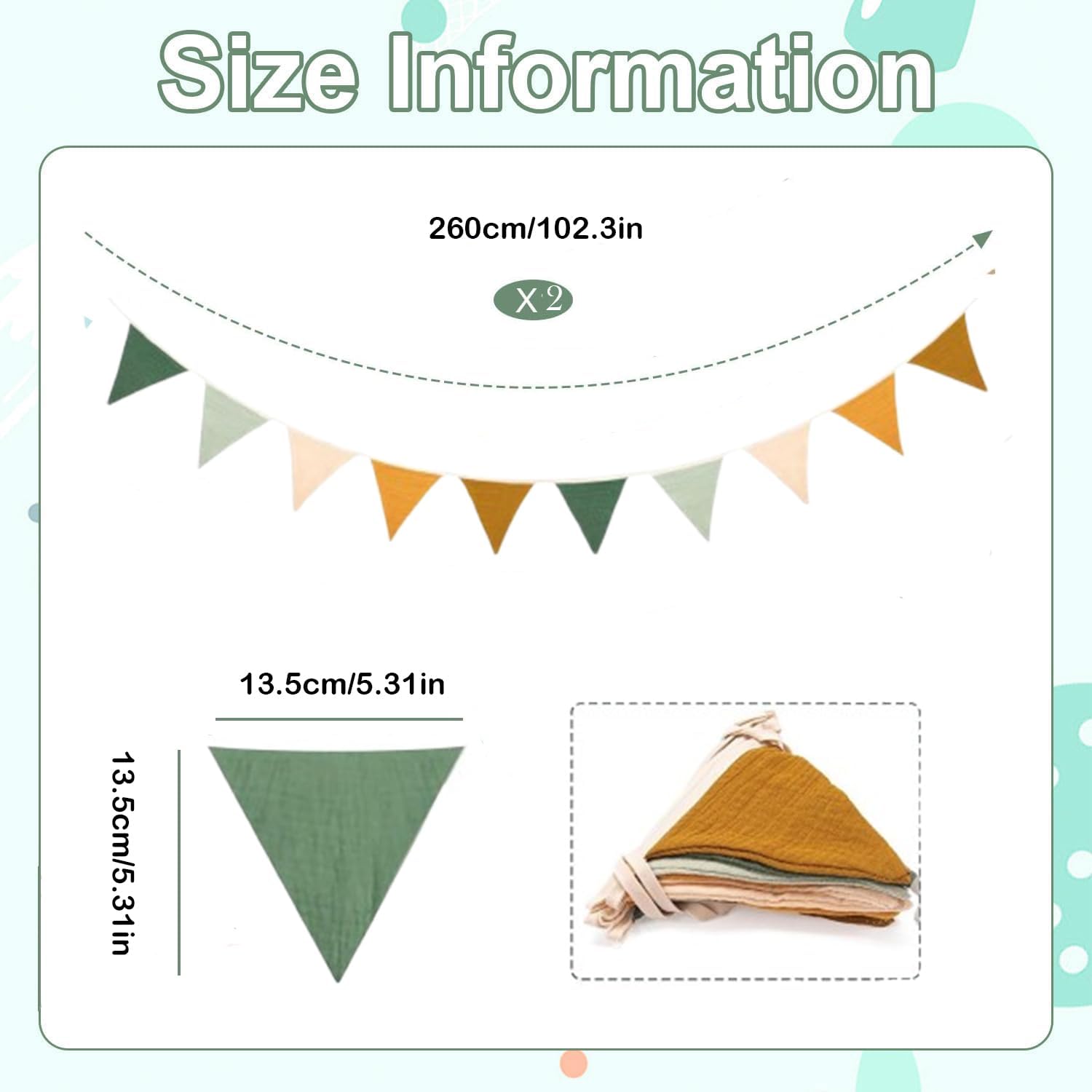 Sensazione Di Cotone Di Alta Qualità: Bandierine triangolari in cotone di alta qualità, morbide, traspiranti e inodori, con trama in lino confortevole sulla pelle. Lavabili in acqua, non necessitano di stiratura, resistenti e facili da usare Si Appendono Senza Spostarsi: Ogni bandierina triangolare misura 2,8 metri e ha 10 facce, 2 bandierine coprono un'ampia superficie. Design con fissaggio superiore, basta annodare l'estremità della corda per installarle, rinnovano lo spazio in 3 minuti Vivace e Accattivante: Bandierine triangolari dai colori vivaci, che illuminano la cameretta dei bambini, infondono un'atmosfera naturale alla festa e attirano facilmente l'attenzione dei bambini Dettagli Accurati: Bordi delle bandierine triangolari cuciti con doppia cucitura senza fili, corda di sospensione resistente. Bandierine leggere e svolazzanti, decorazioni raffinate e sicure, esteticamente gradevoli e di alta qualità Adatte a Molteplici Scenari: Le bandierine triangolari sono adatte a feste di compleanno, camerette dei bambini, giardini, ecc. Leggere e portatili, possono essere abbinate ad altre decorazioni per arricchire gli ambienti e conferire un tocco di solennità alle celebrazioni quotidiane