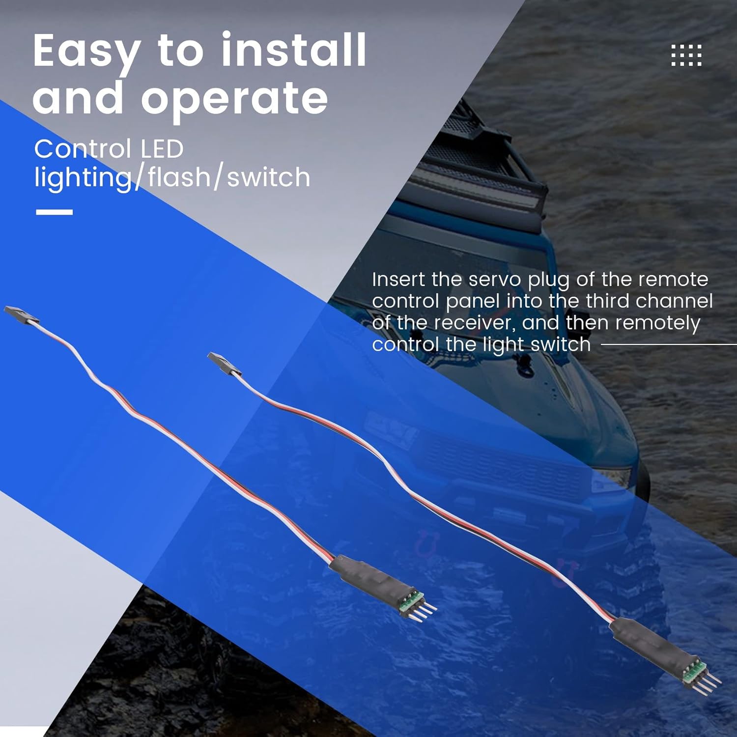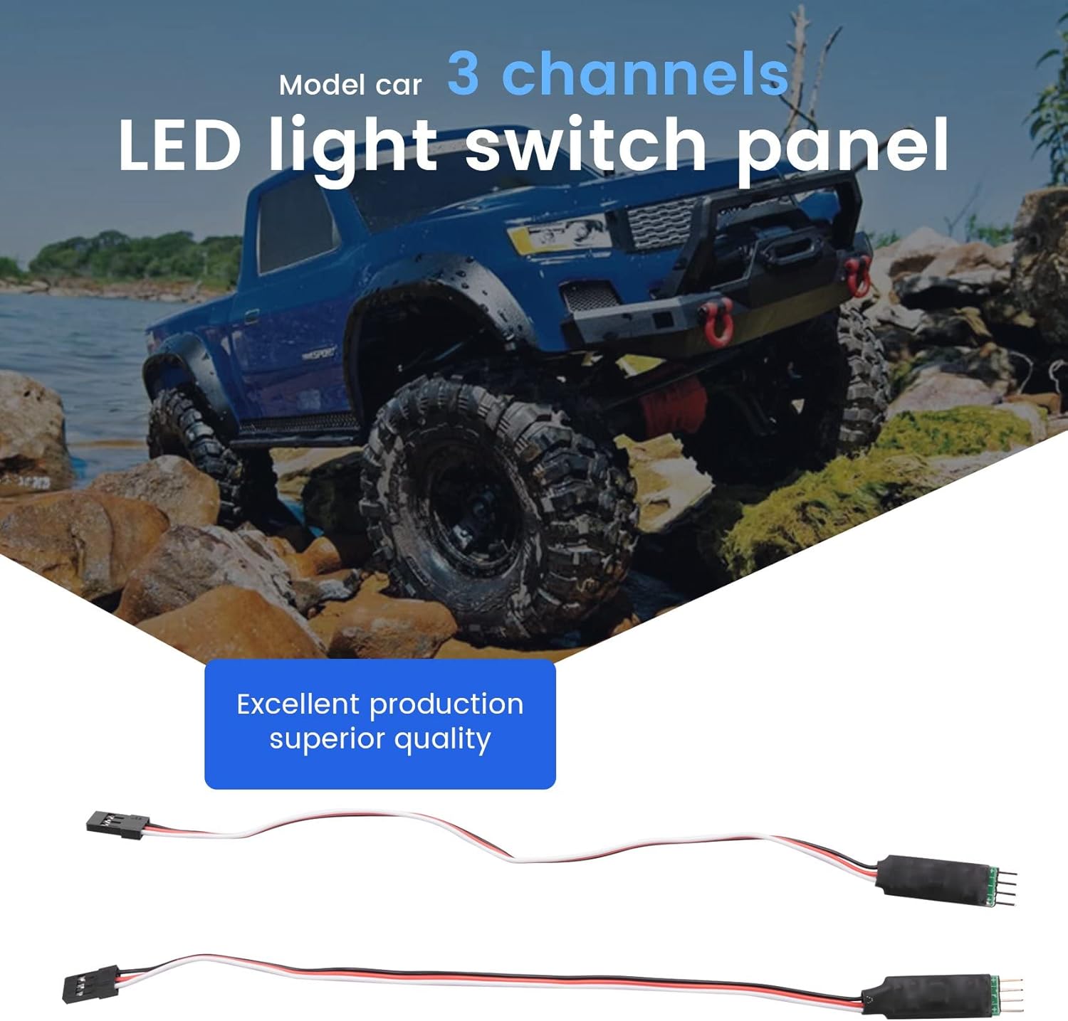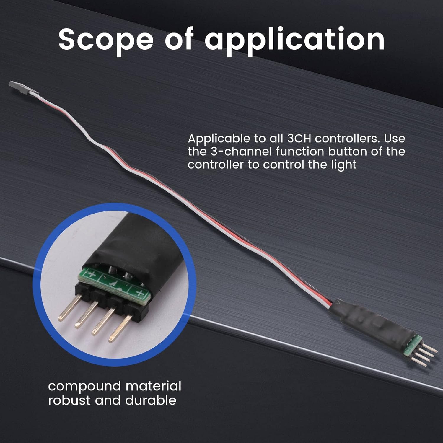 quindi controllare a distanza l'interruttore di illuminazione Pannello di controllo per illuminazione a LED a 3 canali per auto modello Inserire la presa servo della scheda di controllo remoto nel terzo canale del ricevitore, Installazione e funzionamento facili da usare. Controllo illuminazione a LED / flash / interruttore Adatto a tutti i controller 3CH, utilizzando i pulsanti funzione a 3 canali del controller per controllare la luce