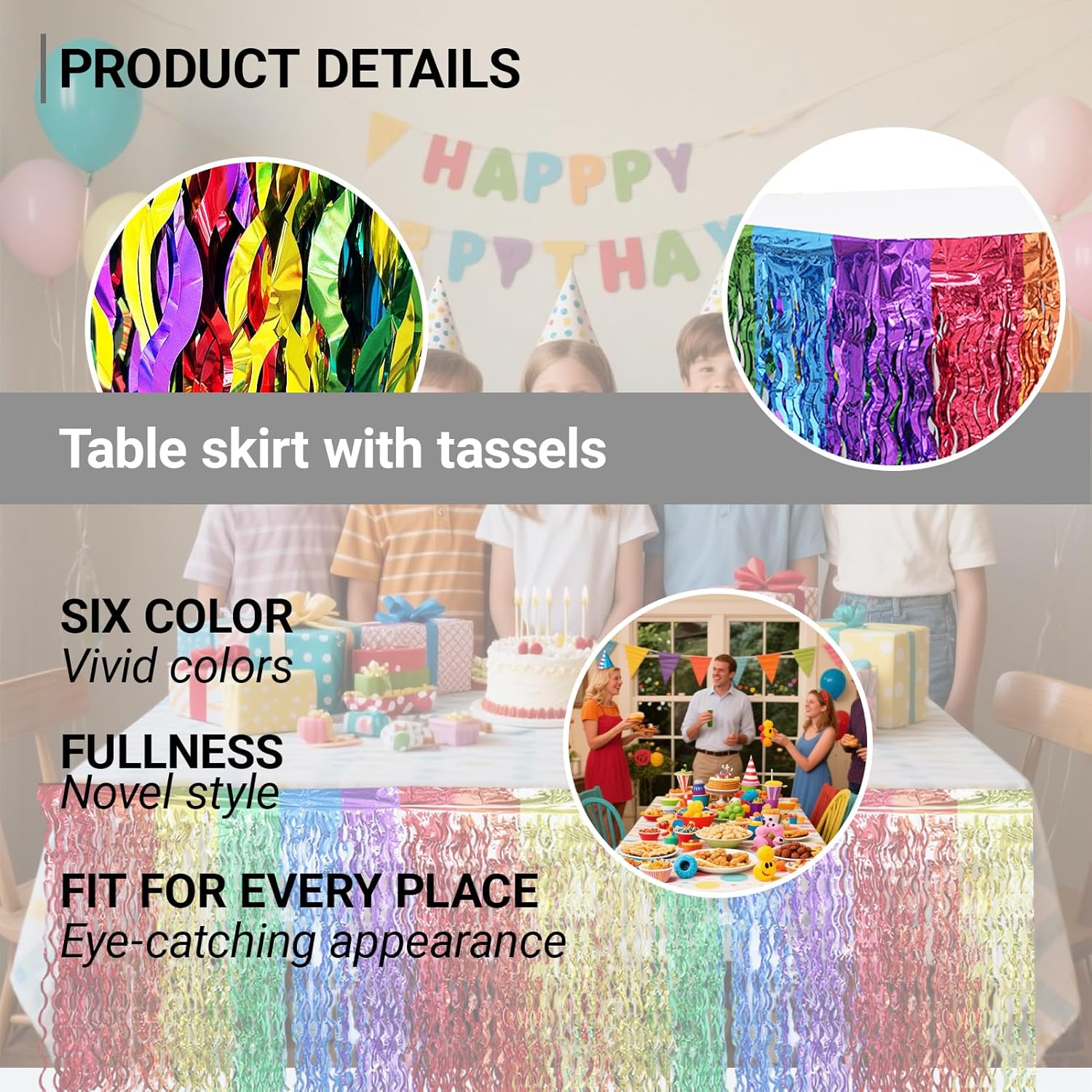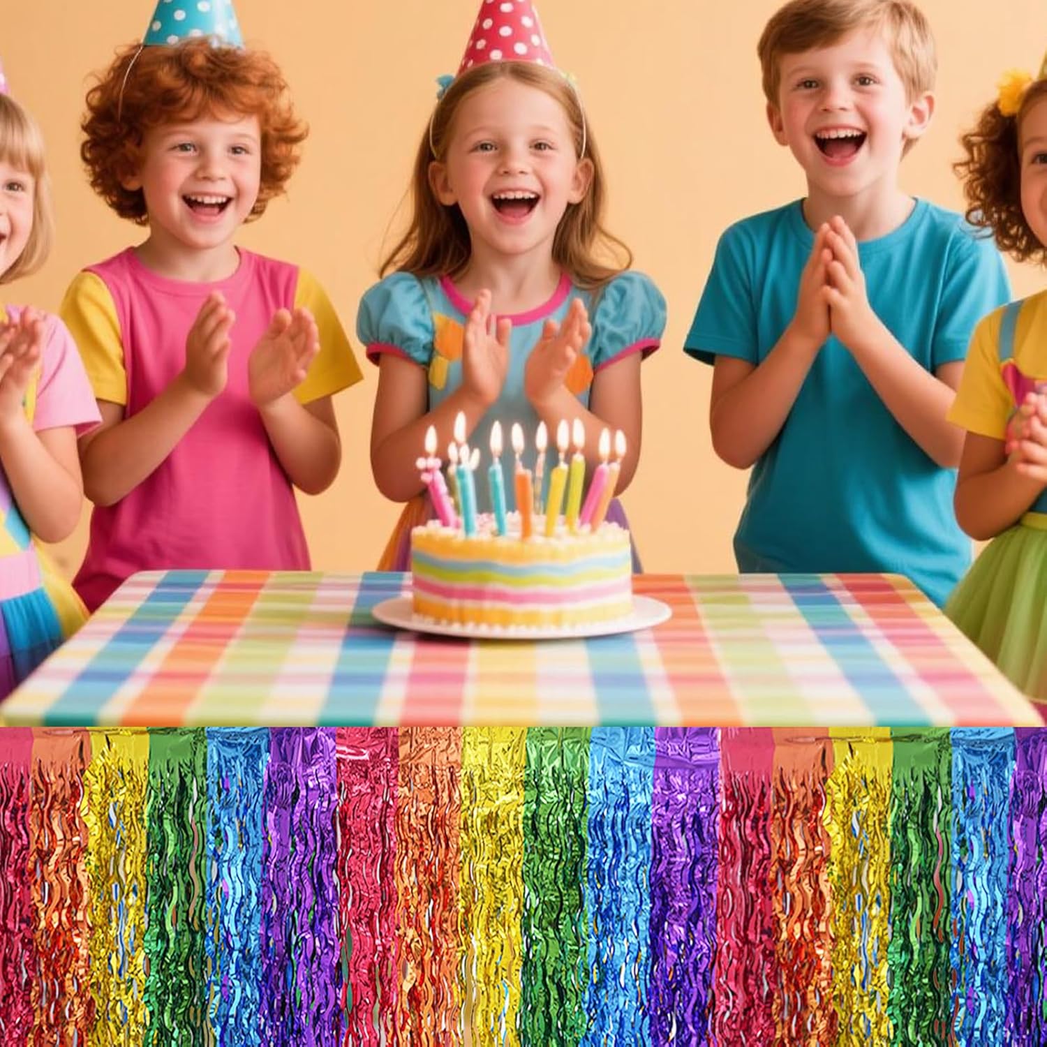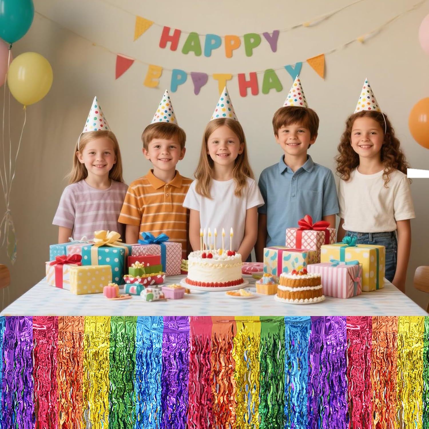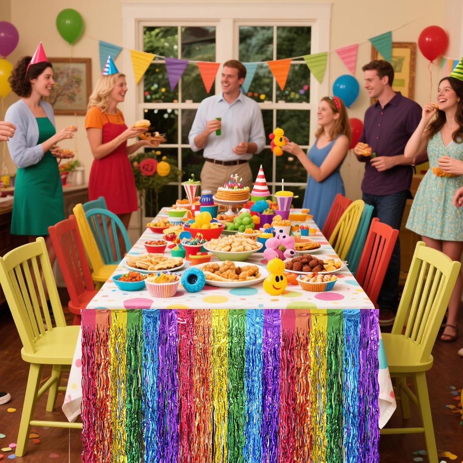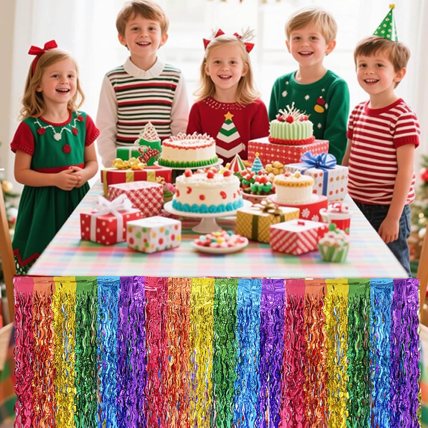 Set completo per feste: riceverai due decorazioni da tavola di alta qualità da 75 x 275 cm. Questa confezione di valore consente un drappeggio versatile come tovaglia di compleanno a copertura completa o decorazioni per feste arcobaleno a strati, eliminando gli spazi vuoti mantenendo quell'ambito luccichio metallico Uso flessibile: la tovaglia con frange in lamina è dotata di nastro autoadesivo, la gonna da tavolo in lamina arcobaleno consente di appenderla o attaccarla facilmente sul bordo del tavolo per creare istantaneamente un'atmosfera da sogno per le feste. Non devi preoccuparti di danneggiare i tuoi mobili Design dinamico a onde: a differenza delle gonne da tavolo piatte, la nostra tovaglia arcobaleno crea un movimento affascinante, perfetta per sfondi per cabine fotografiche o tavoli da dessert. Le fasce graduate color arcobaleno consentono uno stile creativo: allineano le onde uniformemente per il fascino classico o gli strati scaglionati per composizioni dimensionali delle tovaglie per feste Installazione senza problemi: la discreta striscia adesiva lungo il bordo superiore fissa la gonna istantaneamente a qualsiasi superficie, senza clip o danni ai mobili. Tagliare con le forbici domestiche per personalizzare la lunghezza come gonne da tavolo arcobaleno per bar alti o tea party per bambini. La superficie lavabile resiste al trasferimento di glitter e alle piccole fuoriuscite Versatile e essenziale per feste: dalle feste di sesso agli eventi Pride, queste decorazioni da tavola arcobaleno multiuso trasformano i luoghi senza sforzo. Strato sotto la torta stand come runner da tavolo di compleanno, drappeggio su baldacchini come sfondo arcobaleno per feste o riutilizzare come oggetti di scena da parete per foto Mardi Gras - compatibile con tutti i temi di arredamento standard per eventi