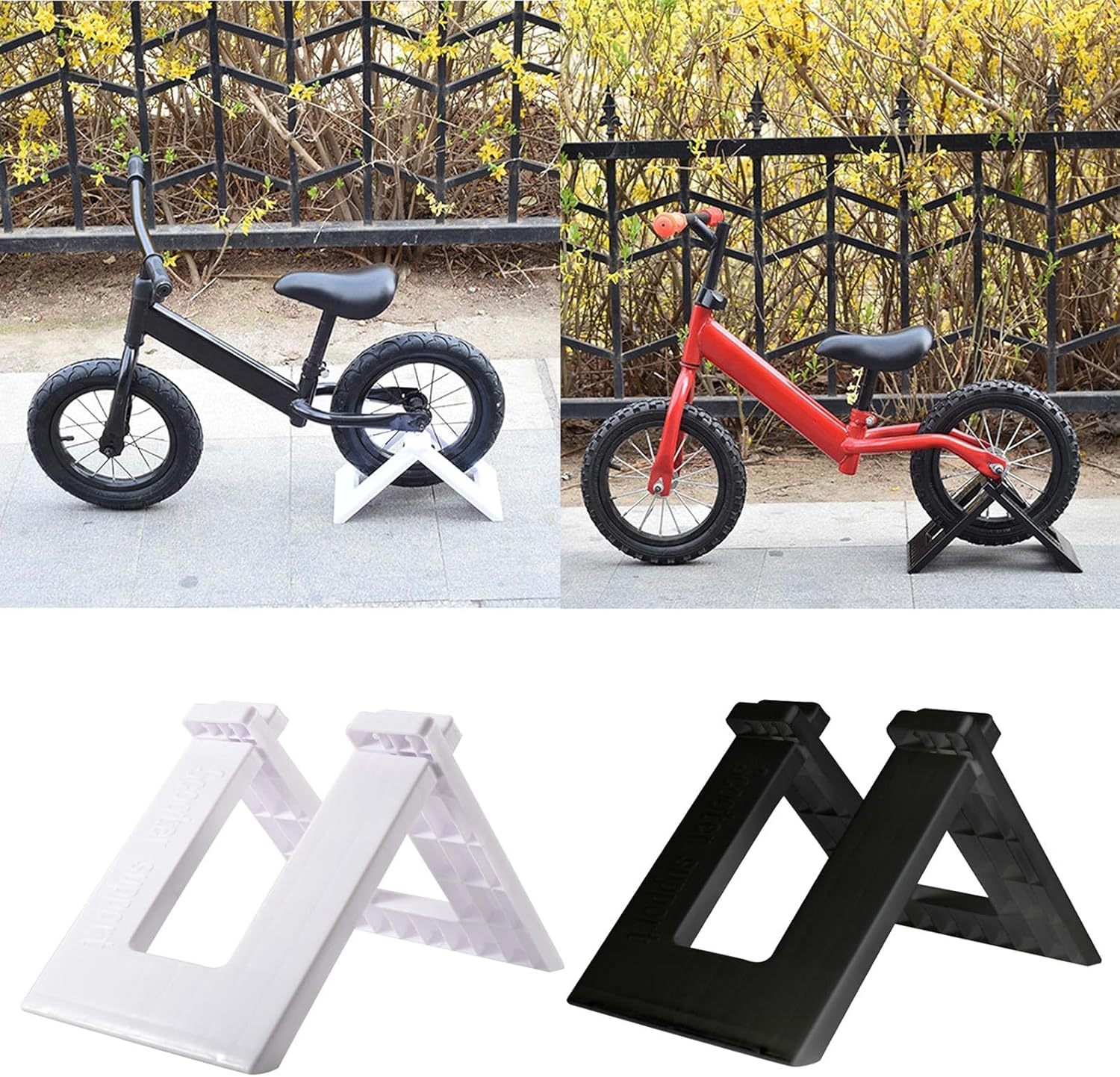 Mantieni organizzata e esposta la tua bici o scooter per bambini con questo comodo e leggero parcheggio nelle case, a scuola o all'asilo, questo supporto offre ai bambini un posto sicuro per i parchi e presenta le loro bici da bilancio o scooter Questo supporto è realizzato in PVC e non solo durevole, ma anche facile da installare senza bisogno di attrezzi. I bordi lisci garantiscono la sicurezza per le mani piccole Inoltre, questo stand o in mostre può essere utilizzato per mostrare una varietà di travi e scooter per bambini che attirano l'attenzione di clienti o visitatori Questo supporto è appositamente progettato per bambini con 10 pollici e 12 pollici Balance Bikes e scooter. Questo supporto è perfetto per i ciclisti