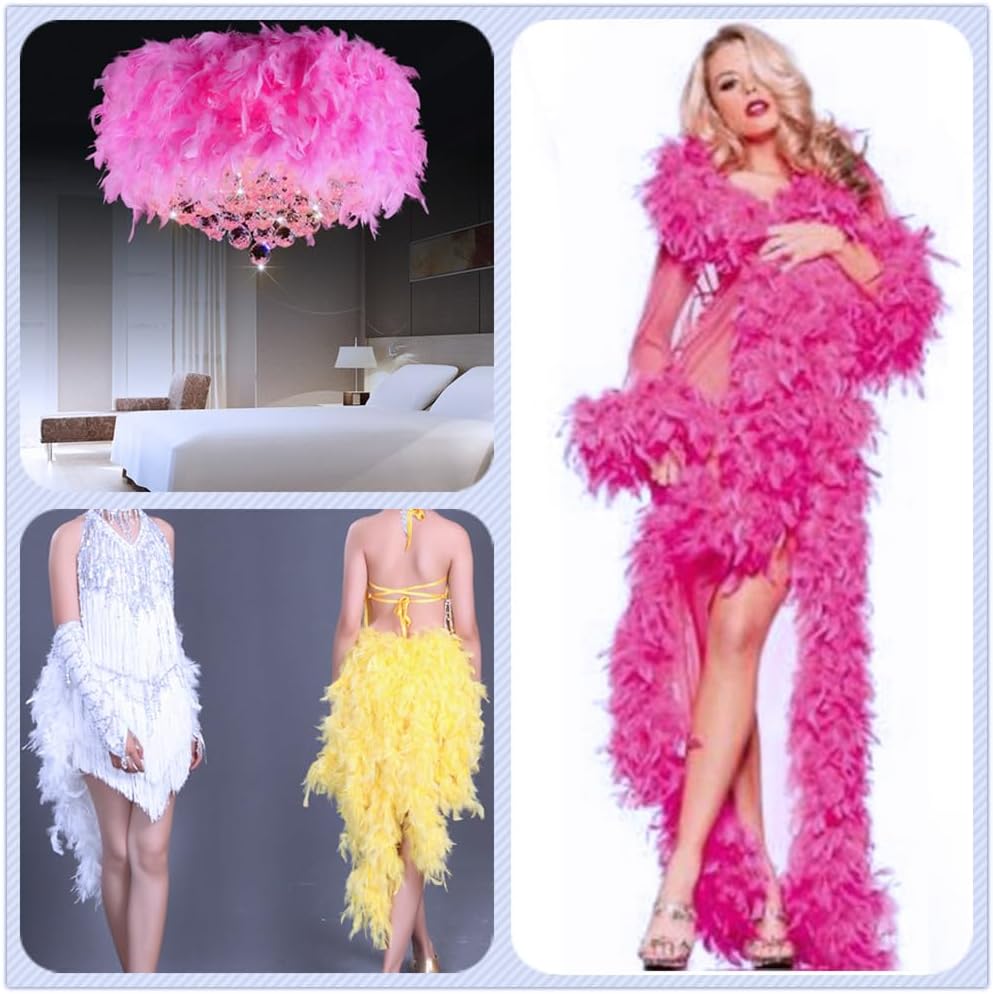 Materiale del prodotto: la nostra sciarpa con piume di tacchino naturale con colori vivaci, è elegante ed elegante e non passa inosservata. È l'accessorio perfetto per aggiungere divertimento al tuo look e può aggiungere un tocco di fascino ed eleganza a qualsiasi outfit. Dimensioni del prodotto: la sciarpa è lunga circa 2 m ed è stata sterilizzata professionalmente, colorata in modo ecologico, sterilizzata e asciugata ad alta temperatura. È morbido e leggero, ha una buona caduta, è comodo da indossare ed è perfetto da indossare intorno al collo o drappeggiato sulle spalle. Scelta ideale: la sciarpa è versatile e una scelta ideale per costumi da showgirl e un bel accessorio per tutte le eroine. Abbinate la sciarpa di piume con i vostri gioielli, vestiti e trucco per completare perfettamente il vostro look da festa! Uso del prodotto: questa sciarpa colorata con piume è perfetta per il fai da te e può essere utilizzata per decorazioni natalizie, decorazioni per la casa, decorazioni per matrimoni, giocattoli per gatti, ghirlande di piume, decorazioni per albero di Natale, ecc. Non è solo visivamente accattivante, ma crea anche un'atmosfera calda e festosa. Occasioni applicabili: è un accessorio ideale per spettacoli di danza, occasioni speciali, matrimoni, feste di carnevale, feste di Natale, feste di Capodanno, Halloween, teatro, spettacoli di dressage, ecc. È anche un regalo perfetto per modelli, attori, ballerini o semplicemente per chi ama qualcosa di speciale.