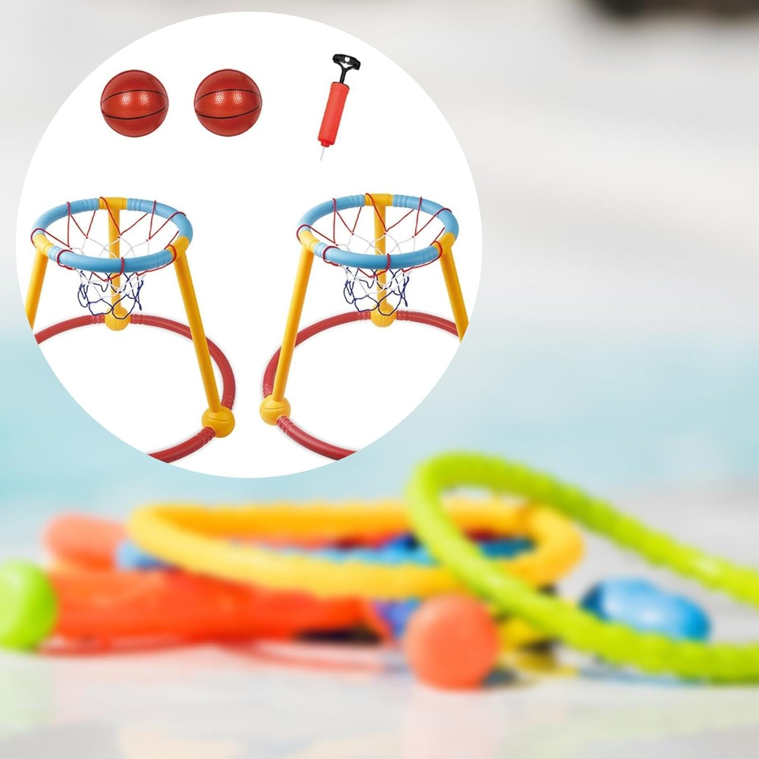 【Giochi estivi】: Utilizza il gioco galleggiante da basket per le feste in piscina estive. Questo set di giochi da piscina è adatto a giardini, . Bambini e famiglie si divertiranno un mondo in piscina. 【Esercizio fisico】: i canestri da basket per bambini non solo aiutano a rinfrescarsi, ma aiutano anche a sviluppare la coordinazione corporea, la flessibilità e le capacità di collaborazione di . La confezione include 2 canestri, palline e 1 pompa. 【Giochi d'acqua】: Divertiti con i palloni da basket in acqua e regalati . Questo set di giocattoli da basket per piscina è un fantastico accessorio estivo. È perfetto per le feste in piscina e un fantastico regalo di compleanno per i bambini che giochi d'acqua. 【Molteplici di giocare】: Canestri da basket per piscina, oltre ai tradizionali giochi di basket, puoi anche organizzare fantasiose gare di gioco e palleggio per un gameplay più divertente 【Divertiti】: Giocattoli galleggianti per piscina, goditi emozionanti partite di basket con bambini e familiari in piscina, godendoti ore di divertimento. Realizzati in affidabile materiale PP, questi canestri da basket sono progettati per resistere ai rigori del tempo. Canestri da basket 45,5x45,5x35,5 cm / 17,91x17,91x13,98 pollici; Canestro da basket 12 cm / 4,72 pollici