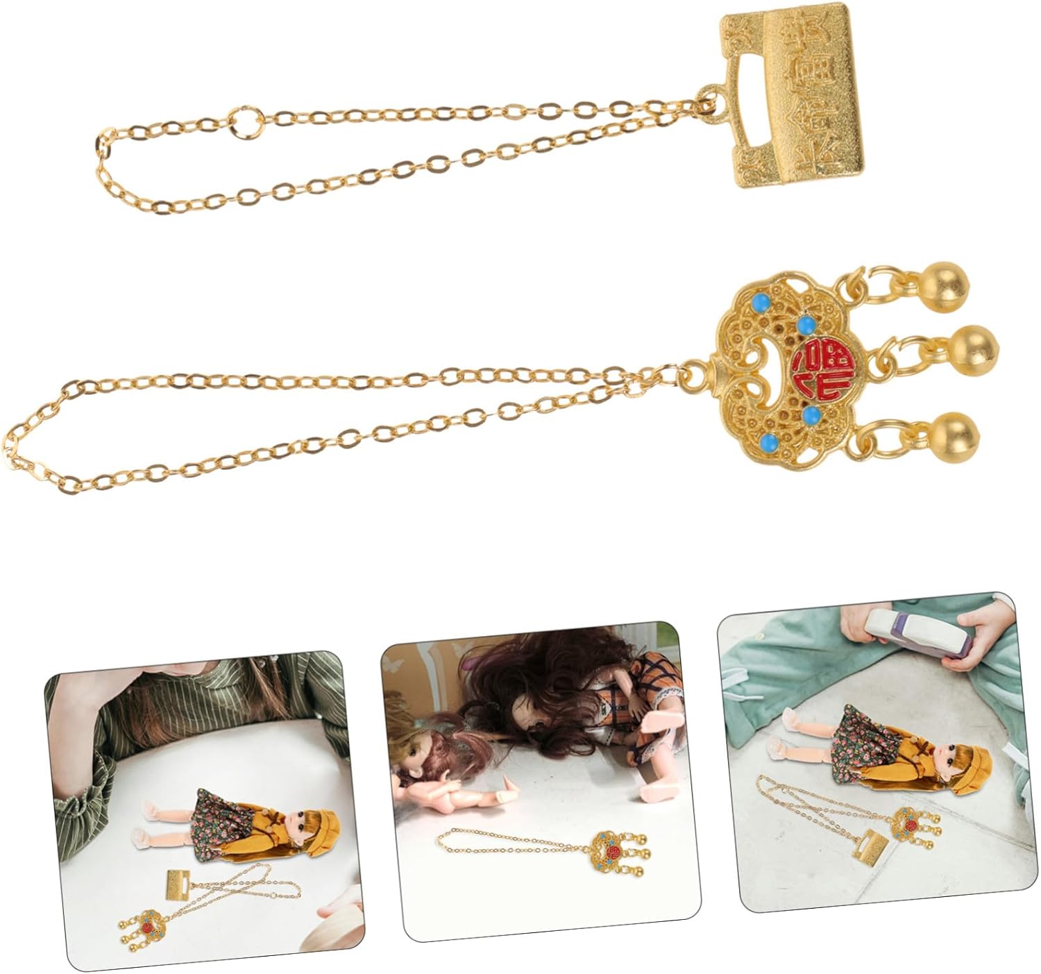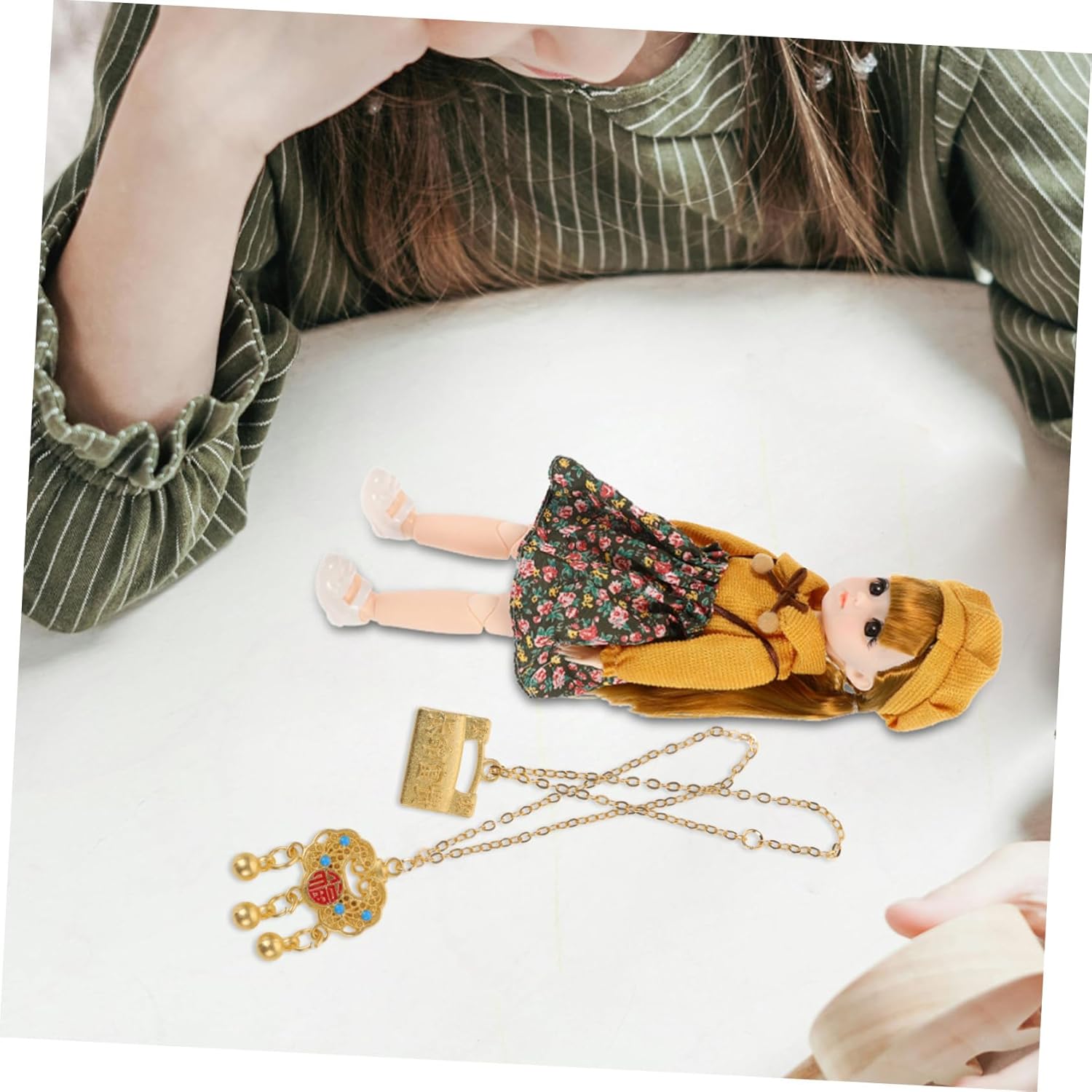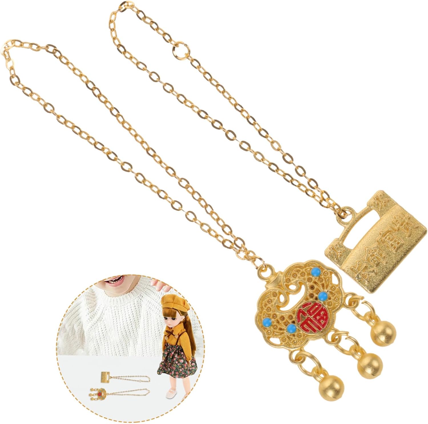 Collane di scena: questa collana per bambole è realizzata in materiali metallici, robusti e durevoli per la decorazione, non facili da rompere o deformare, gioielli per bambine Gioielli per bambine: il design unico e la squisita decorazione dei dettagli rendono queste collane per bambole squisite e creative, gioielli per Giocattoli in miniatura per bambine: puoi regalare queste collane di bambole alle tue bambine, amiche, ecc., puoi decorare diverse bambole, gioielli per Mini accessorio: progettato elegantemente per vestire i giocattoli delle tue bambole e renderli più alla moda, molto decorativi, giocattoli minuscoli Piccoli giocattoli per bambine: le nostre collane per bambole chic e uniche sono progettate con cura per le tue bambole per renderle più alla moda, collana per