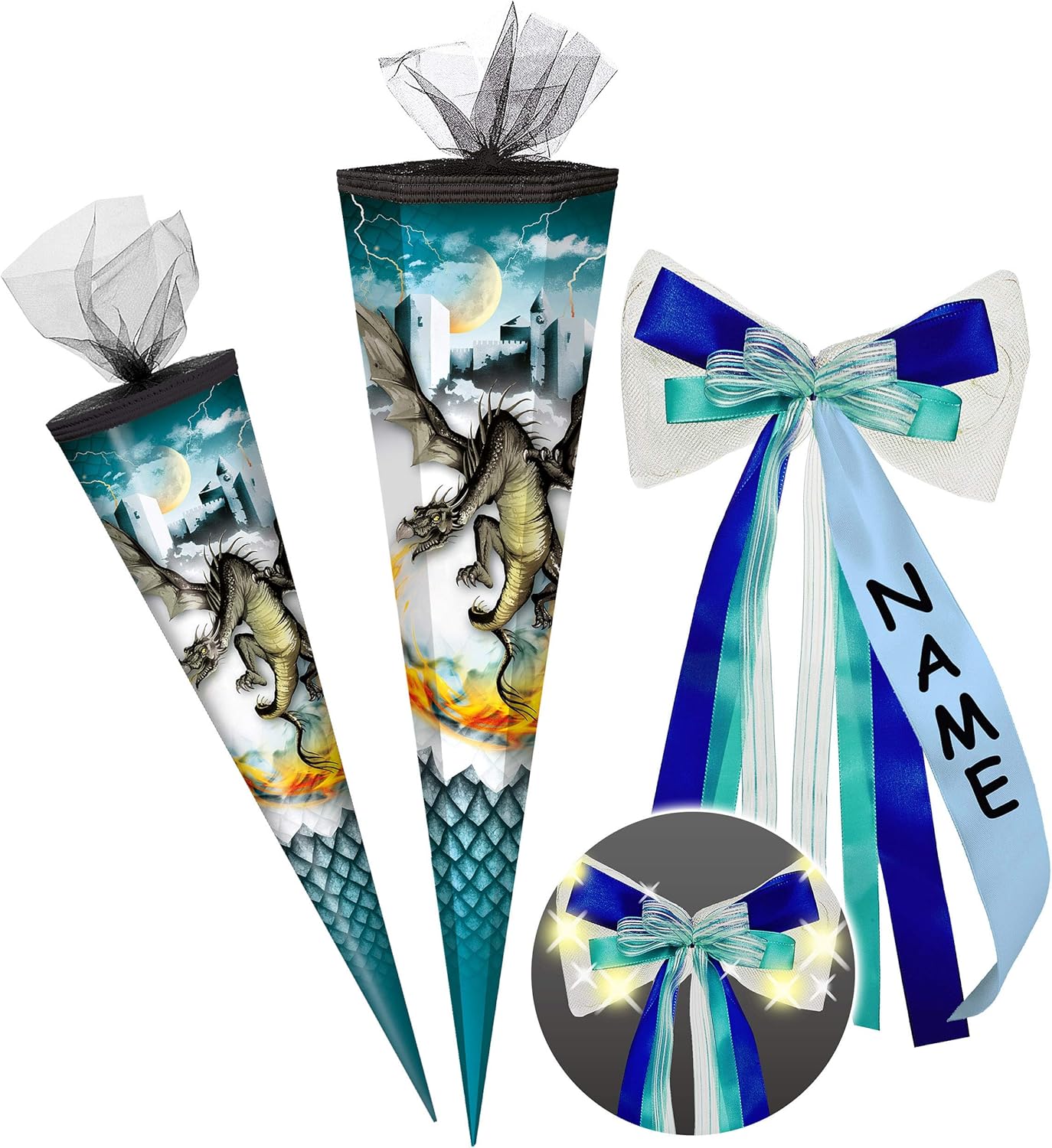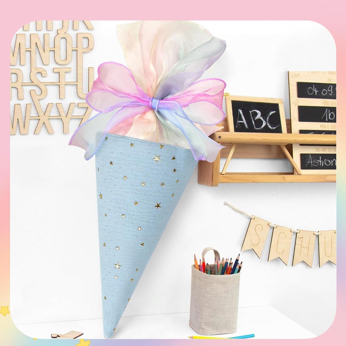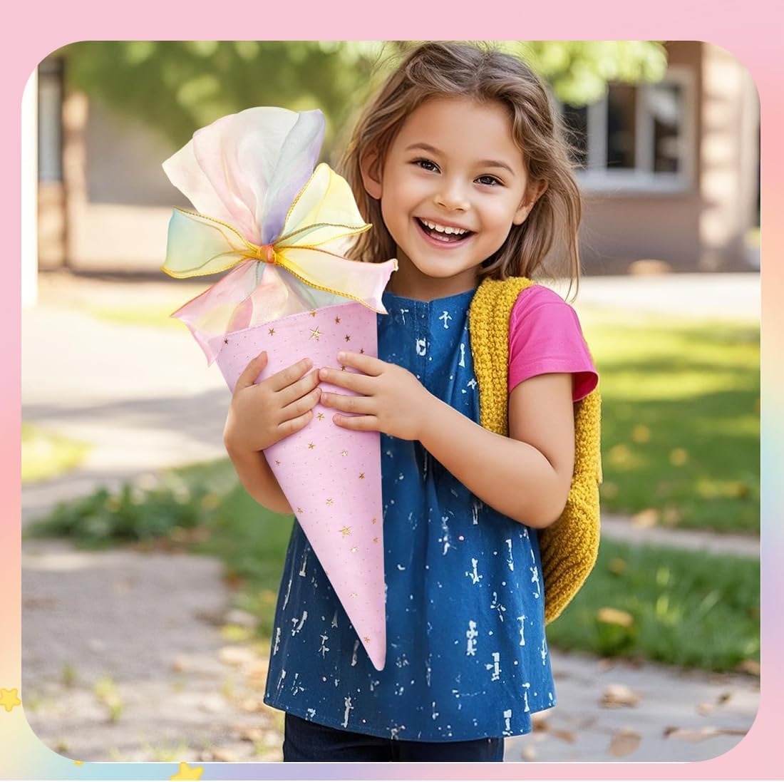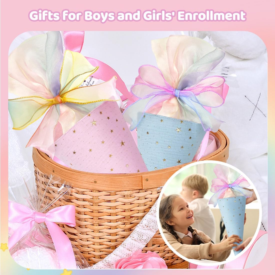Coni di caramelle per la scuola dei ragazzi e delle ragazze: 2 coni di caramelle con fiocchi (blu e rosa), piccoli coni di caramelle come coni di caramelle per fratelli, adatti a ragazzi e ragazze, sono regali ideali per i bambini della prima elementare. Dimensioni: 2 piccoli coni di caramelle misurano 49 cm x 18,5 cm, i coni di caramelle sono vuoti e possono essere riempiti con cancelleria, piccoli oggetti o snack, che sono molto adatti come piccoli regali per gli studenti che stanno per iniziare la scuola. Materiali di alta qualità: Questo piccolo cono di caramelle è realizzato in cotone di alta qualità, resistente, non si danneggia facilmente ed è decorato con stelle luminose; è dotato di un fiocco, il regalo perfetto per iniziare un nuovo anno scolastico. Applicazione: Il cono porta caramelle offre ampio spazio per snack e pratici articoli scolastici, come penne, astucci, articoli per bricolage, piccoli blocchi per appunti, ecc. REGALI PER IL RITORNO A SCUOLA PER BAMBINI E BAMBINE: Questi piccoli coni di caramelle didattiche per bambini e bambine sono perfetti come regali per il ritorno a scuola, regali per l'iscrizione, regali per il primo giorno di scuola, regali per la prima elementare, regali per l'iscrizione, ecc.